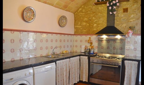 Es una casa de piedra caliza catalana recientemente renovada, donde el respeto y la inclusión del estilo original, ha conservado muy bien la sensación auténtica.