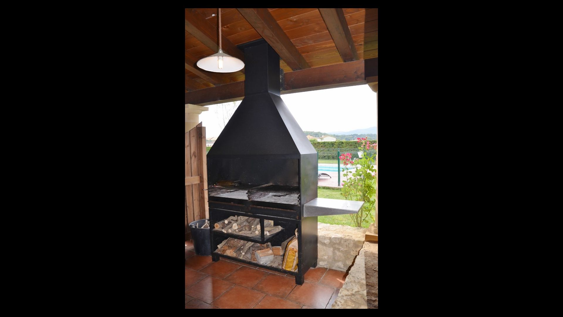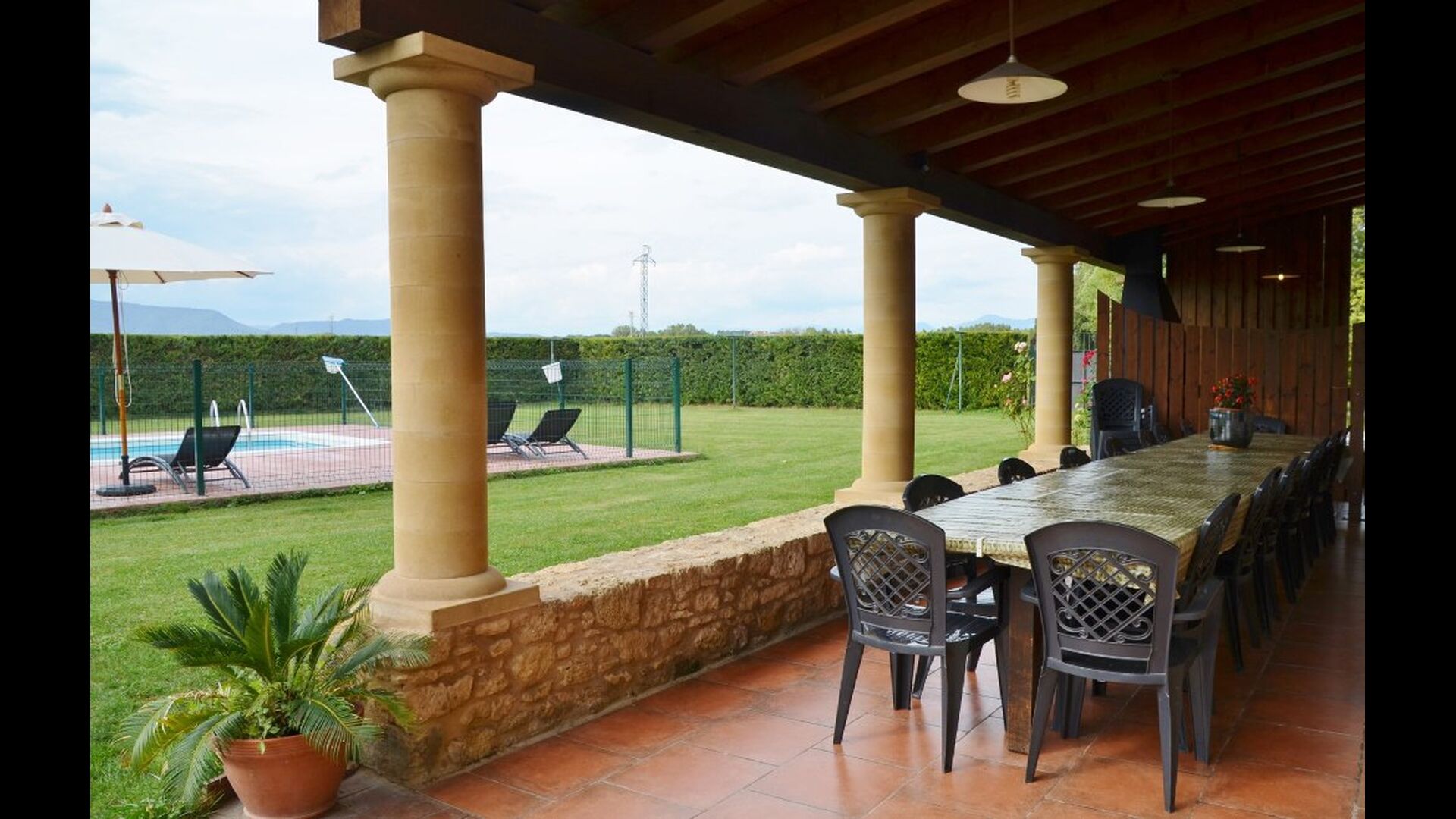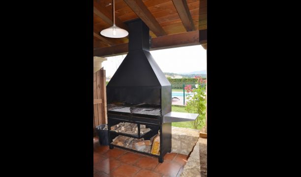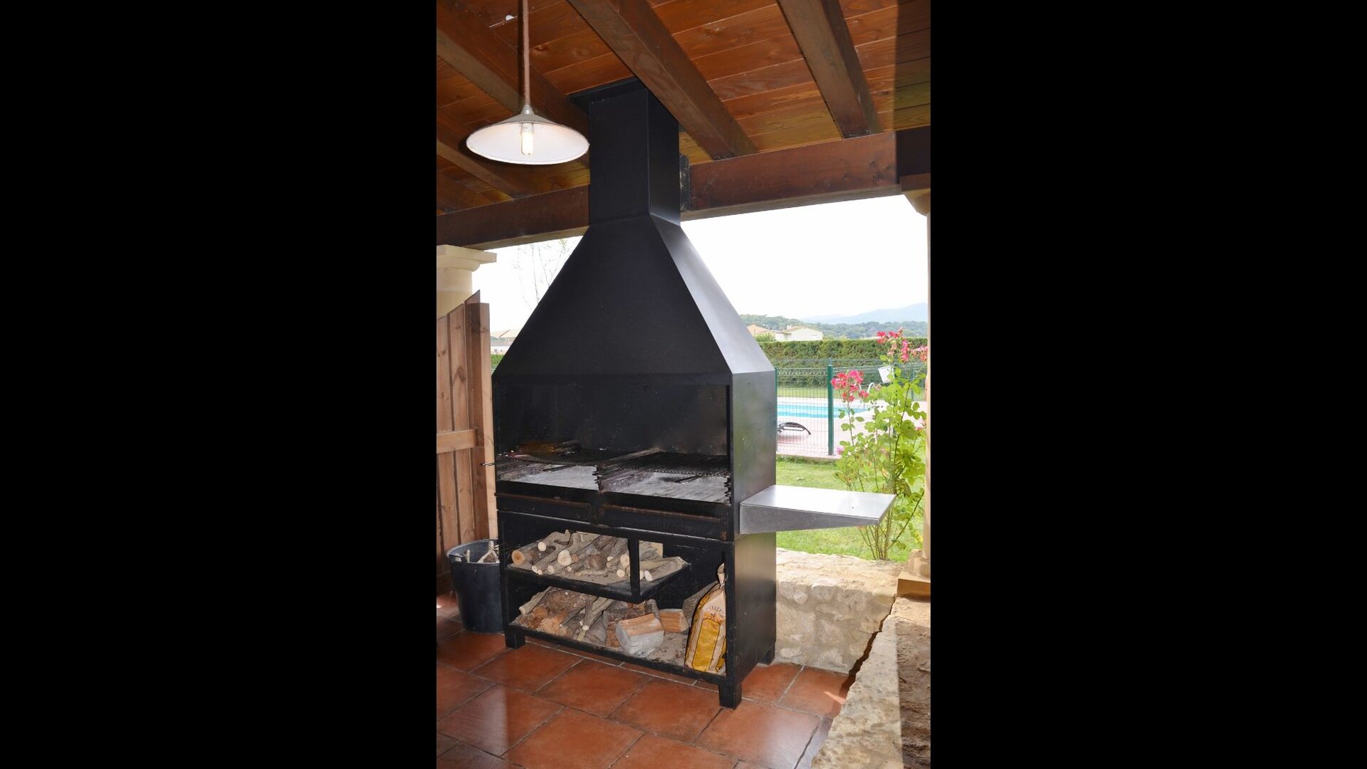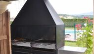 Gran terraza cubierta con barbacoa, conectada directamente con la cocina.