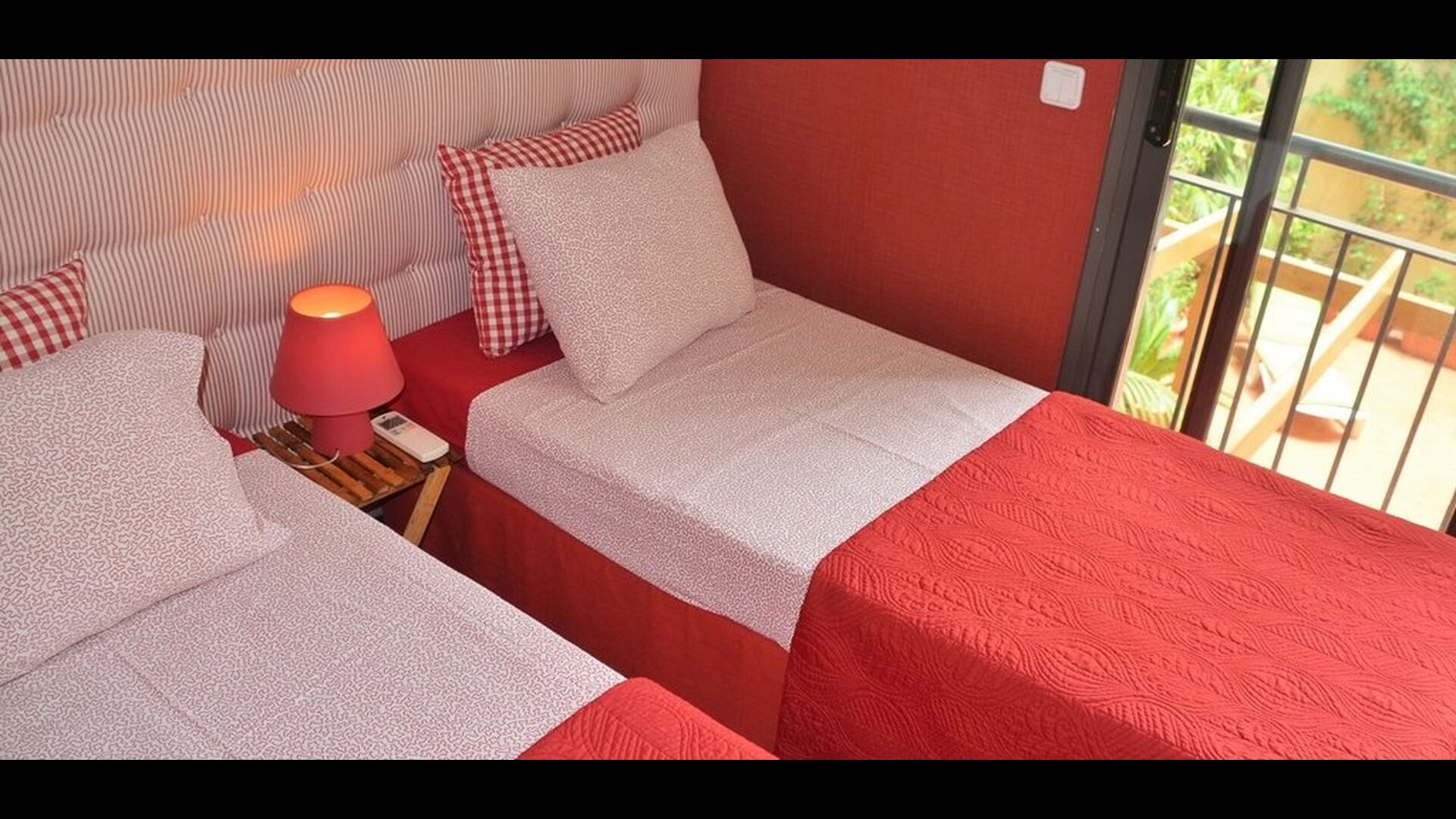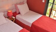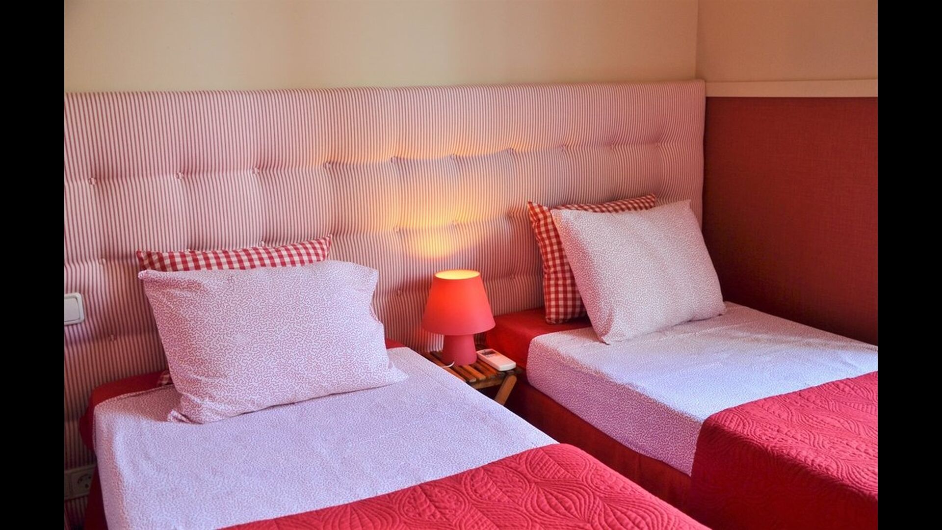 On the first floor, are two very nice bedrooms, each with French balcony with view to the garden. One is with double bed and the other with two single beds, which can be set up as double bed if desired. Each bedroom has its own aircondition, so you can select the temperature you want in each room. There is also a fully equipped bathroom with bathtub/shower.