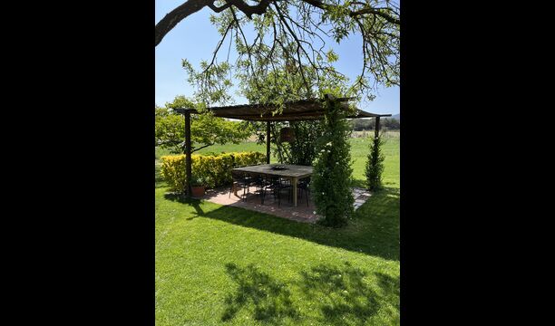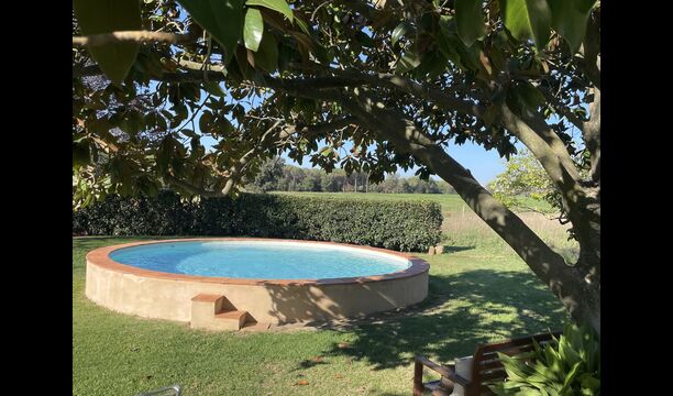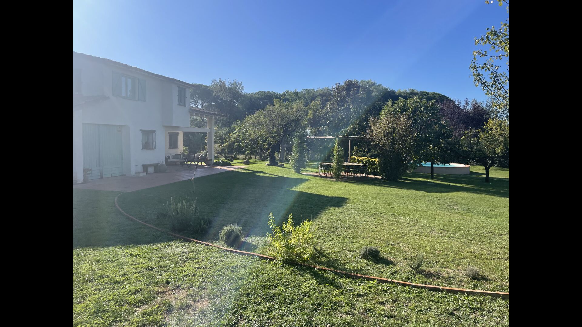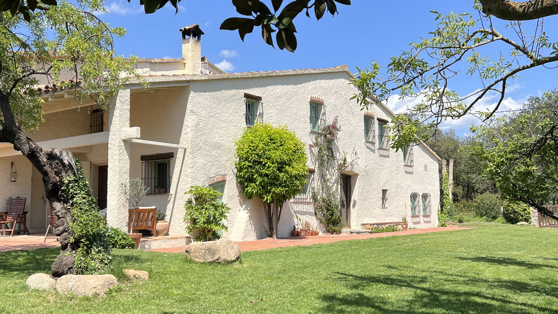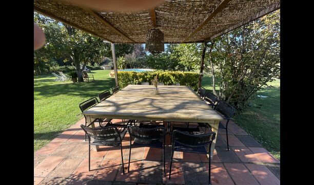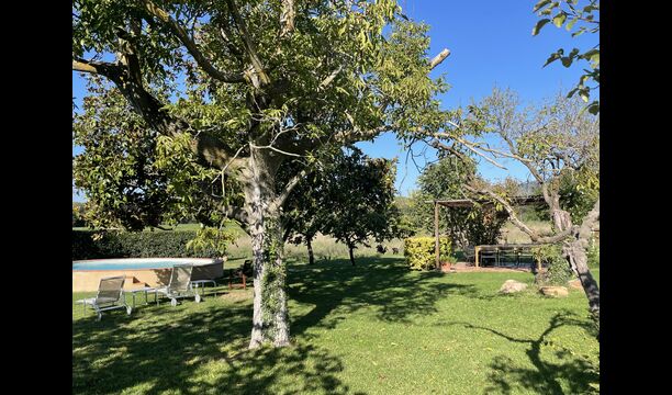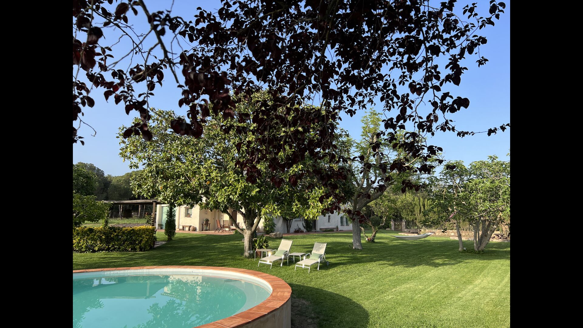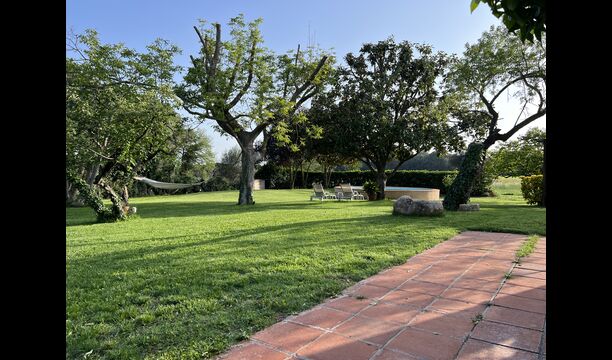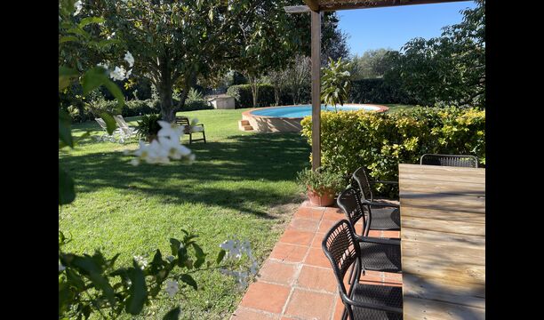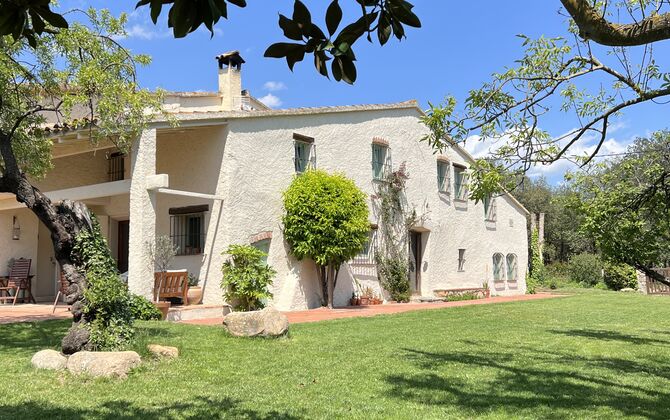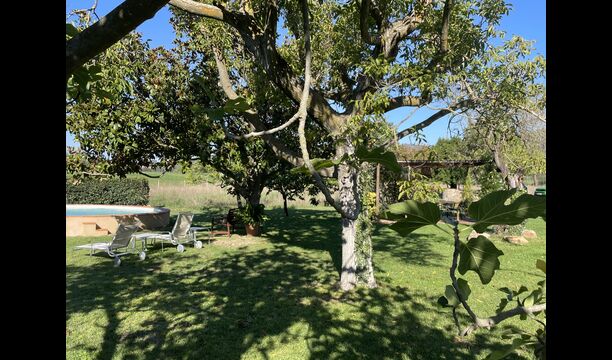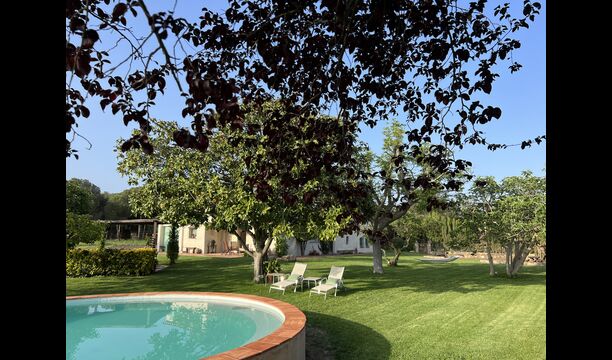 La 'masía' cuidadosamente renovada, que con sus colores pastel evoca recuerdos del sur de Francia, está rodeada por un gran jardín</ > con una hermosa terraza con sombra con una mesa grande; Además, justo enfrente de la puerta de entrada de la casa se encuentra la terraza más acogedora por la mañana con rincones para sofás. El jardín tiene muchos árboles frutales, que proporcionan muchos lugares con sombra, y una hermosa piscina redonda con escalones y un banco, que incluye; puedes sentarte en el agua y disfrutar de la vista.