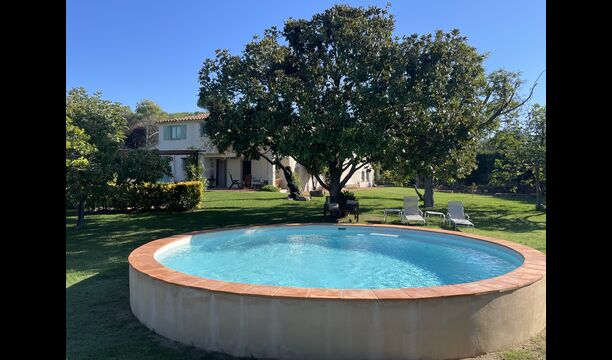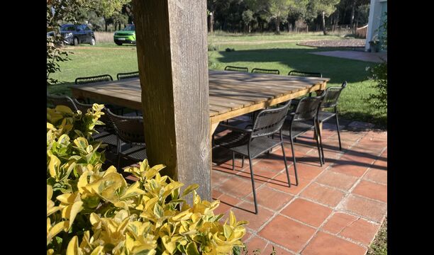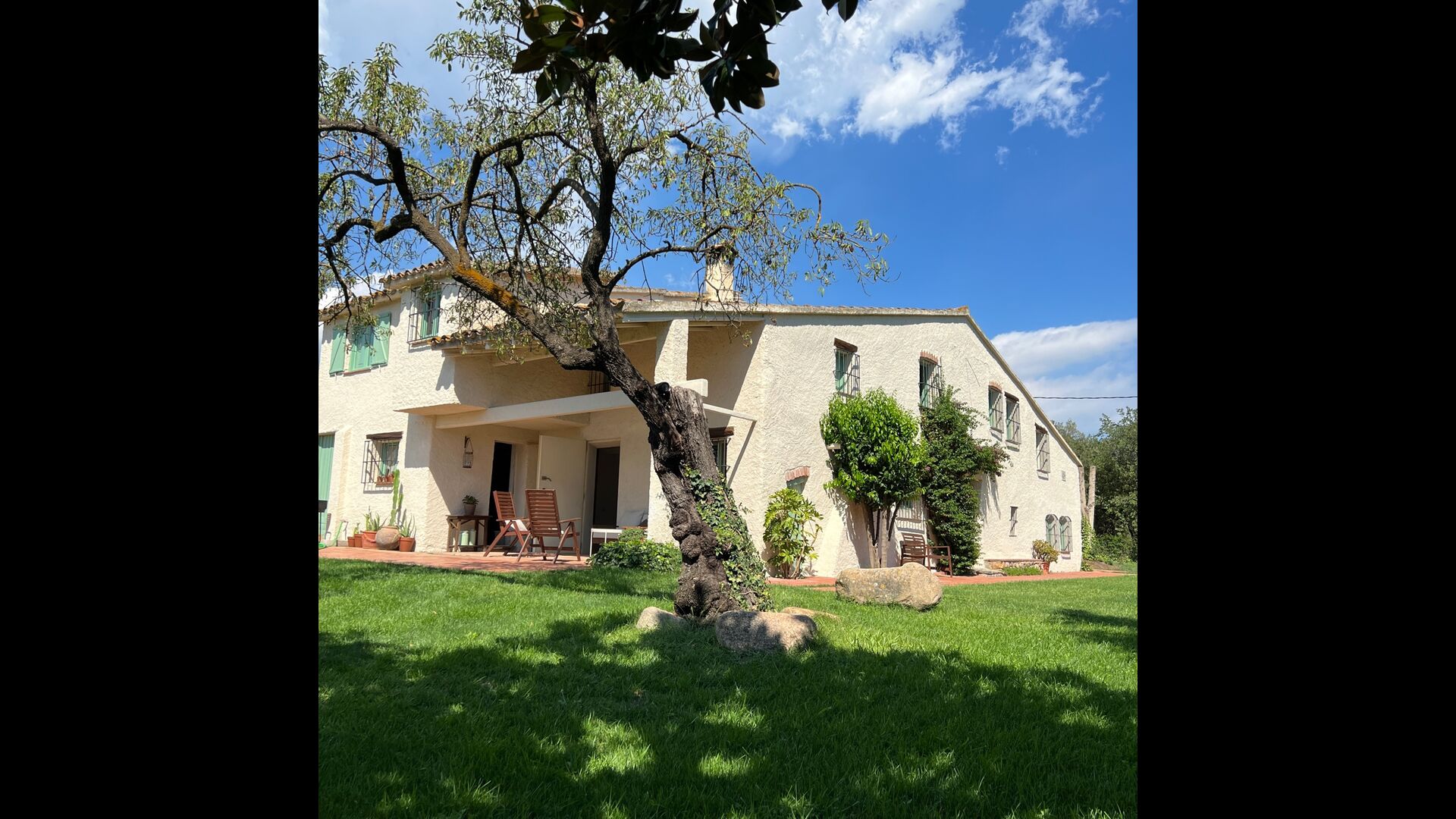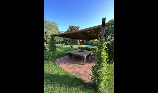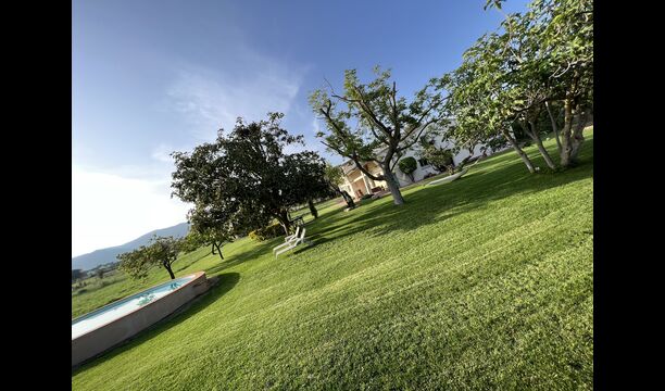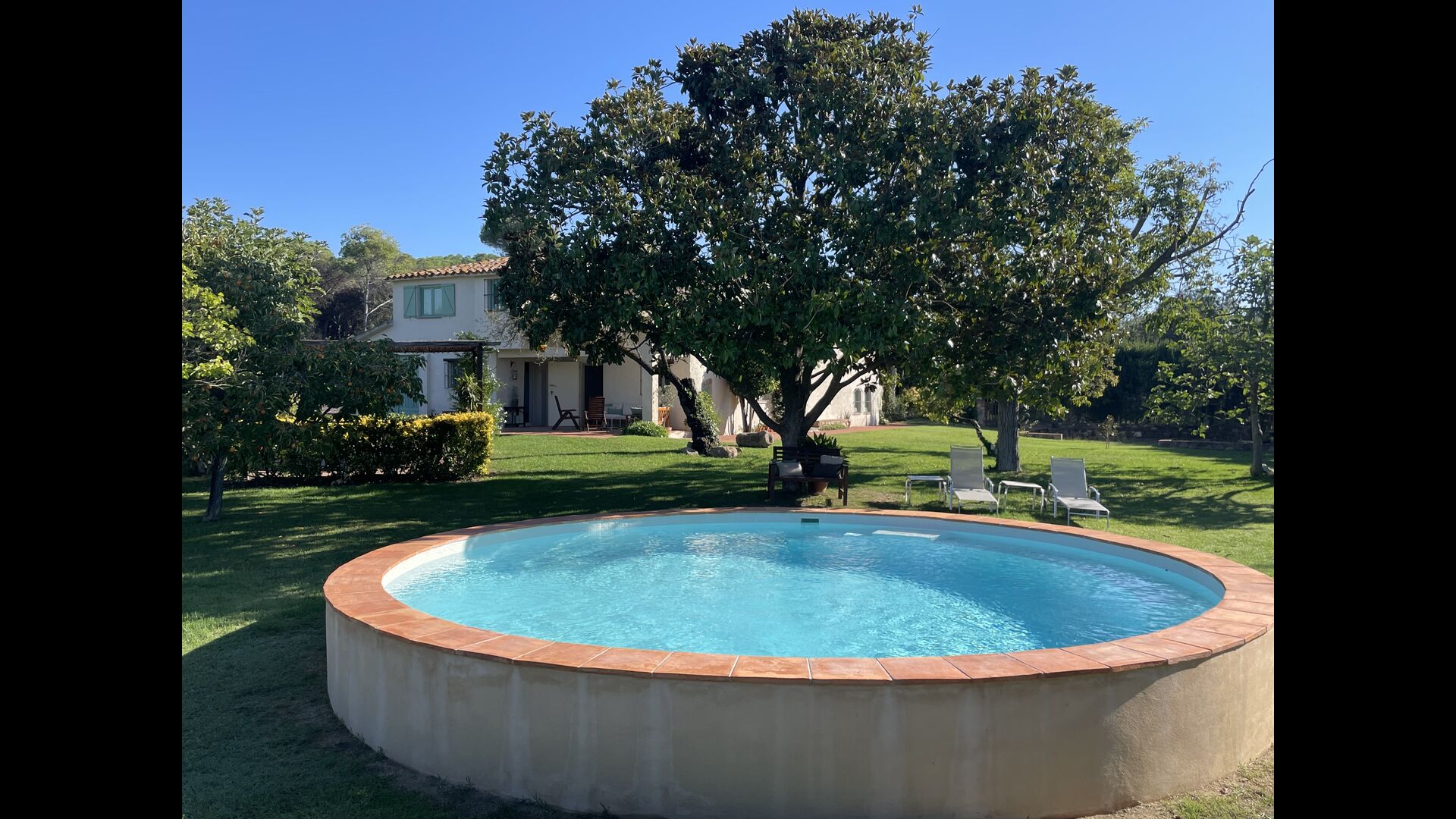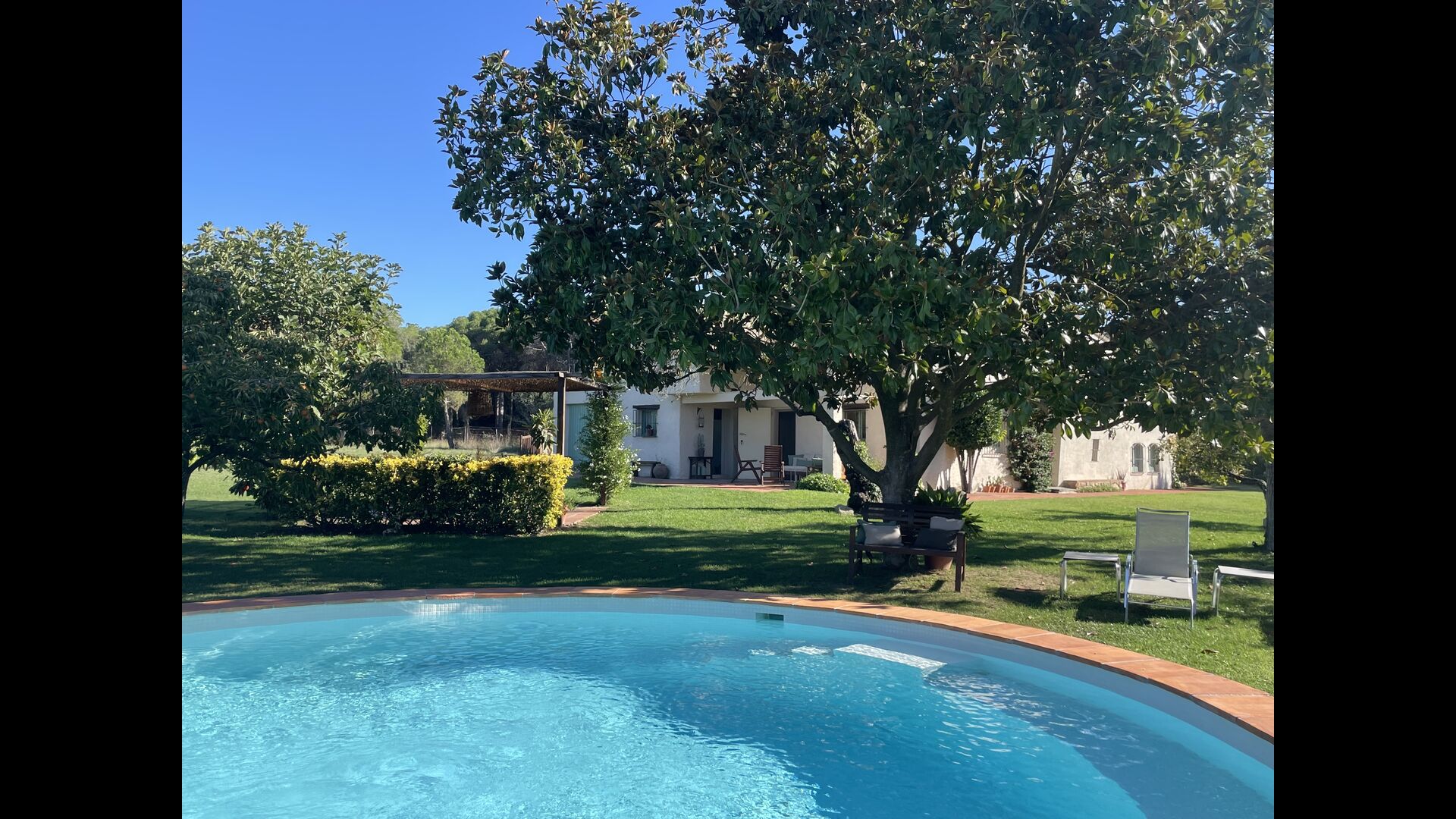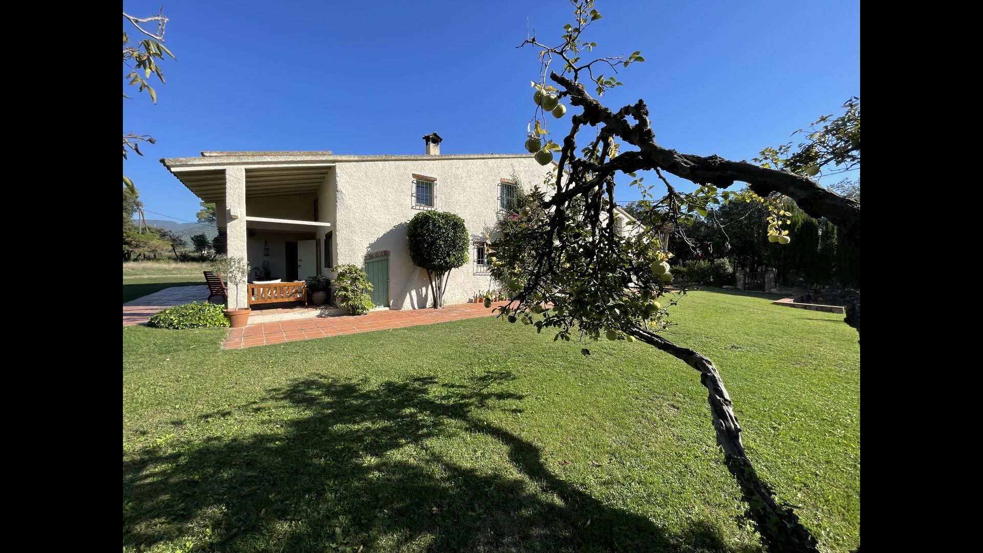 La 'masía' cuidadosamente renovada, que con sus colores pastel evoca recuerdos del sur de Francia, está rodeada por un gran jardín</ > con una hermosa terraza con sombra con una mesa grande; Además, justo enfrente de la puerta de entrada de la casa se encuentra la terraza más acogedora por la mañana con rincones para sofás. El jardín tiene muchos árboles frutales, que proporcionan muchos lugares con sombra, y una hermosa piscina redonda con escalones y un banco, que incluye; puedes sentarte en el agua y disfrutar de la vista.