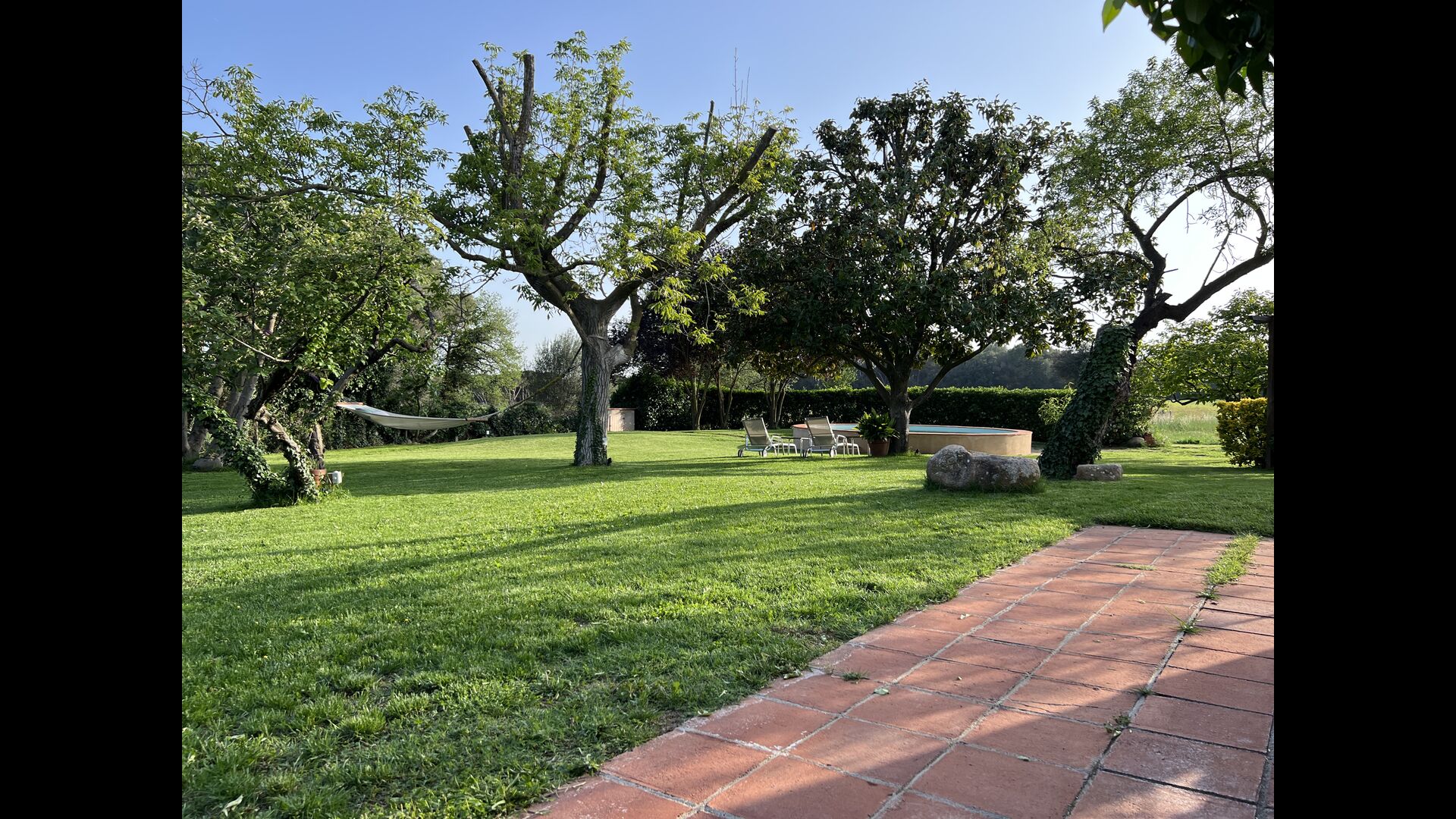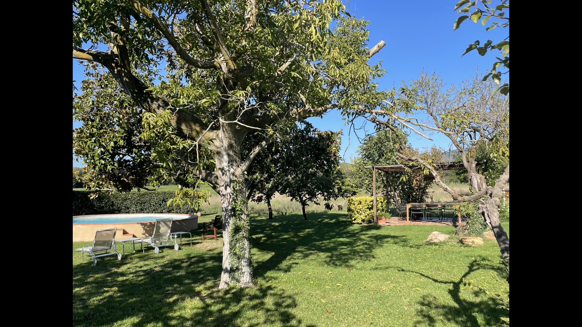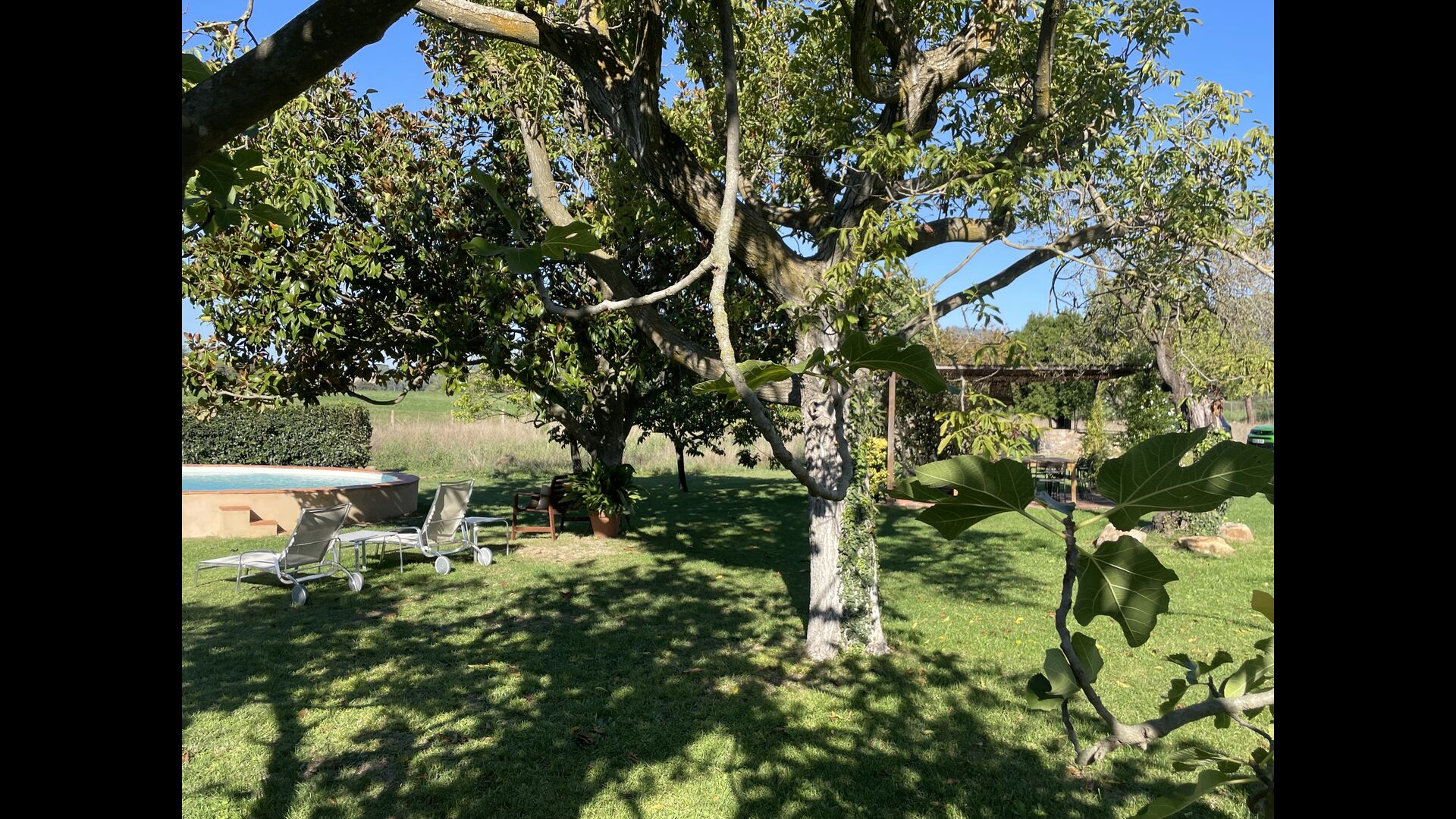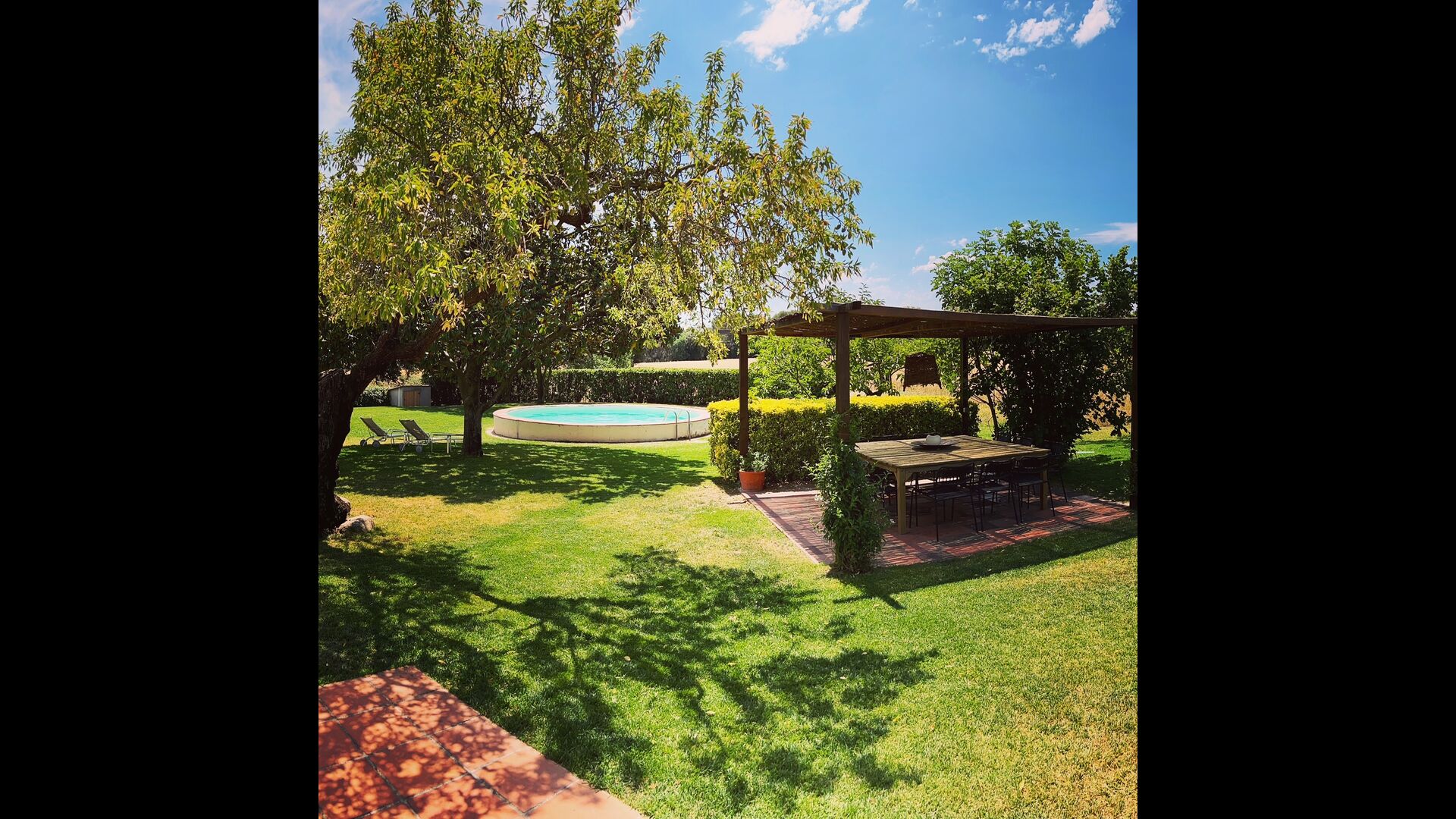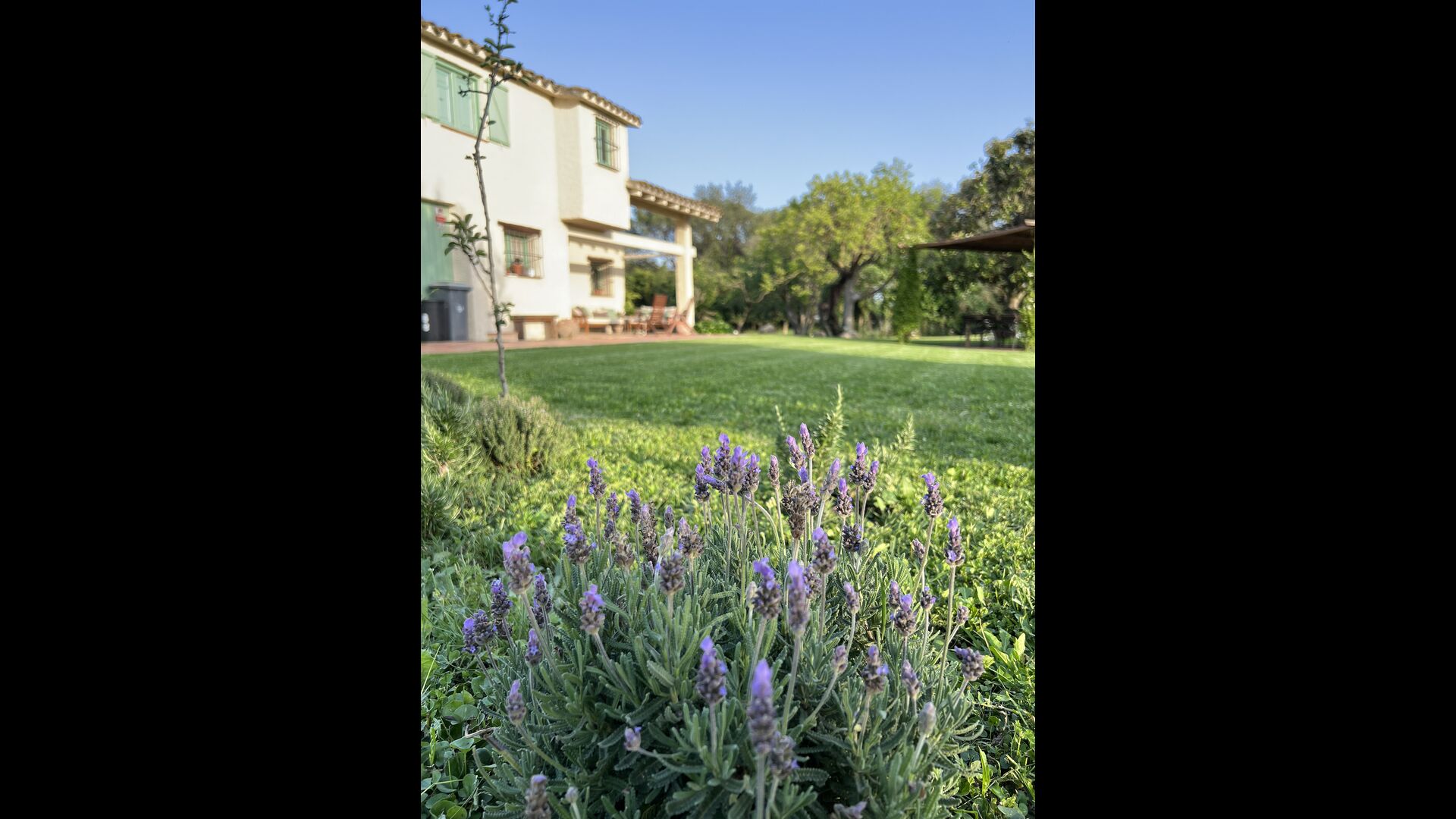 La 'masía' cuidadosamente renovada, que con sus colores pastel evoca recuerdos del sur de Francia, está rodeada por un gran jardín</ > con una hermosa terraza con sombra con una mesa grande; Además, justo enfrente de la puerta de entrada de la casa se encuentra la terraza más acogedora por la mañana con rincones para sofás. El jardín tiene muchos árboles frutales, que proporcionan muchos lugares con sombra, y una hermosa piscina redonda con escalones y un banco, que incluye; puedes sentarte en el agua y disfrutar de la vista.