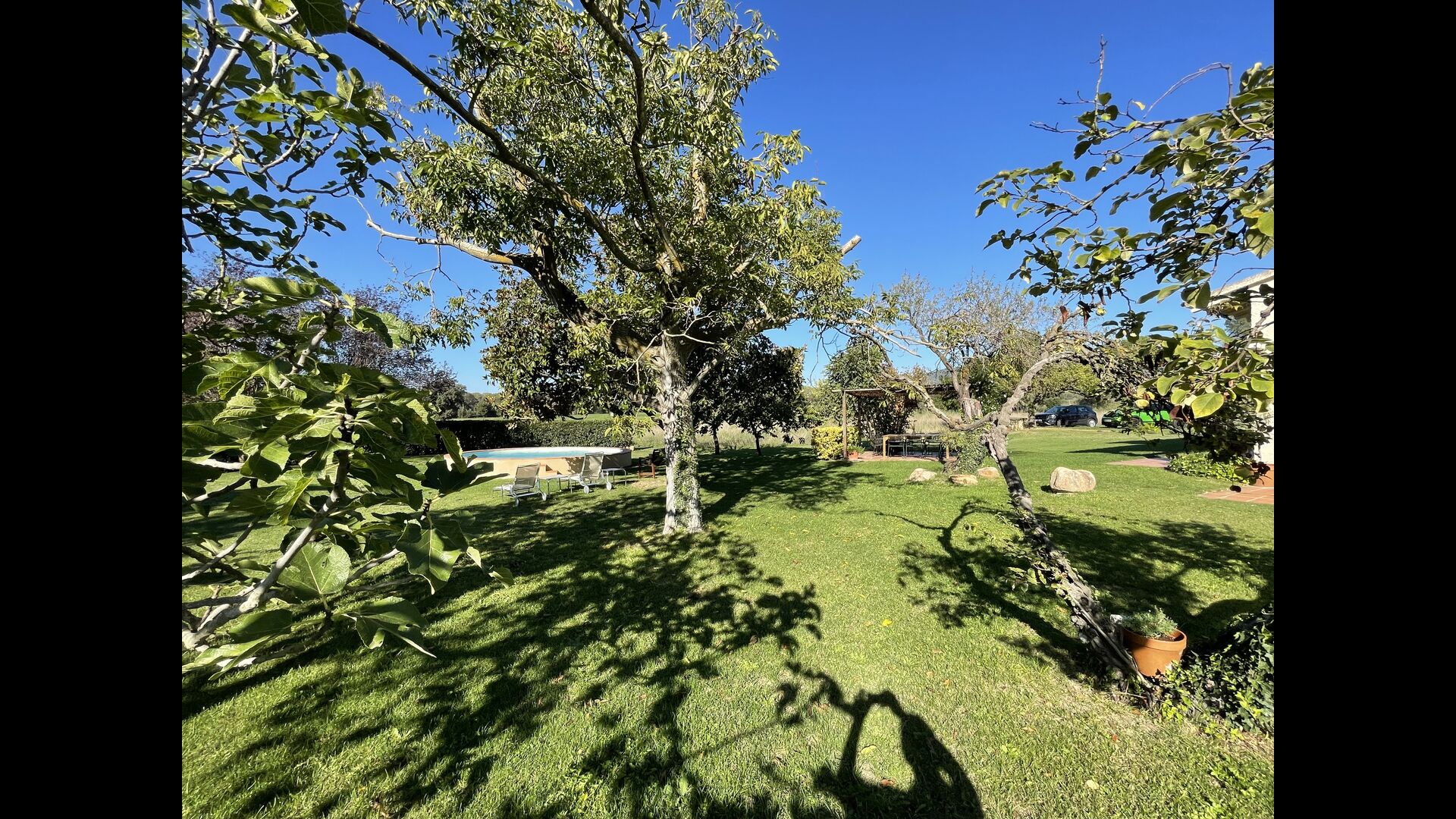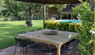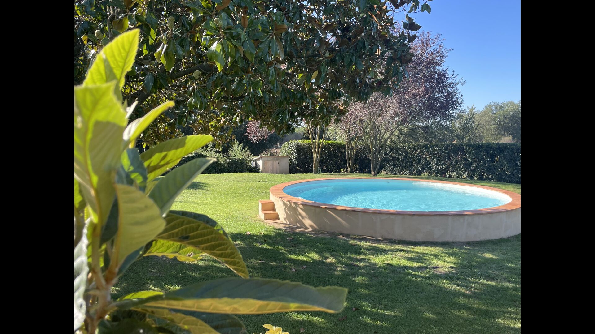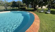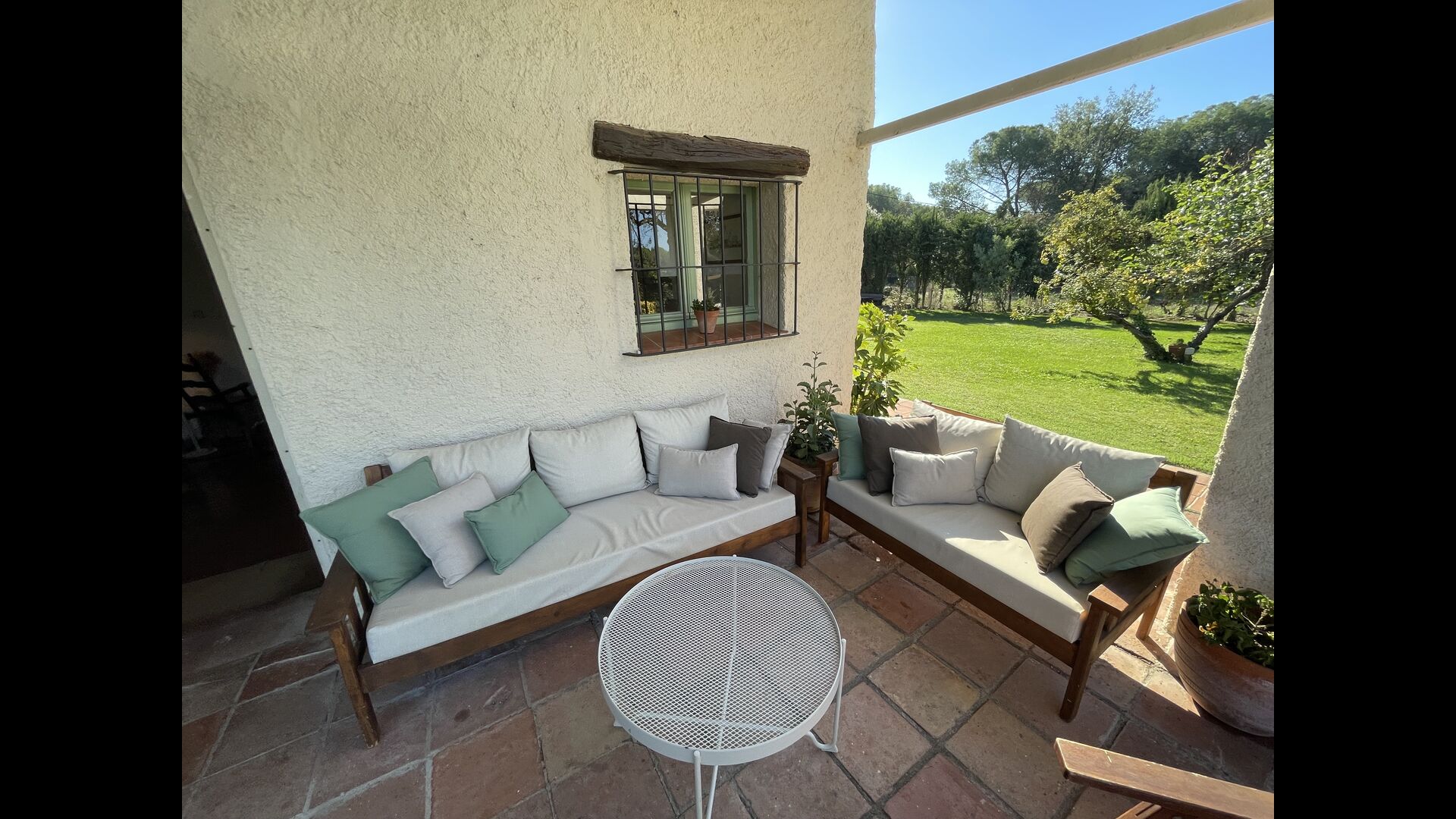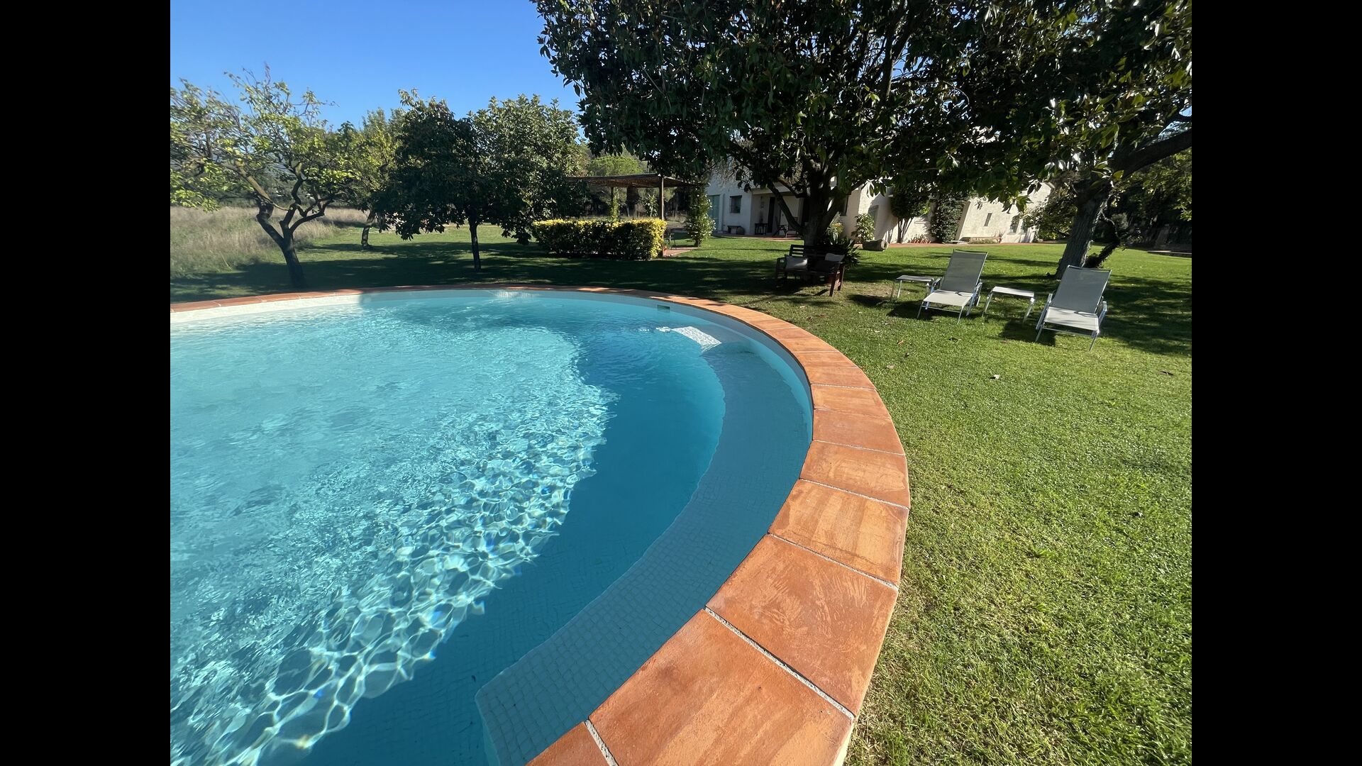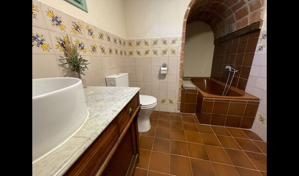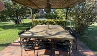 La 'masía' cuidadosamente renovada, que con sus colores pastel evoca recuerdos del sur de Francia, está rodeada por un gran jardín</ > con una hermosa terraza con sombra con una mesa grande; Además, justo enfrente de la puerta de entrada de la casa se encuentra la terraza más acogedora por la mañana con rincones para sofás. El jardín tiene muchos árboles frutales, que proporcionan muchos lugares con sombra, y una hermosa piscina redonda con escalones y un banco, que incluye; puedes sentarte en el agua y disfrutar de la vista.