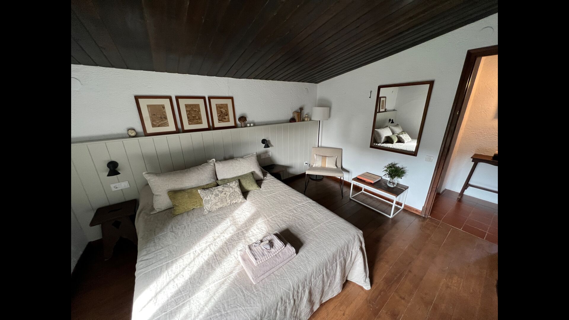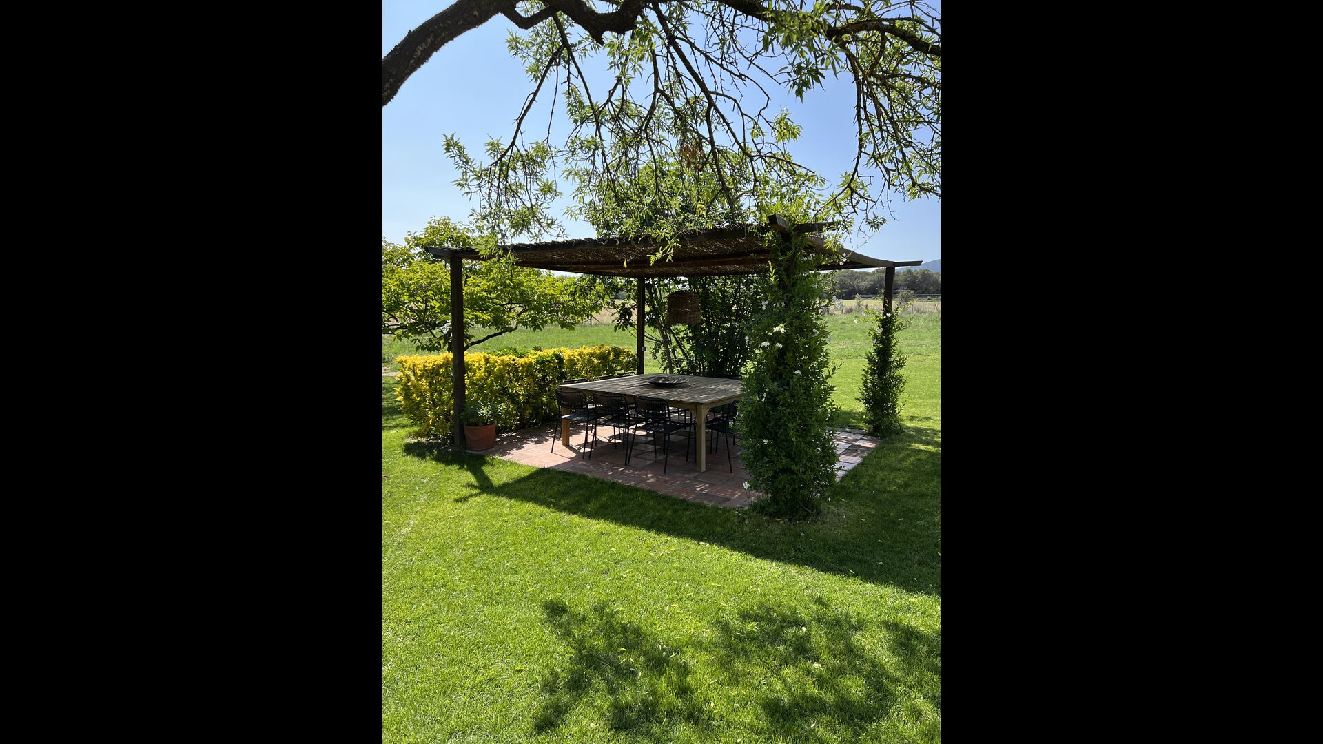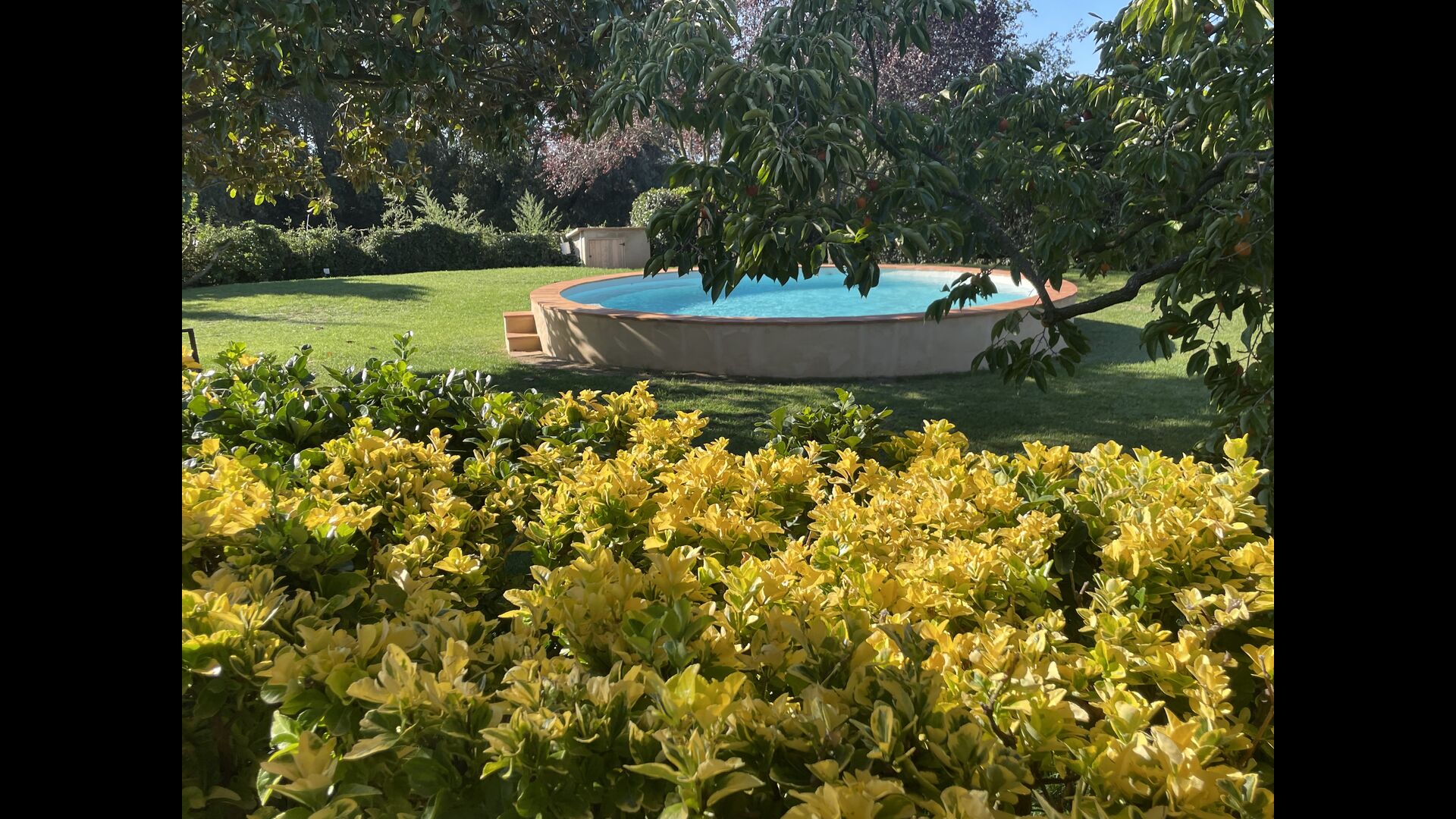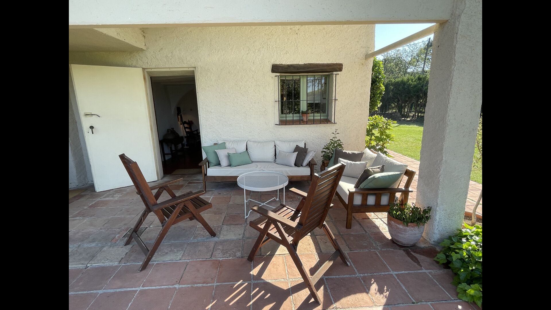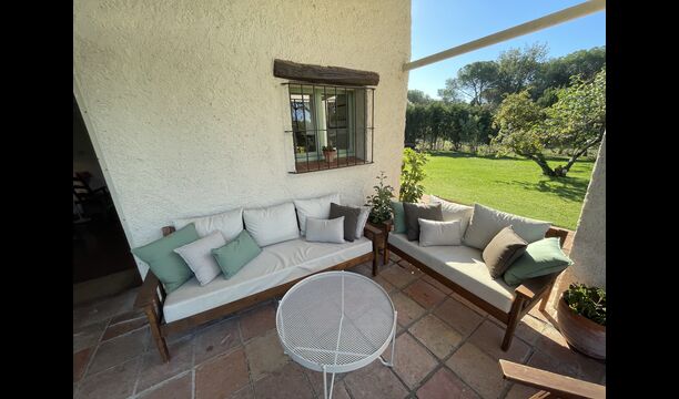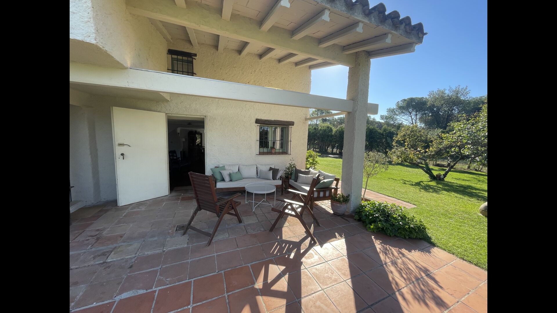 La 'masía' cuidadosamente renovada, que con sus colores pastel evoca recuerdos del sur de Francia, está rodeada por un gran jardín</ > con una hermosa terraza con sombra con una mesa grande; Además, justo enfrente de la puerta de entrada de la casa se encuentra la terraza más acogedora por la mañana con rincones para sofás. El jardín tiene muchos árboles frutales, que proporcionan muchos lugares con sombra, y una hermosa piscina redonda con escalones y un banco, que incluye; puedes sentarte en el agua y disfrutar de la vista.