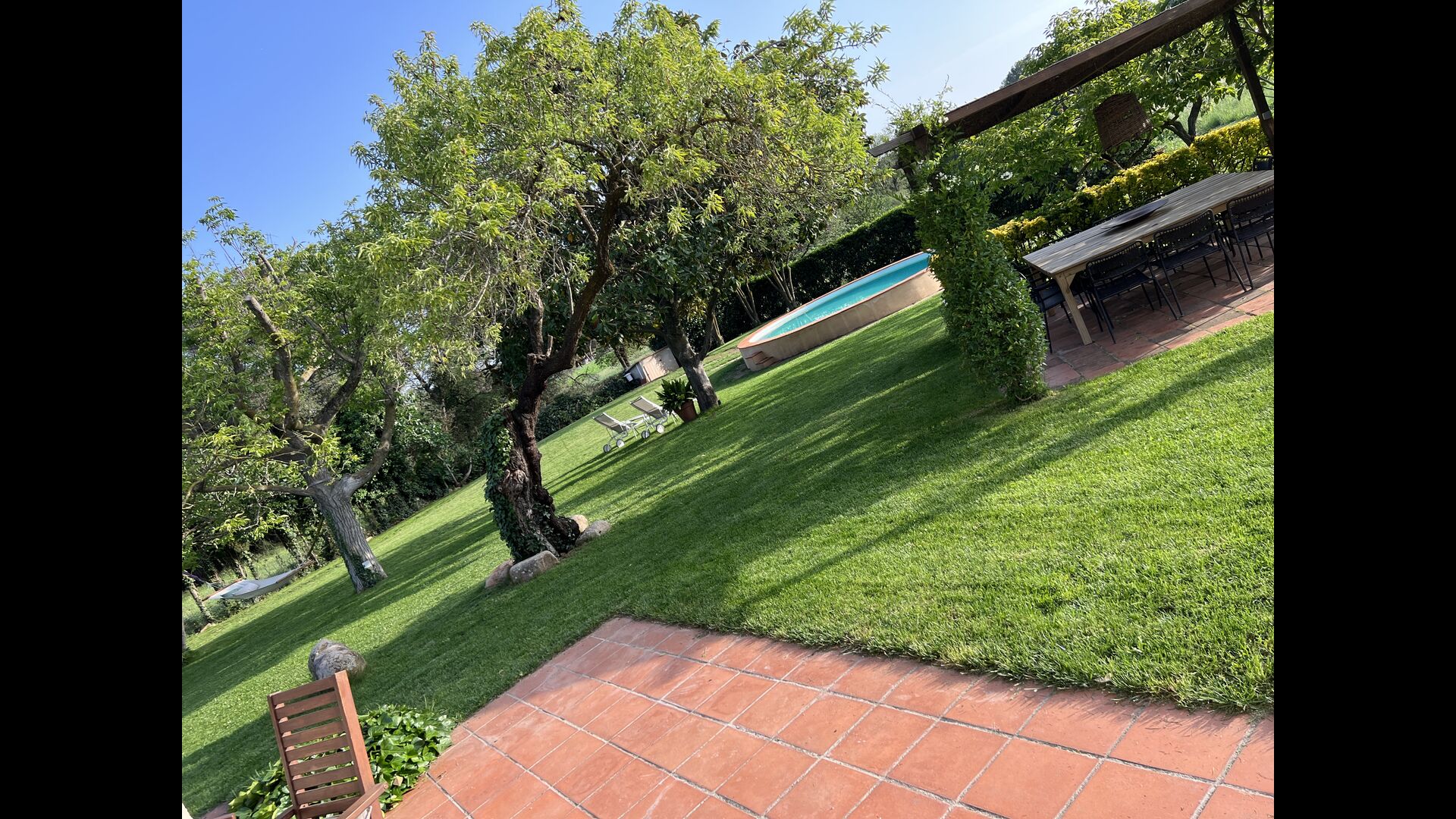 El jardín de la casa es perfecto, tanto para adultos como para niños. Estás rodeado del paisaje idílico catalán, lejos del ruido de la ciudad y de støj – ¡pero todavía a sólo 45 minutos en coche de Barcelona! Desde la terraza de la casa y