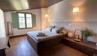 A la izquierda encontrará un pequeño pasillo con un WC al frente. Si continúas recto desde la planta baja, accedes al salón; Aquí hay un gran y bonito sofá, con mesa de centro y chimenea, un diván con almohadas y una TV. La iluminación es, al igual que el salón comedor, fantástica con varios ventanales por los que se asoma el sol. Continuando hacia la izquierda desde la sala de estar, ingresa a una oficina/minibiblioteca hermosa y bien mantenida, con un escritorio antiguo y una grande hermosa y estantería con encanto - ndash; ¡Es casi como viajar en el tiempo cuando entras en la habitación!
