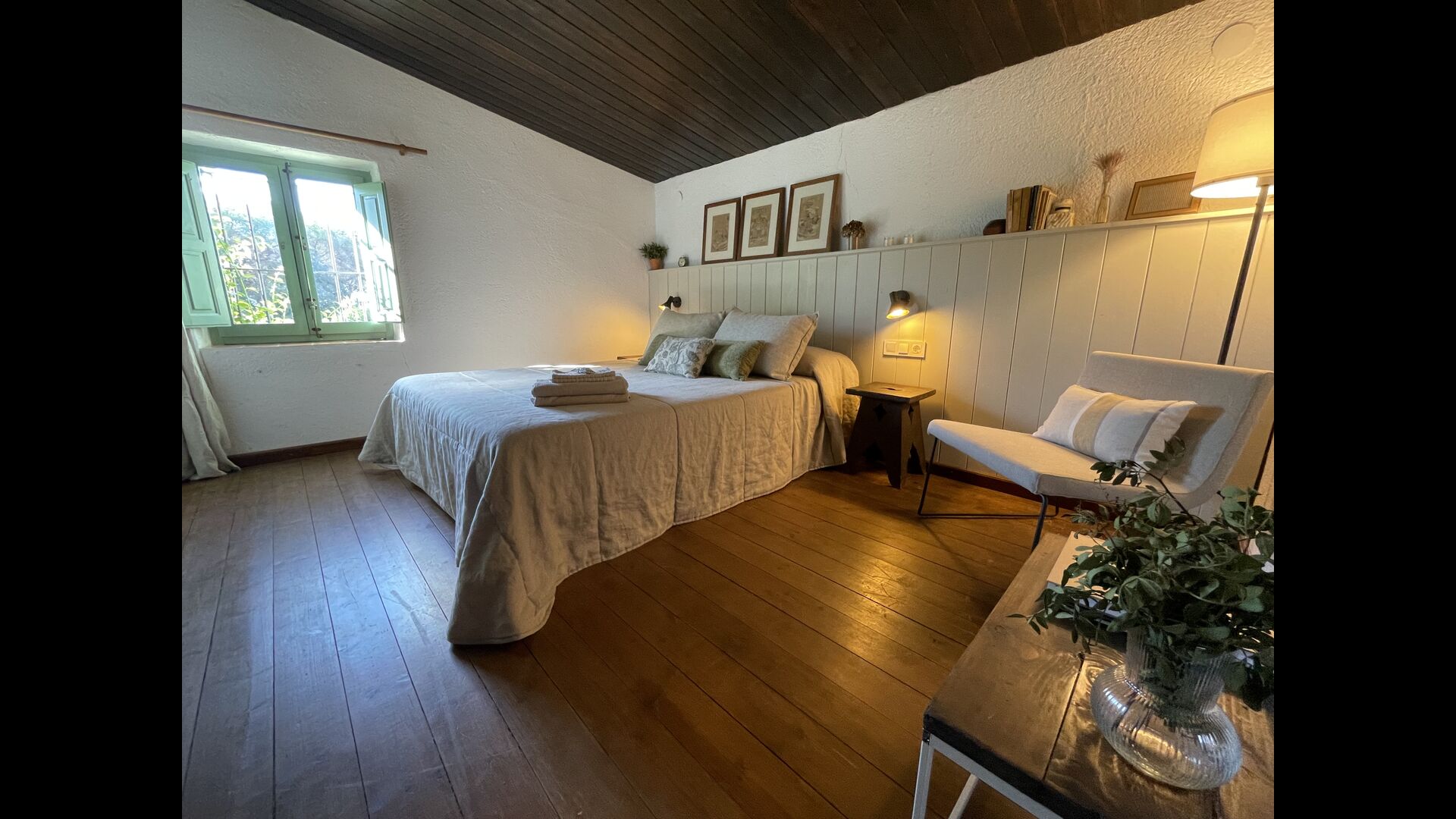 Mas de Gil es esencialmente una mezcla perfecta de la Cataluña moderna y la encantadora y rústica; cada uno se ejemplifica en la arquitectura y el diseño interior de la casa. La casa en sí está construida en estilo clásico catalán; Las hermosas piedras de color arena confieren al exterior de la casa una atmósfera cálida y acogedora, y las piedras rústicas del suelo de color marrón rojizo no hacen más que realzar esta impresión. . Los muebles están hechos de fibra de calidad y encajan armoniosamente con el resto del estilo general de la casa. Al mismo tiempo, la casa está equipada con todas las instalaciones que se esperan de una casa de vacaciones moderna.