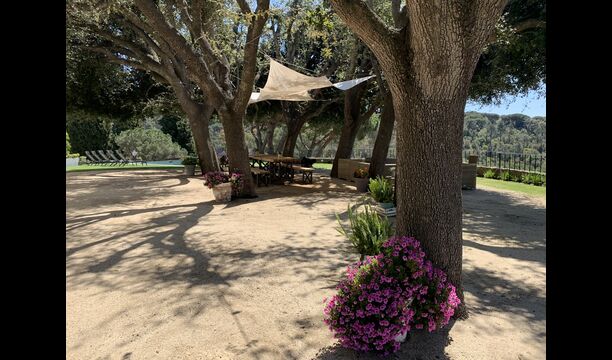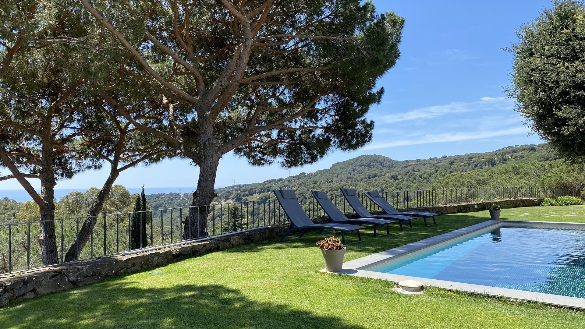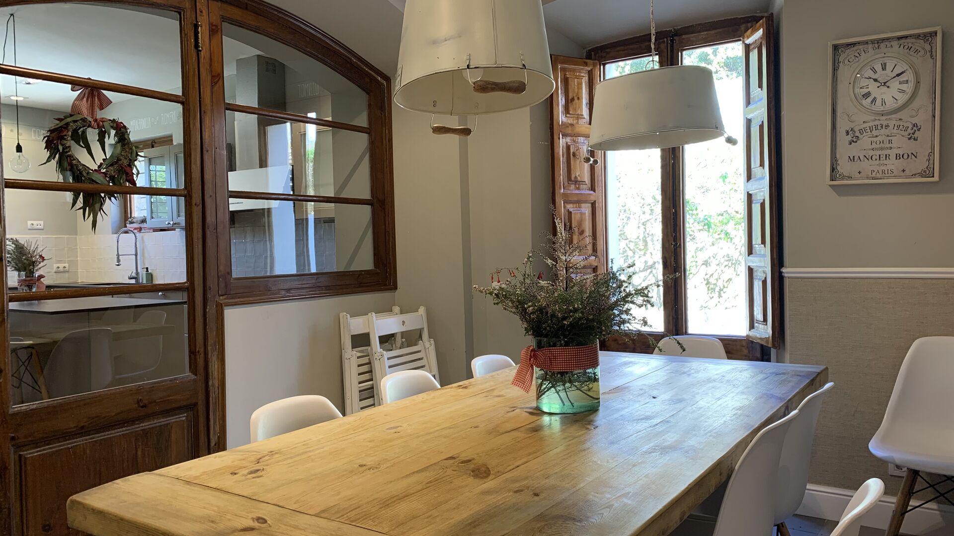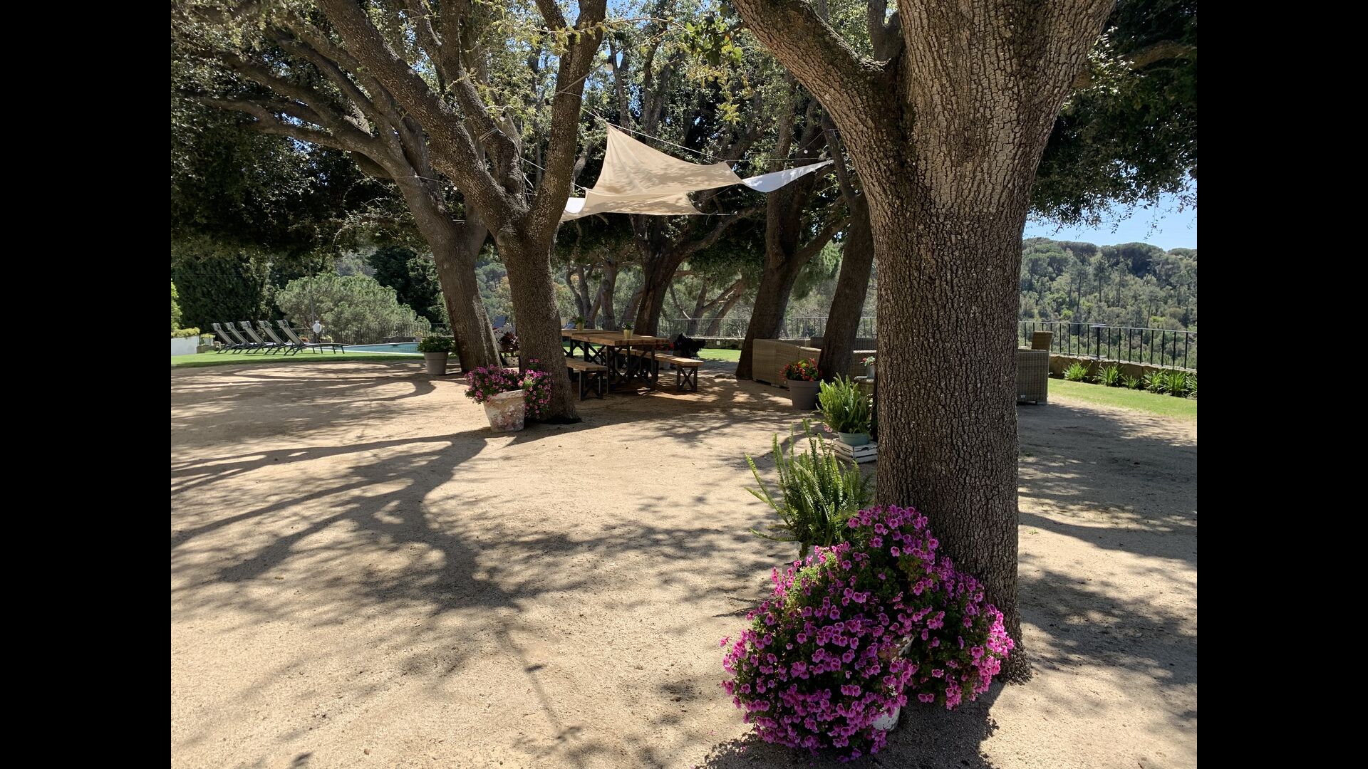 Junto al área de la piscina se encuentra un área sombreada con una gran mesa de comedor, que también comparte la increíble vista desde la piscina. El lugar perfecto para disfrutar de comidas al aire libre o de una copa con todo el grupo de vacaciones, en el cálido clima catalán.