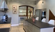 Al ingresar a la casa por la entrada principal, se encontrará en un gran salón. La planta baja es donde encontrarás todos los espacios comunes, incluyendo un cómodo salón, una gran sala de juegos con billar, un increíble comedor y una gran cocina totalmente equipada que también tiene acceso directo a la zona de barbacoa al aire libre. También hay un baño compartido en la planta baja, cerca de la piscina.