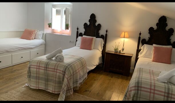 En principio, se pueden alojar hasta 22 huéspedes en la casa, pero tenga en cuenta que la casa tiene una planta superior con 1 cama doble, 2 camas individuales y 1 baño con techos bastante bajos debido a la autenticidad de la casa; por lo tanto, este piso solo es recomendable para personas no muy altas (o niños).