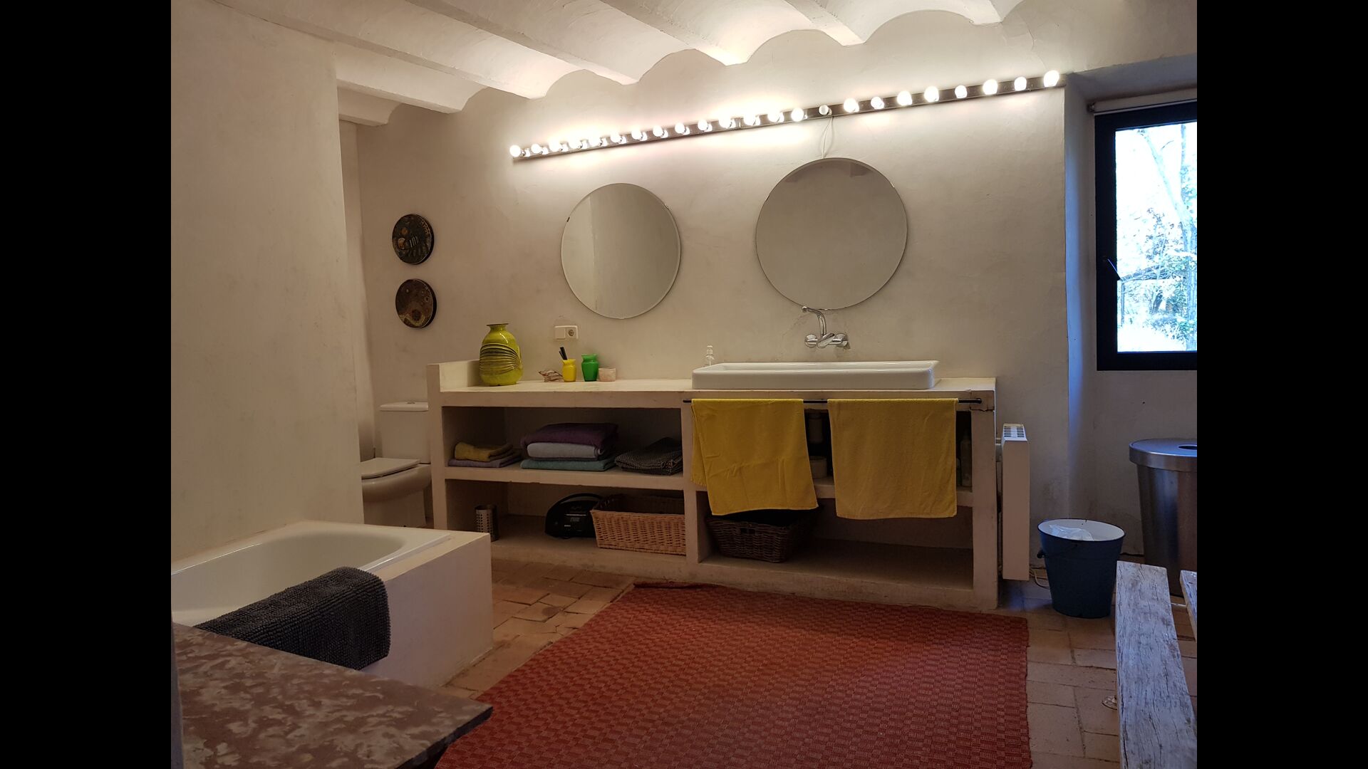 Encontrará una casa de vacaciones con calidades ligeramente diferentes por dentro y por fuera, pero con el ambiente más fantástico de una casa de campo francesa en el interior y la naturaleza catalana con las vistas más hermosas en el exterior. Mondadura; a pesar de la sensación de un lugar ligeramente desierto, en realidad hay menos de 3 km. a pie (un poco más en coche), hasta el pueblo cercano, que tiene un centro de pueblo antiguo más pequeño pero muy acogedor, con algunos restaurantes, supermercados (incluida una panadería), bancos con cajero automático, peluqueria, tratamientoscorporales y masajes, iglesia, pescadería. También hay un campo deportivo para, entre otras cosas, fútbol, si quieres algo de diversión física.