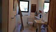Las escaleras continúan hasta 1. Hall's hall, donde una vez más te asombran los muchos objetos fantásticos que decoran la casa. Hay dos baños enormes, uno con bañera, y además acceso a los dormitorios adicionales de la casa. Primero, una habitación grande con dos camas dobles más pequeñas y un sofá cama, y por ejemplo, muchos niños pueden dormir juntos, o como una habitación familiar. Los siguientes dos dormitorios son un poco más pequeños y tienen acceso desde el pasillo, pero también están interconectados por una puerta corrediza, por lo que pueden funcionar como habitaciones familiares. El último dormitorio es ligeramente alargado y tiene una cama doble en un extremo y un escritorio en el otro.