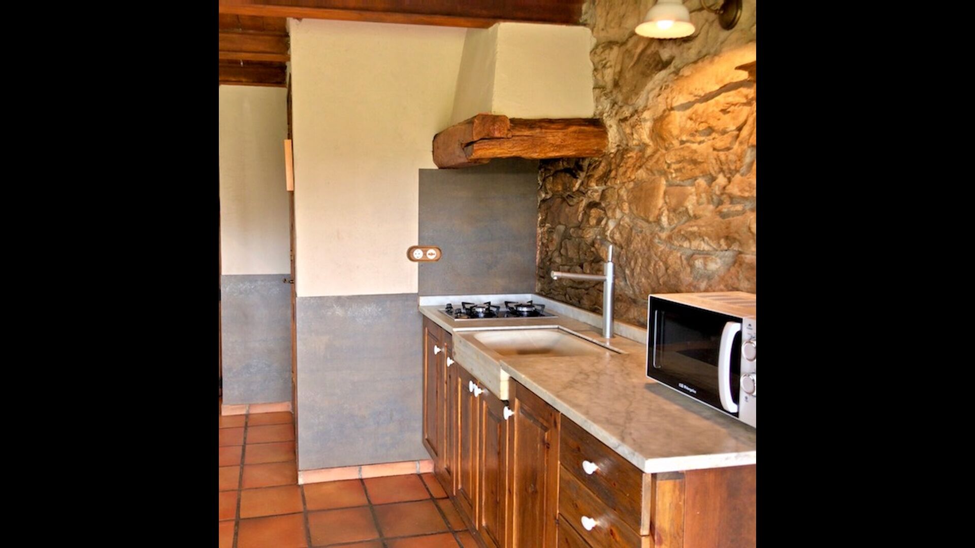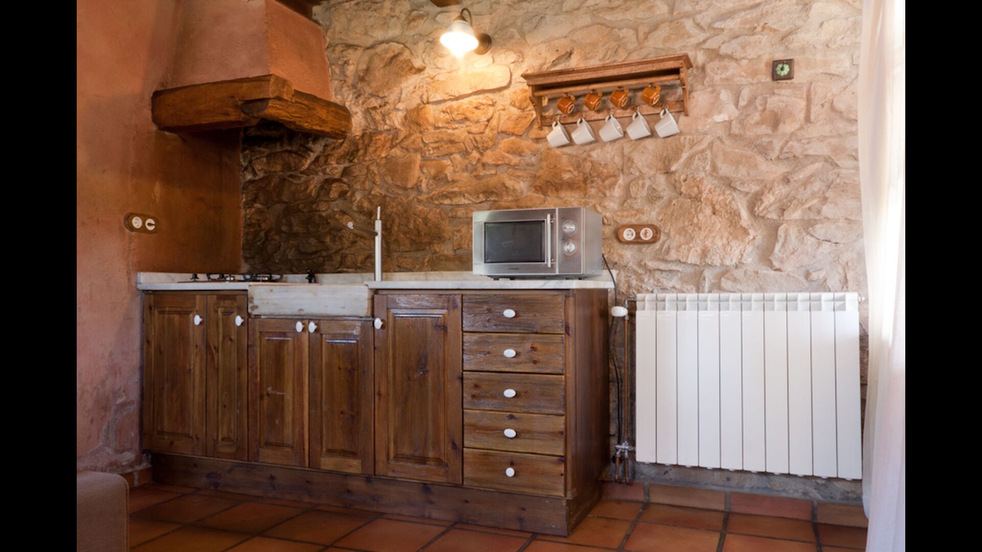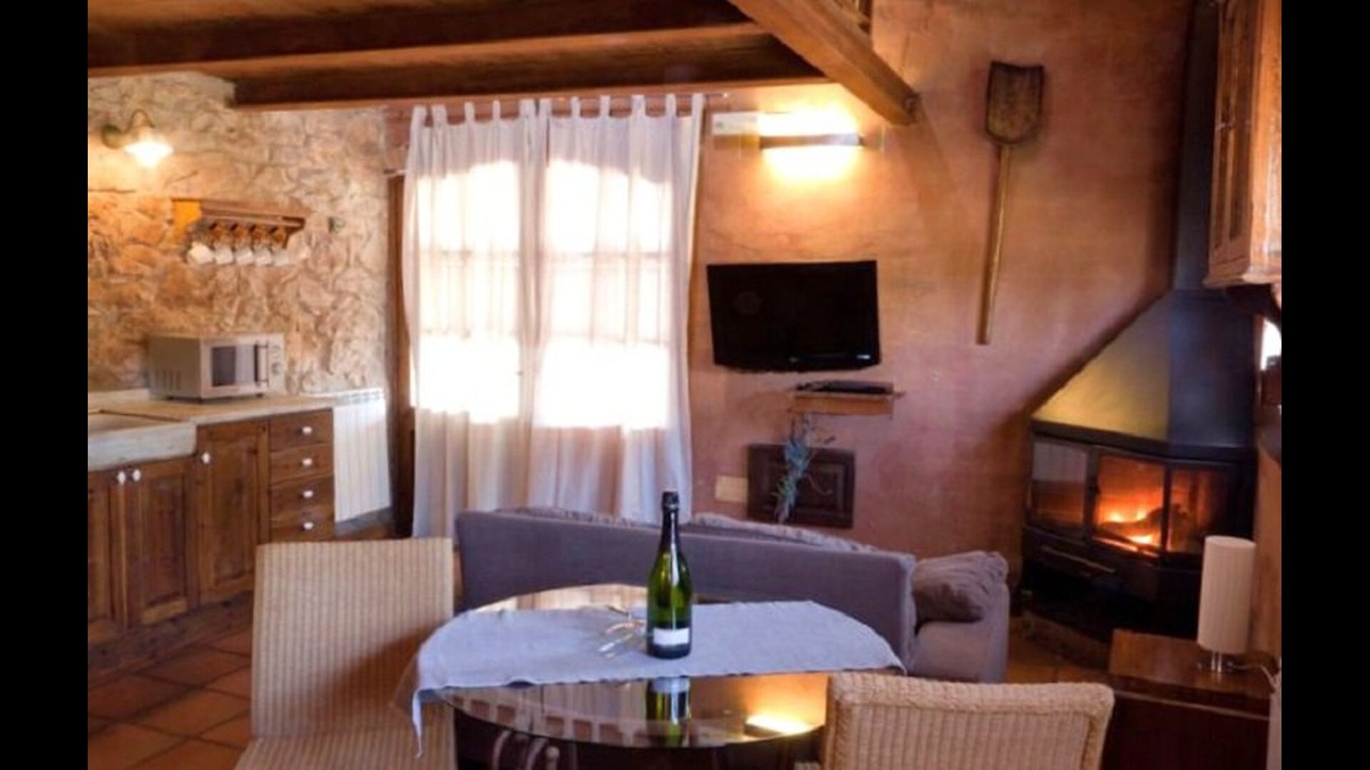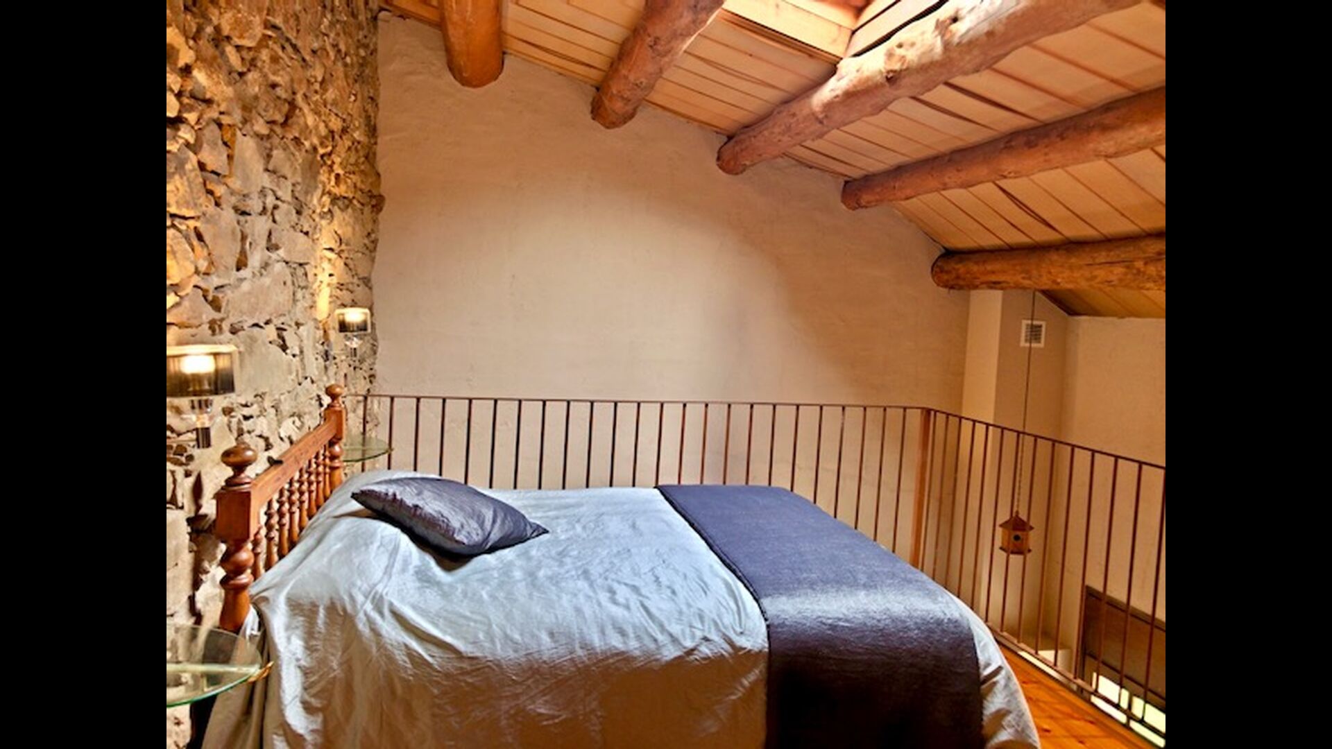 En este apartamento, Piso Nio, hay espacio para dos personas. Hay una cama doble, que es una base perfecta para una pareja. También hay un baño moderno. El piso tiene un tamaño de 60 m2. En general está organizado muy auténtico y tradicional en un estilo catalán. También está claro que existe un gran respeto por los materiales y estructuras originales. Esto proporcionará, junto con la fantástica ubicación de la casa, un ambiente bueno y romántico. Además, hay una bonita cocina donde los propietarios han hecho mucho para mantenerla tradicional catalana. En esto hay una nevera, una estufa, un lavavajillas y una lavadora. En la misma habitación hay un sofá suave, donde puedes ver televisión y hay una chimenea. Arriba hay un amplio dormitorio con una bonita cama doble. En el exterior hay una terraza al lado del apartamento de al lado. Aquí puedes leer un libro o simplemente relajarte a la sombra si hace demasiado calor. Sin embargo, lo mejor del apartamento son casi las impresionantes vistas que se pueden disfrutar. Hay una calma y paz muy especial que es única en las casas en las montañas.