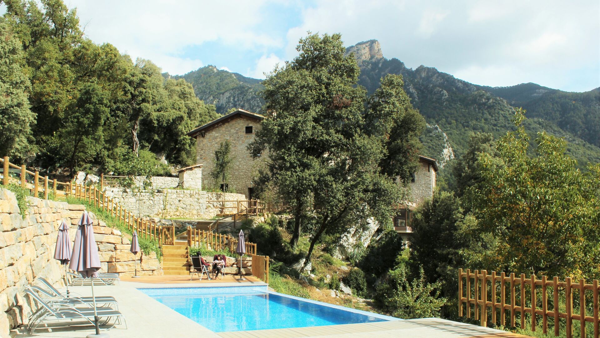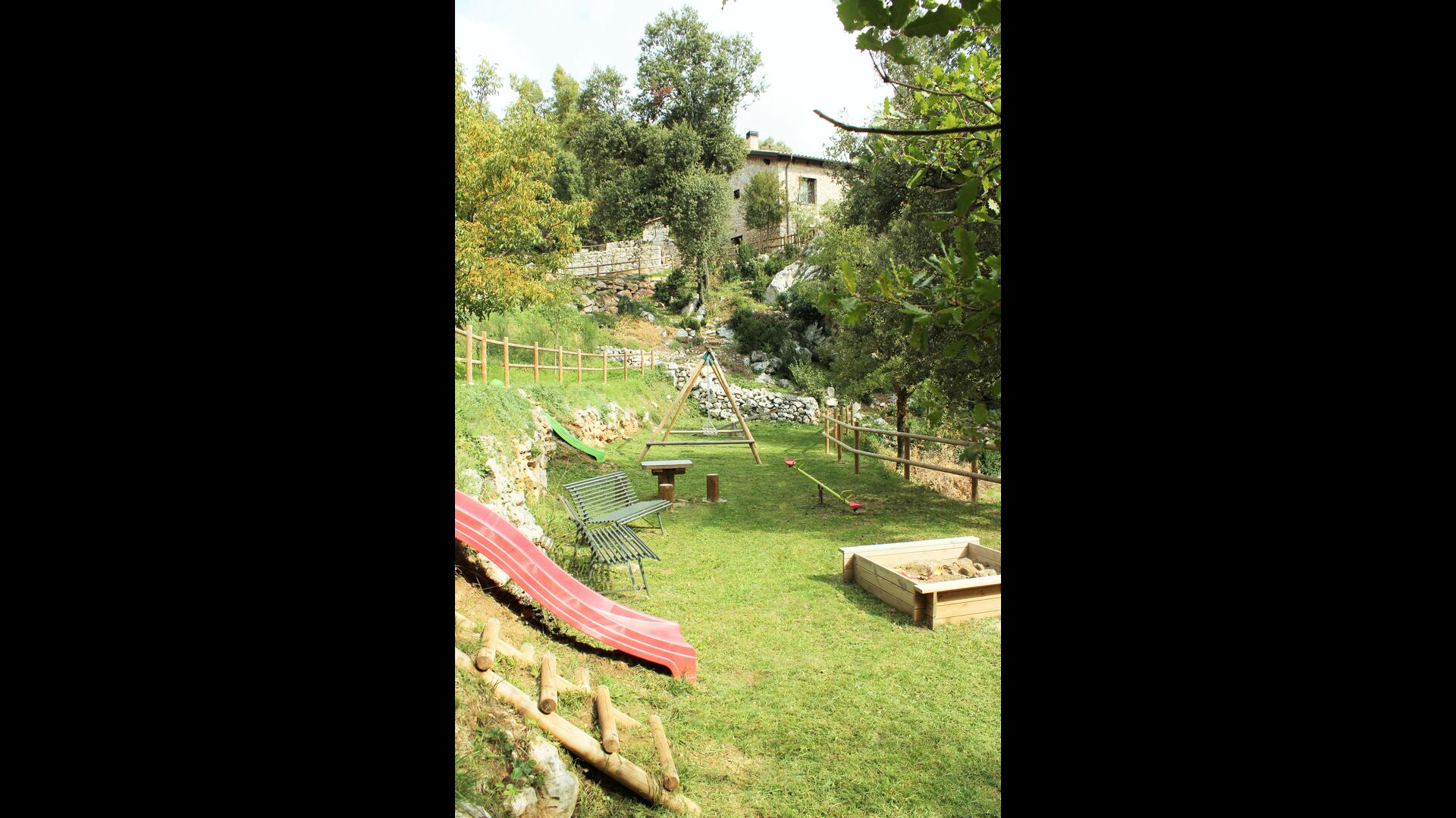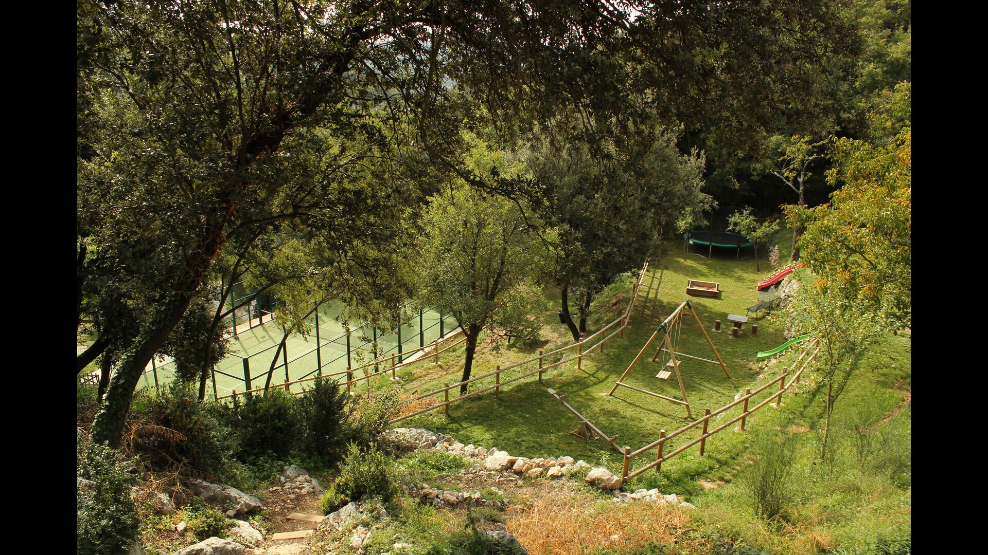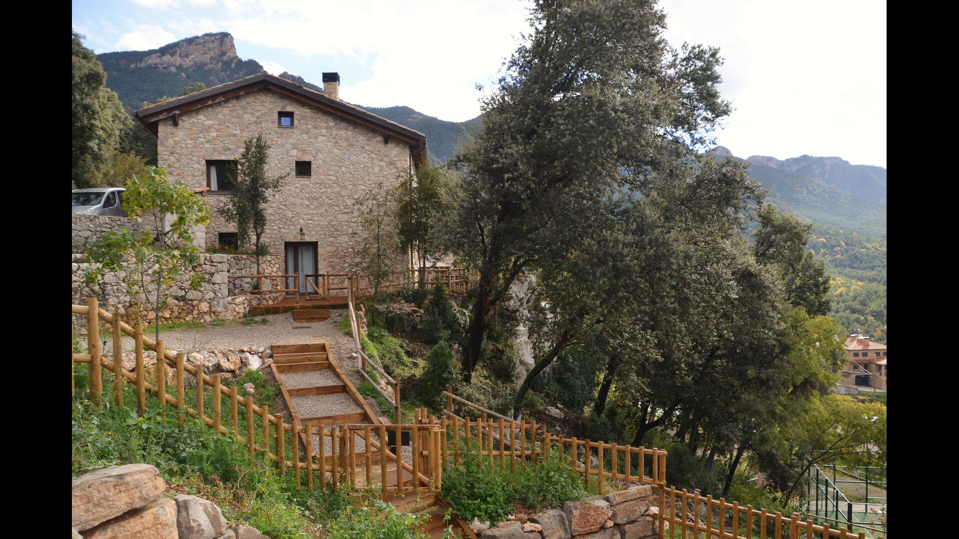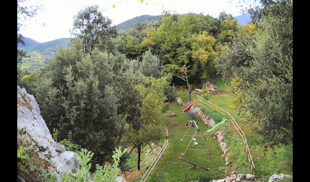 Vila Mas Vistador también tiene excelentes vistas, debido a la alta ubicación. La casa de vacaciones tiene vistas a la pequeña ciudad, situada a los pies de la propiedad. La acogedora ciudad cuenta con dos restaurantes, una panadería, una iglesia local, un gran parque infantil y un campo de fútbol, y se puede llegar a pie en 2-3 minutos. El jardín está dividido en cuatro niveles diferentes, uno con la cancha de tenis, otro con un parque infantil, otro con áreas de descanso y, por último, la maravillosa área de la piscina. El jardín verde es increíblemente hermoso e imaginamos que pasarás muchas horas aquí.