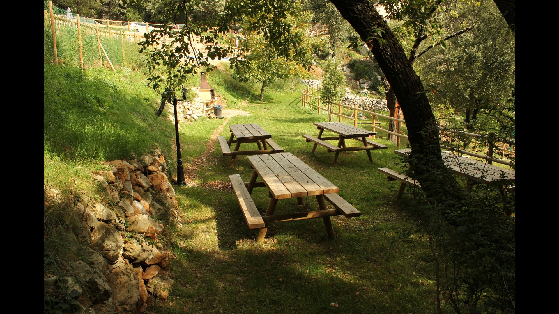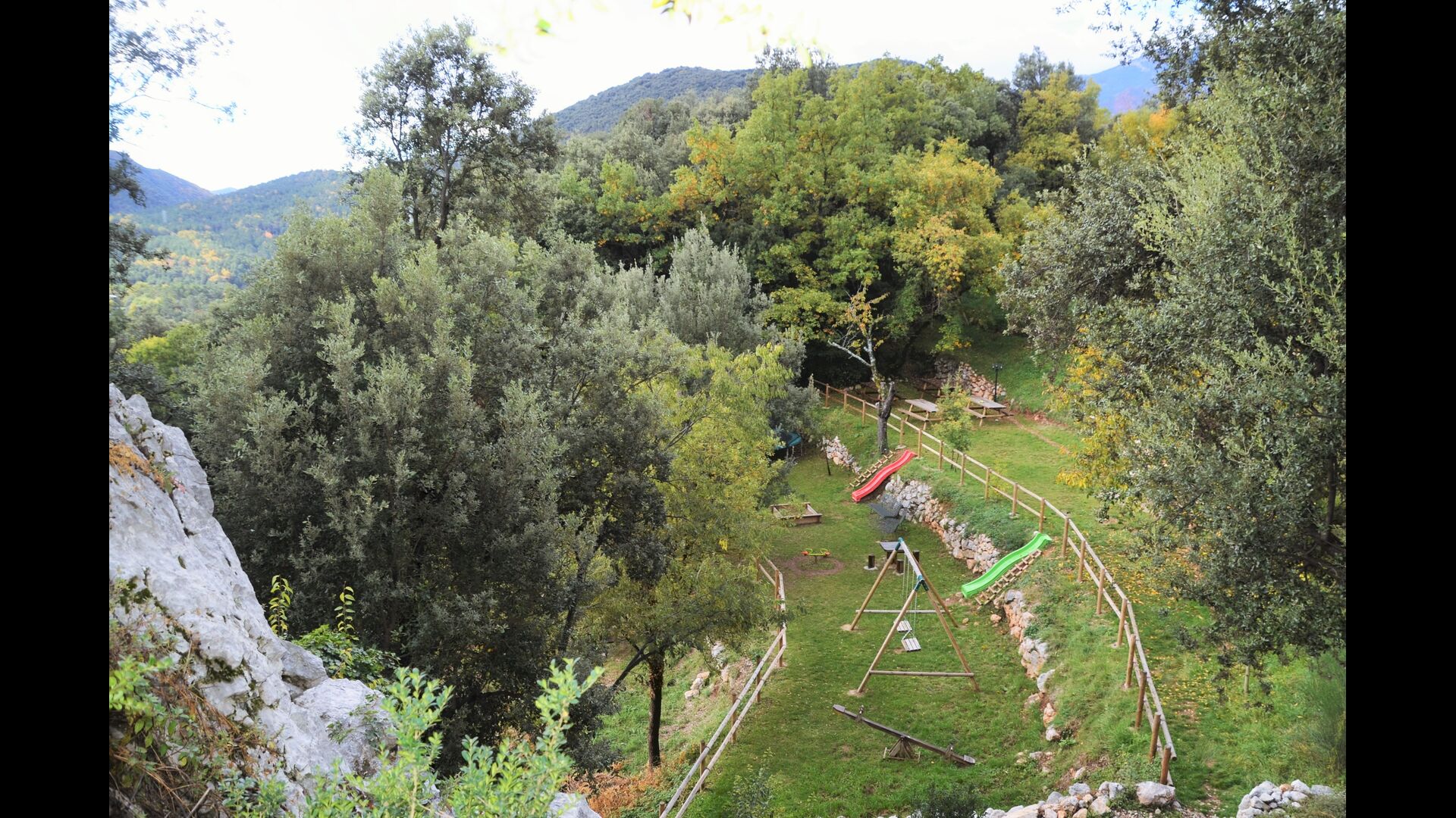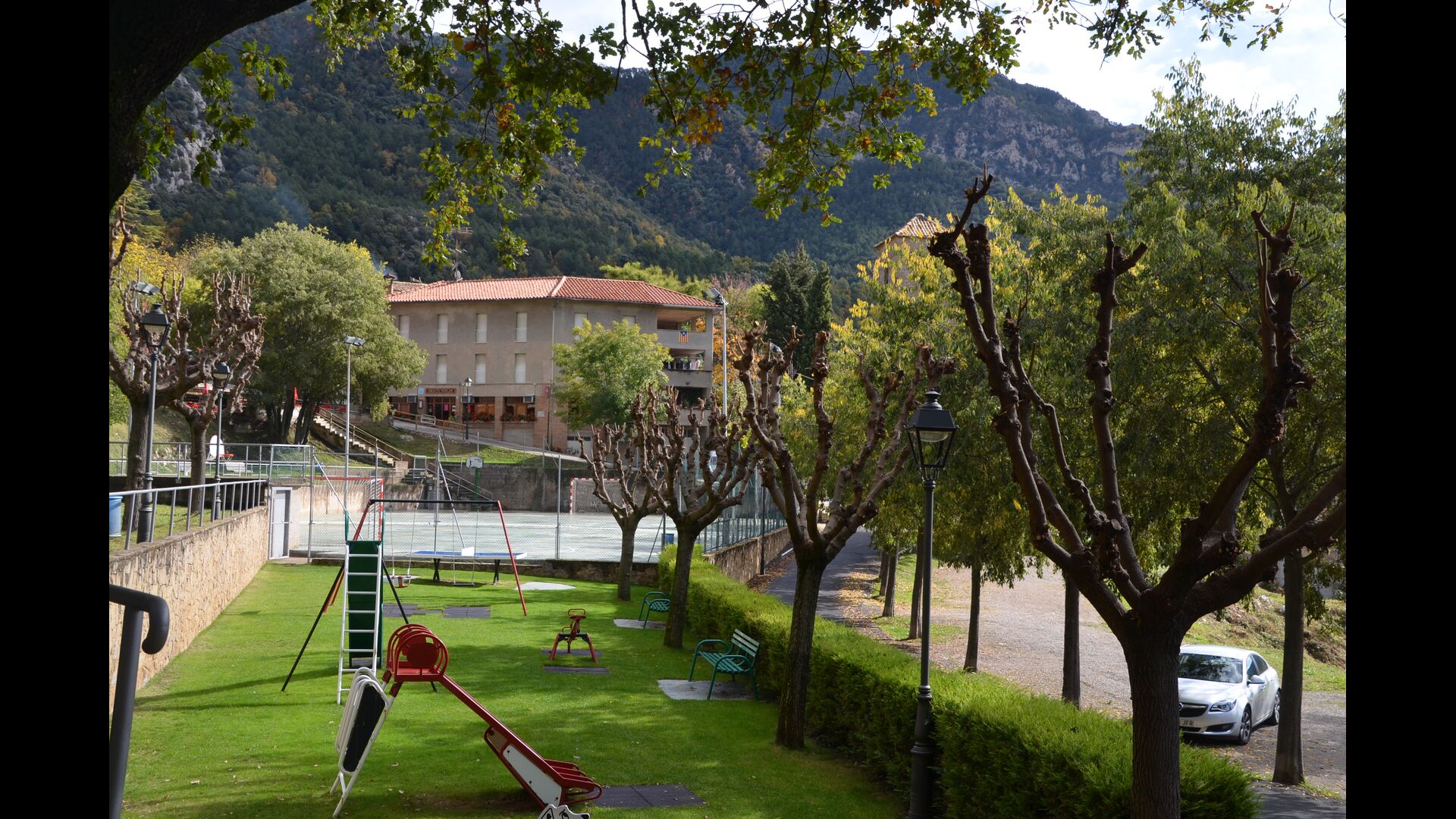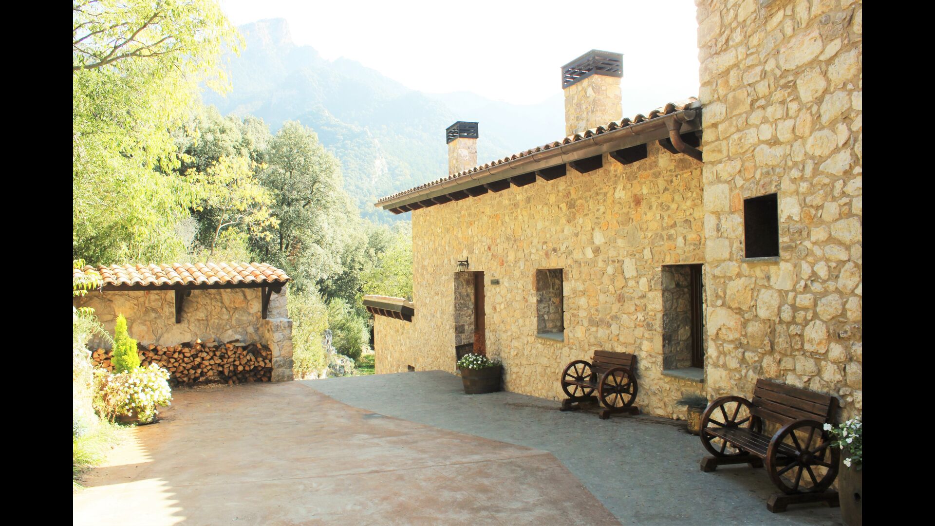 Vila Mas Vistador también tiene excelentes vistas, debido a la alta ubicación. La casa de vacaciones tiene vistas a la pequeña ciudad, situada a los pies de la propiedad. La acogedora ciudad cuenta con dos restaurantes, una panadería, una iglesia local, un gran parque infantil y un campo de fútbol, y se puede llegar a pie en 2-3 minutos. El jardín está dividido en cuatro niveles diferentes, uno con la cancha de tenis, otro con un parque infantil, otro con áreas de descanso y, por último, la maravillosa área de la piscina. El jardín verde es increíblemente hermoso e imaginamos que pasarás muchas horas aquí.