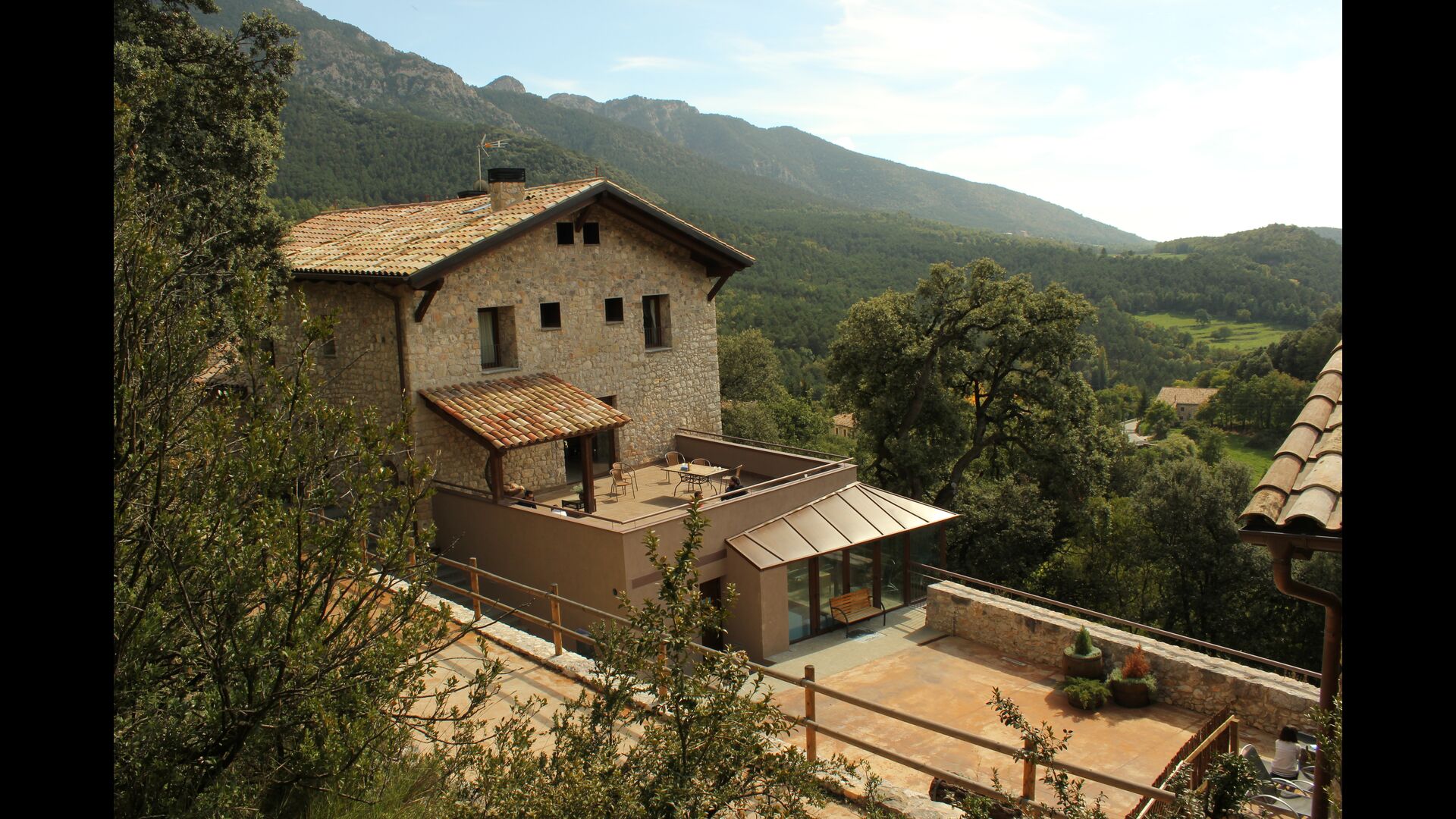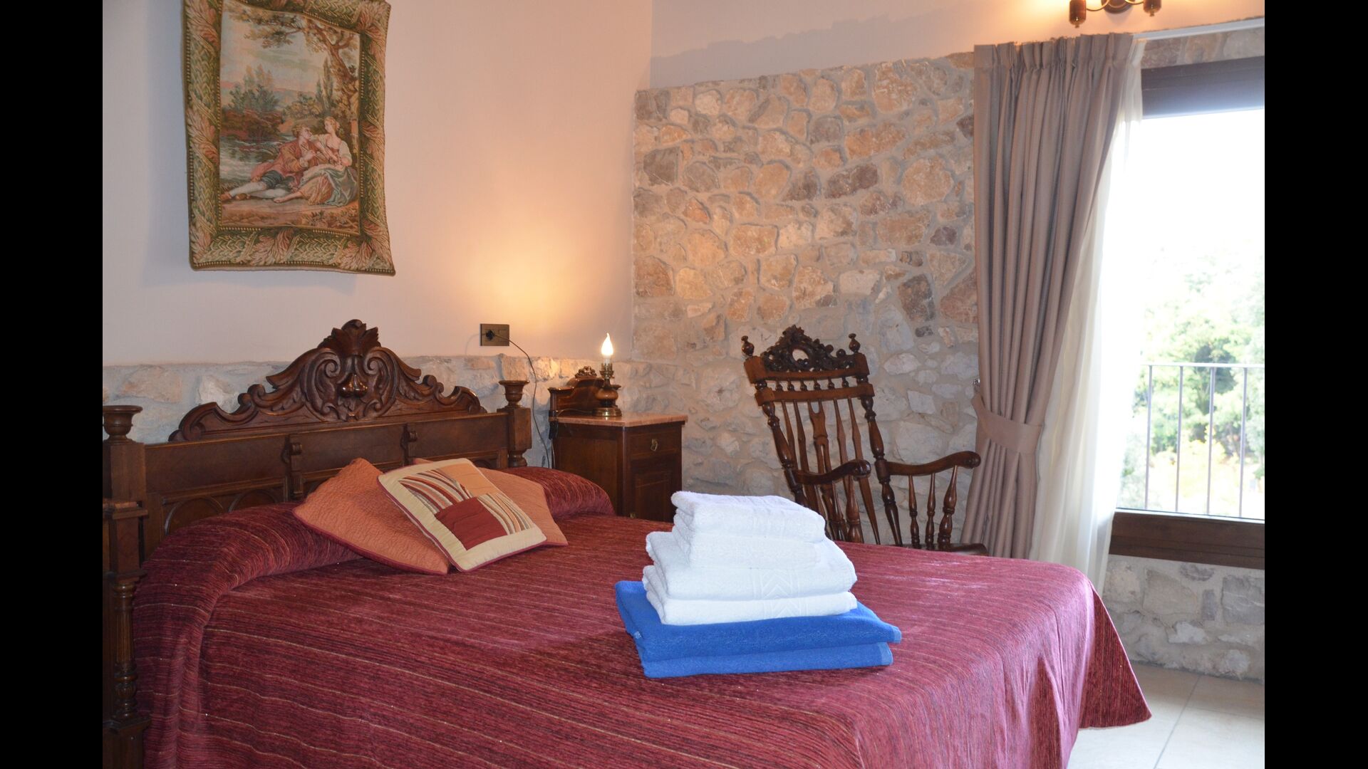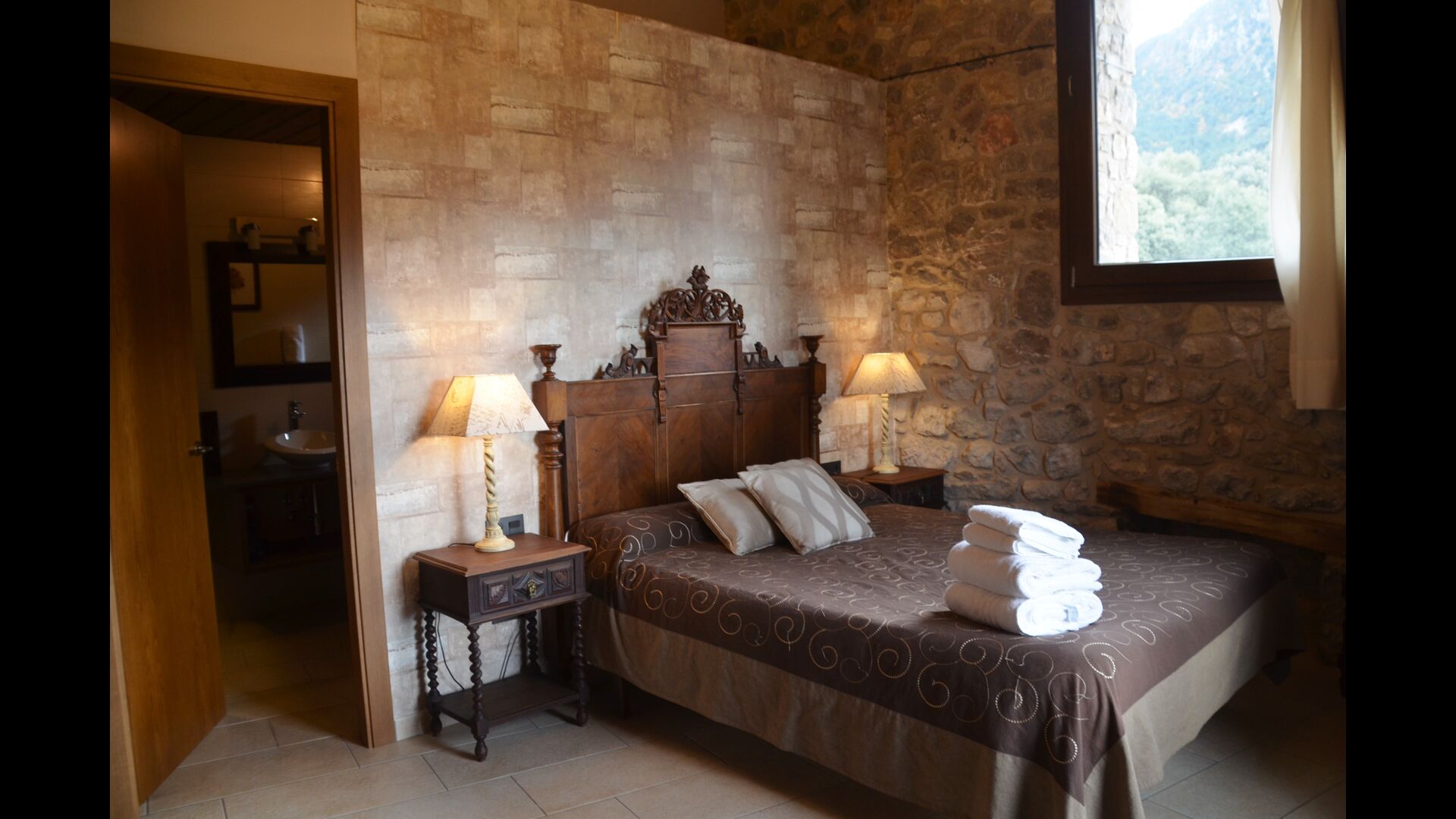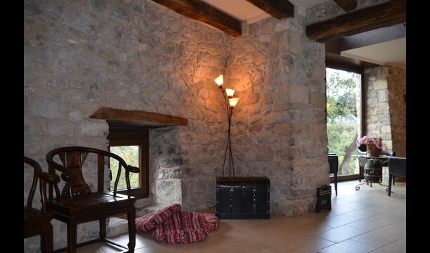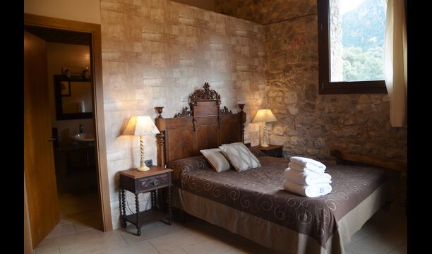 La casa de vacaciones es de un nivel muy alto con paredes de piedra catalanas tradicionales que le dan un aspecto muy hermoso y auténtico. Como se mencionó anteriormente, la casa tiene cinco "unidades" que se han fusionado, lo que significa que puede retirarse a su propia casa privada cada vez y relajarse. Hay un total de 13 habitaciones, de las cuales 11 son habitaciones dobles y 2 son habitaciones individuales. Hay un total de 11 baños.