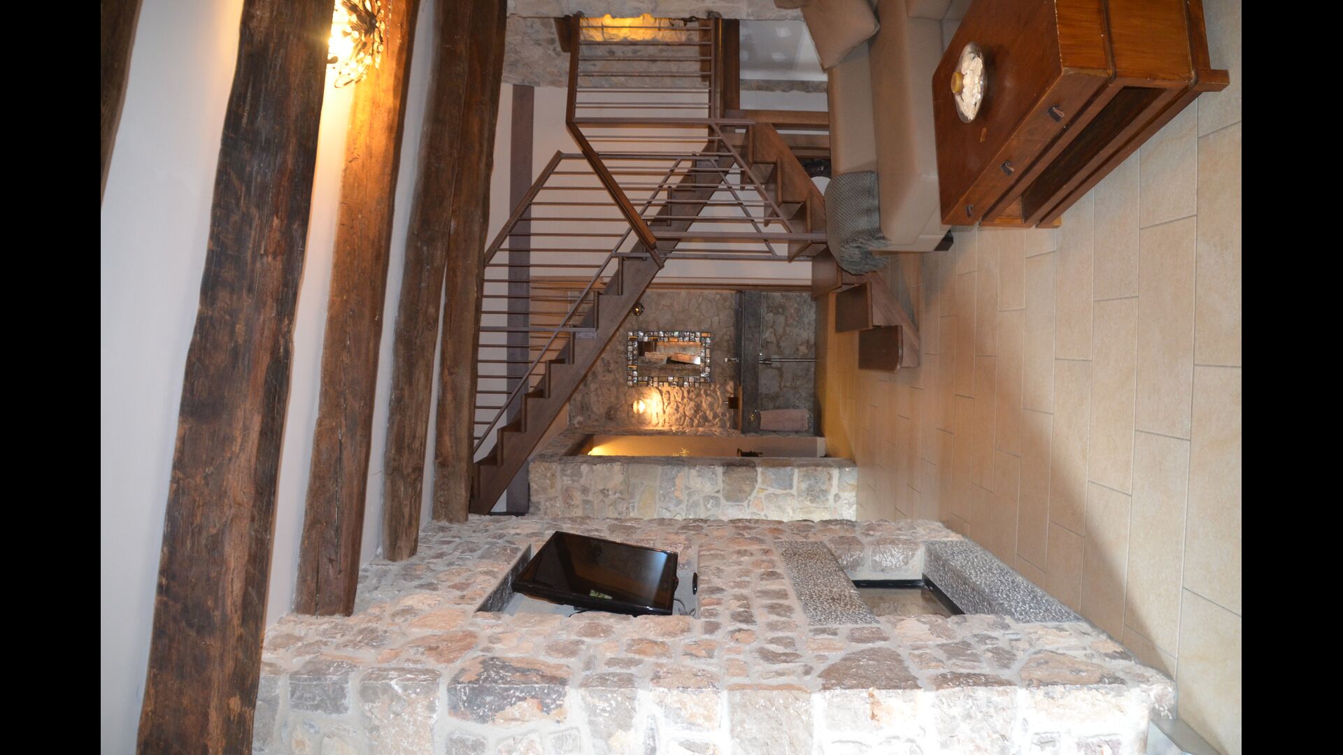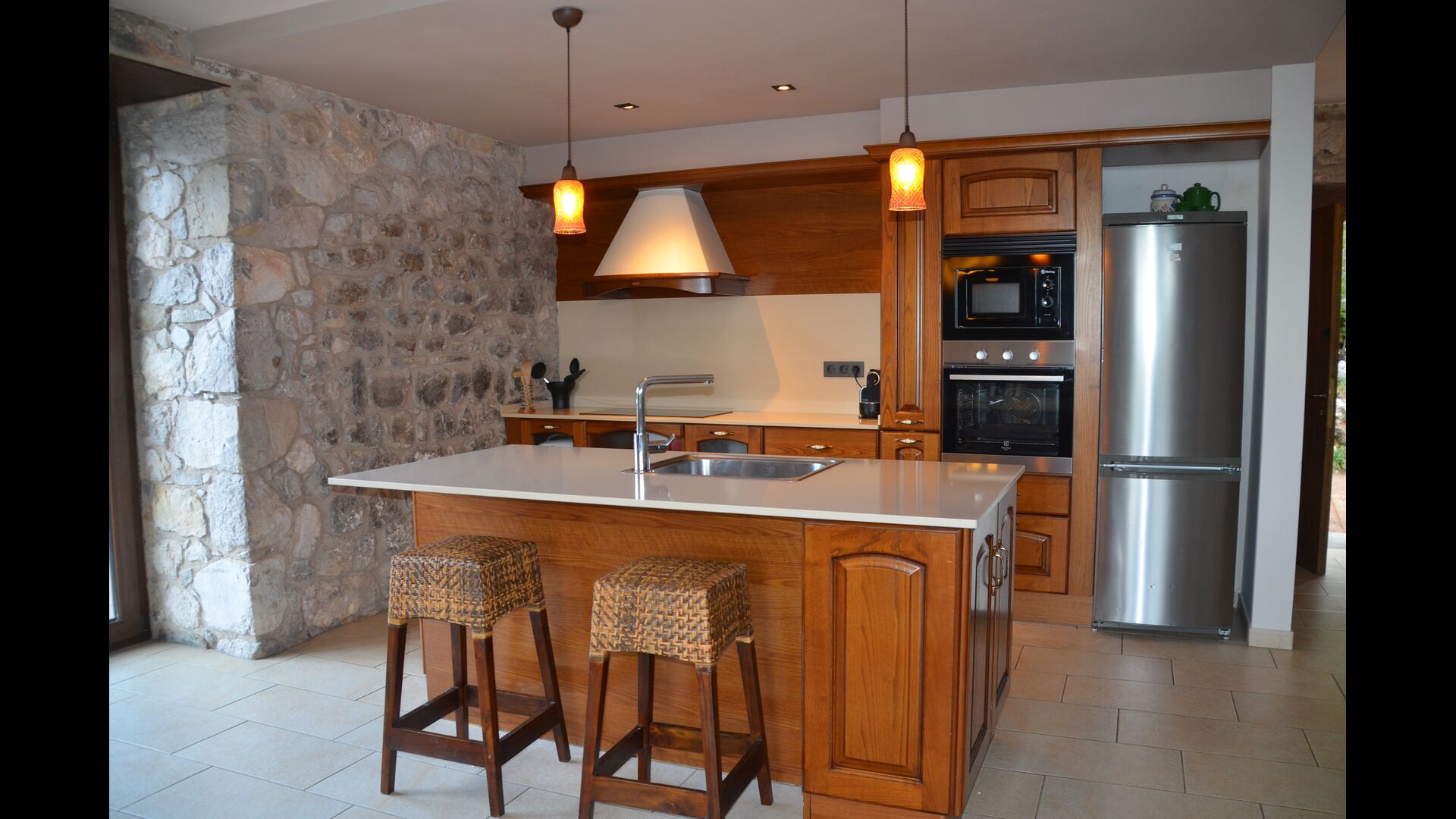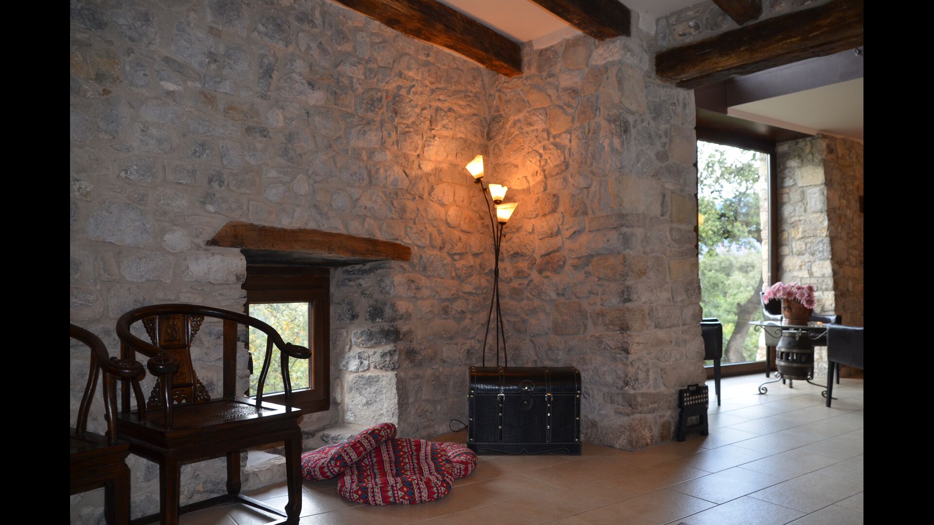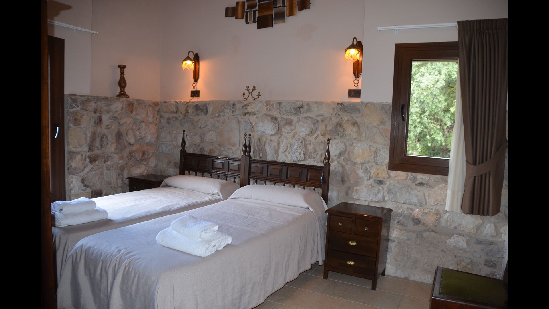La casa de vacaciones es de un nivel muy alto con paredes de piedra catalanas tradicionales que le dan un aspecto muy hermoso y auténtico. Como se mencionó anteriormente, la casa tiene cinco "unidades" que se han fusionado, lo que significa que puede retirarse a su propia casa privada cada vez y relajarse. Hay un total de 13 habitaciones, de las cuales 11 son habitaciones dobles y 2 son habitaciones individuales. Hay un total de 11 baños.