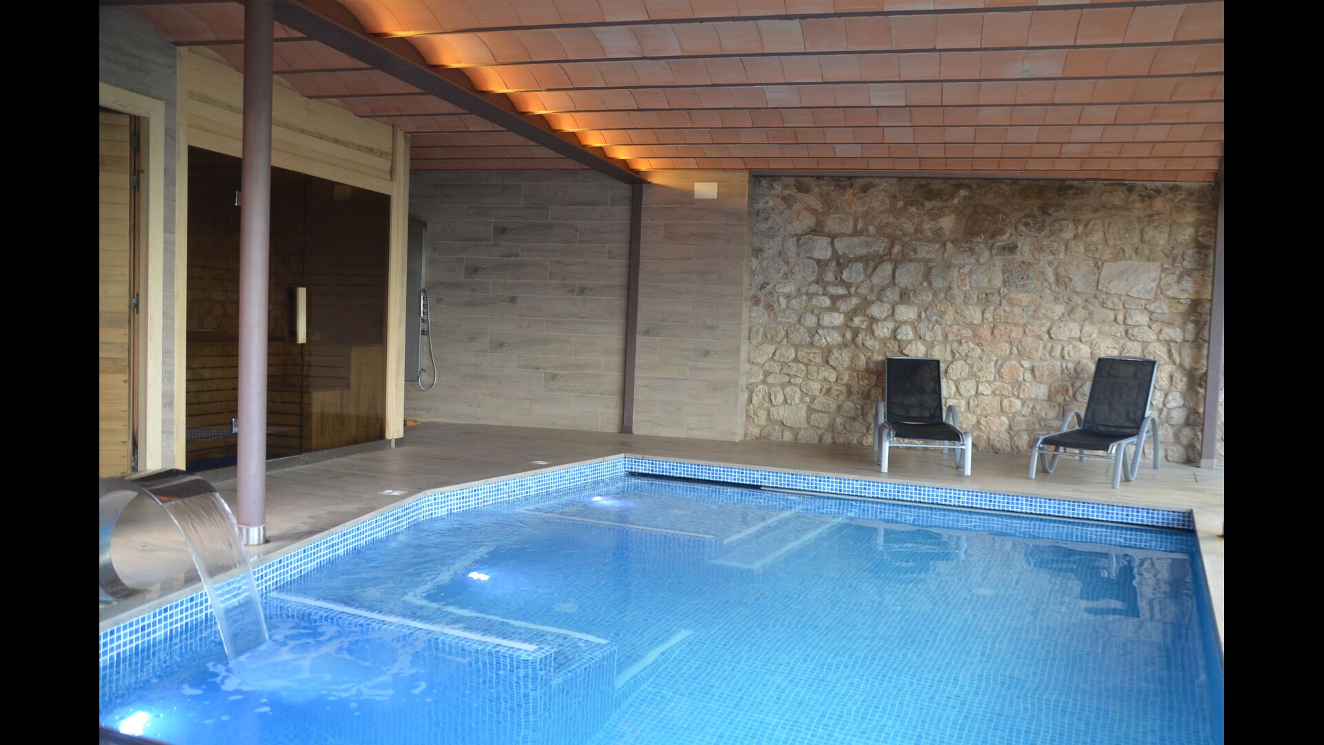 Si está buscando una lujosa casa rural, ubicada muy cerca de una pequeña y auténtica ciudad catalana, pero aún rodeada de un paisaje impresionante, Vila Mas Vistador es el lugar perfecto para usted. La casa de vacaciones se compone de cinco hermosas unidades que pueden acomodar hasta 24 (+12) personas. Lo más destacado de la casa son las excelentes instalaciones y áreas al aire libre, que incluyen una piscina cubierta y otra al aire libre, una sauna, un parque infantil, una cancha de pádel y dos increíbles áreas para relajarse con bancos y mesas.