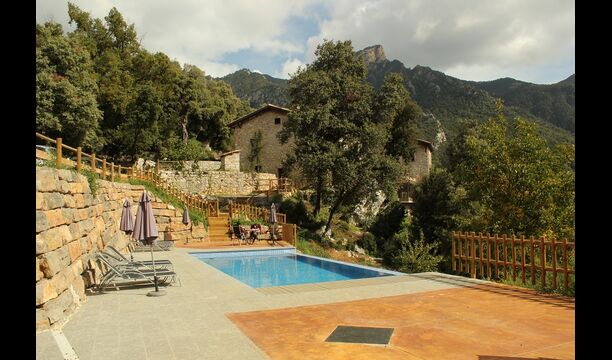 La casa rural Balconada es la segunda casa de vacaciones más grande de la finca y puede alojar a 5 (+3) personas. La propiedad es de alta calidad. Balconada está construida con muros de piedra catalanes tradicionales, lo que le da un aspecto muy hermoso y auténtico. Además, la casa de vacaciones tiene tres dormitorios. Una de las habitaciones está equipada con una cama doble, la segunda con dos camas individuales y la tercera con una cama individual. Uno de los dos baños es un baño privado conectado a la gran habitación doble, y el segundo baño se comparte entre las dos habitaciones restantes.
