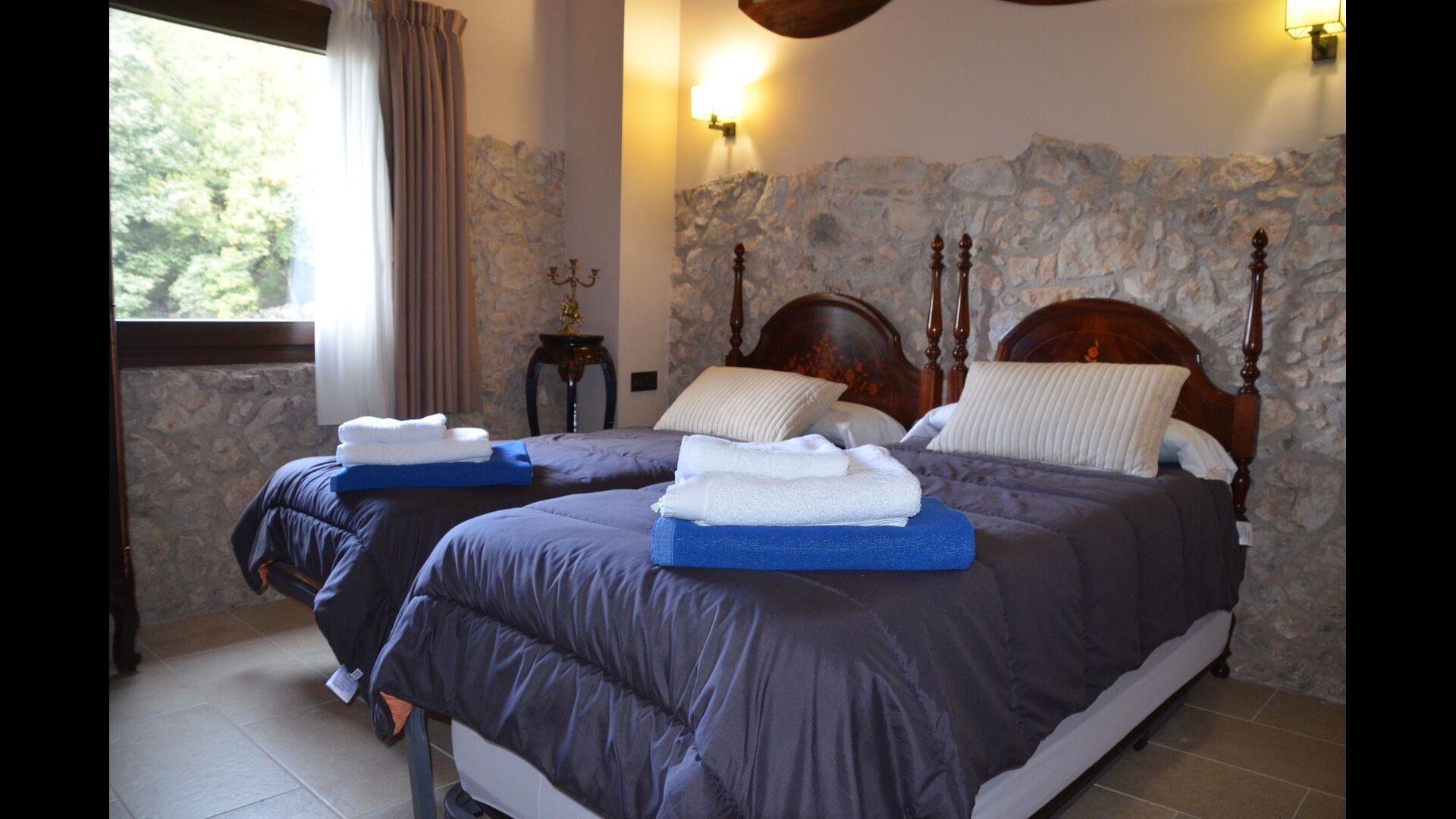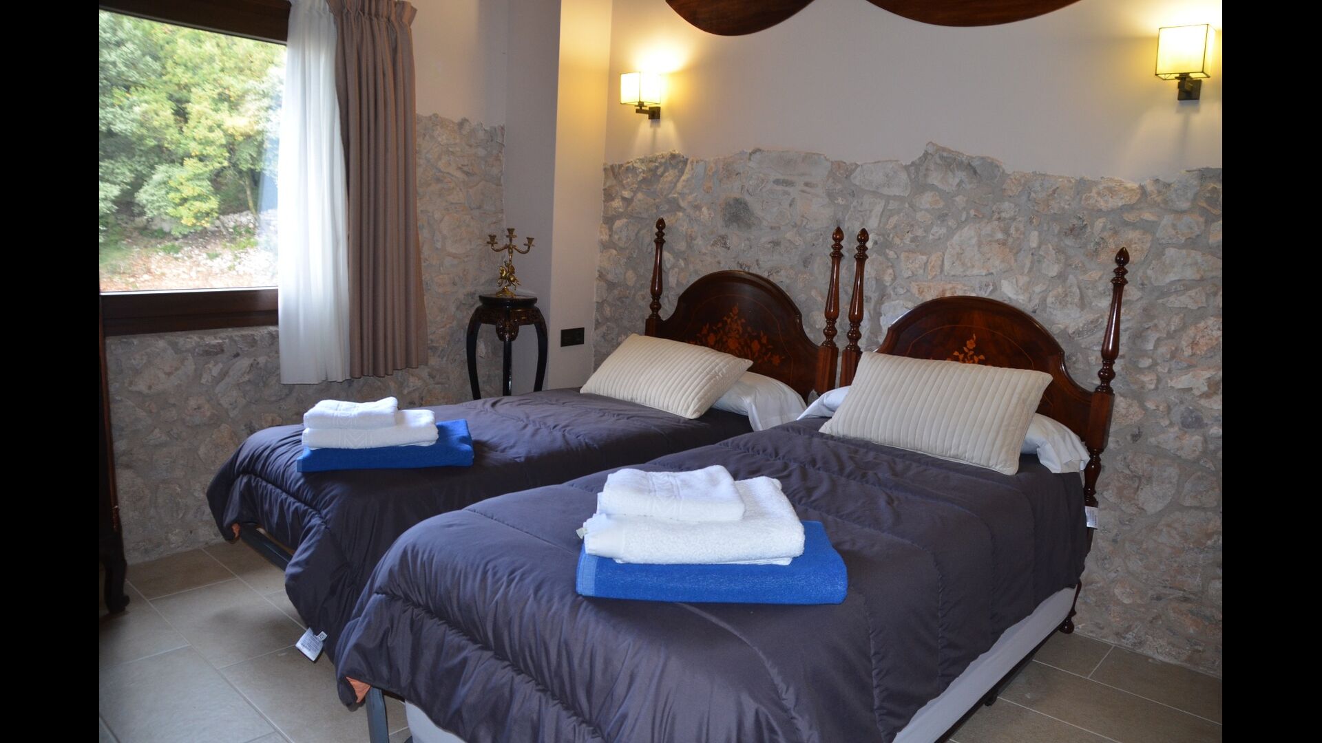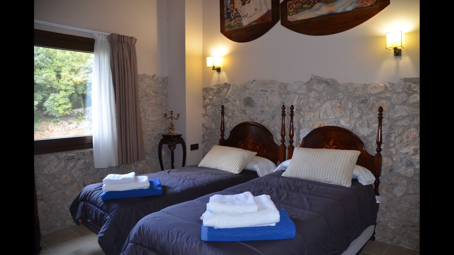 Vila Mas Vistador - Paissa Pou es uno de los dos apartamentos ubicados en el gran edificio principal antiguo. Ambos apartamentos cubren dos pisos. El apartamento de vacaciones Paissa Pou puede alojar a 4 (+2) personas. La propiedad es de alta calidad y está construida con muros de piedra catalanes tradicionales, lo que le da un aspecto muy hermoso y auténtico. El apartamento vacacional tiene dos habitaciones: una de las habitaciones está equipada con una cama doble y la otra con dos camas individuales. Ambas habitaciones tienen un baño moderno contiguo.