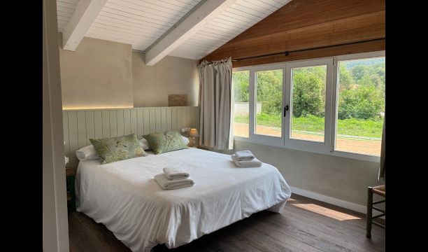 En la planta baja encontramos la cocina, salón con chimenea y comedor. En la planta baja también se encuentra un dormitorio doble con baño adaptado para sillas de ruedas. La casa tiene un segundo nivel donde podemos encontrar una habitación doble adicional con baño.