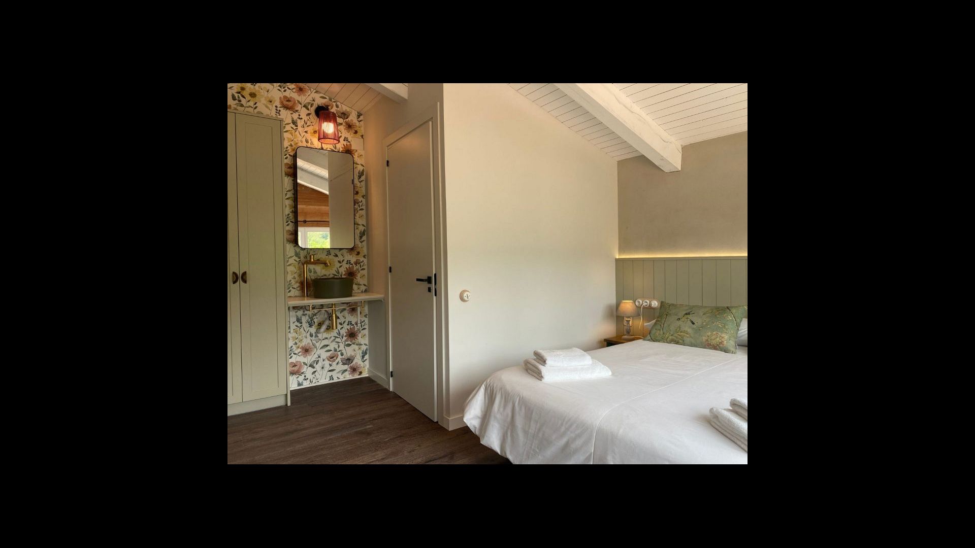 La cabaña está ubicada en medio de un valle tranquilo. Rodeada de recursos naturales llenos de vida como el río que cruza frente al jardín o el estanque de agua junto a la piscina hacen de esta casa un hermoso lugar para relajarse junto con el agua que fluye en su entorno.