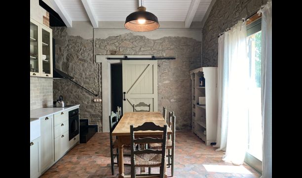 La preciosa terraza está conectada directamente con la casa y le proporciona tanto lugares soleados para disfrutar del verano catalán como lugares con sombra, si hace demasiado calor durante el día. Y luego, por supuesto, podrá refrescarse en la piscina privada. La terraza dispone también de tumbonas, mesa de terraza y barbacoa.