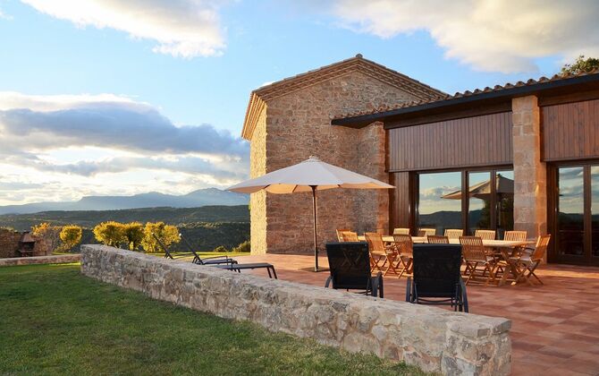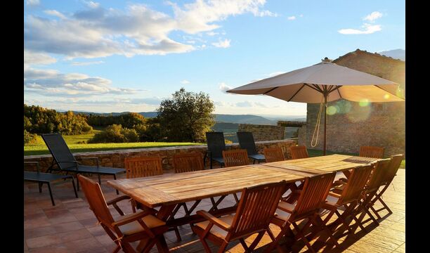 En la Cataluña central, en la cima de una colina, acaba de abrirse la casa de vacaciones recientemente restaurada Can de Mateo. La casa tiene espacio para 11 + 2 huéspedes y la dispone de una ubicación única. En Can de Mateo tienes la oportunidad de disfrutar de una vista de 360 grados de la Catalunya central, enmarcada por el pre pirineo al fondo. Representamos muchas casas de vacaciones en esta región, todas con impresionantes vistas, pero Can de Mateo lo supera todo hasta ahora.