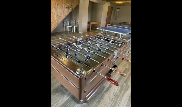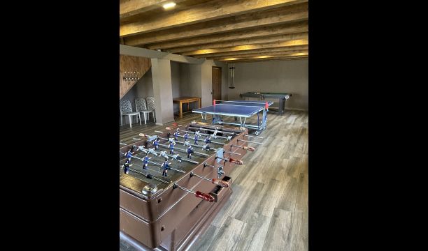 La propiedad es un paraíso para los niños. La casa dispone de piscina vallada, campo de fútbol vallado y un edificio con futbolín, billar y ping-pong. En la primera planta de este edificio también hay un proyector y DVD para que puedas ver películas. Cuando la casa se alquila juntos, también podéis optar por comer juntos aquí, ya que hay una gran mesa de madera, o podéis comer en "El Gran".