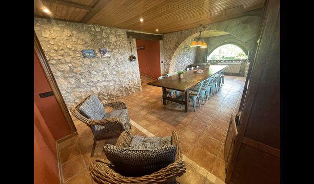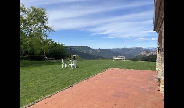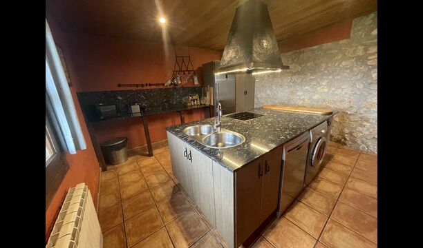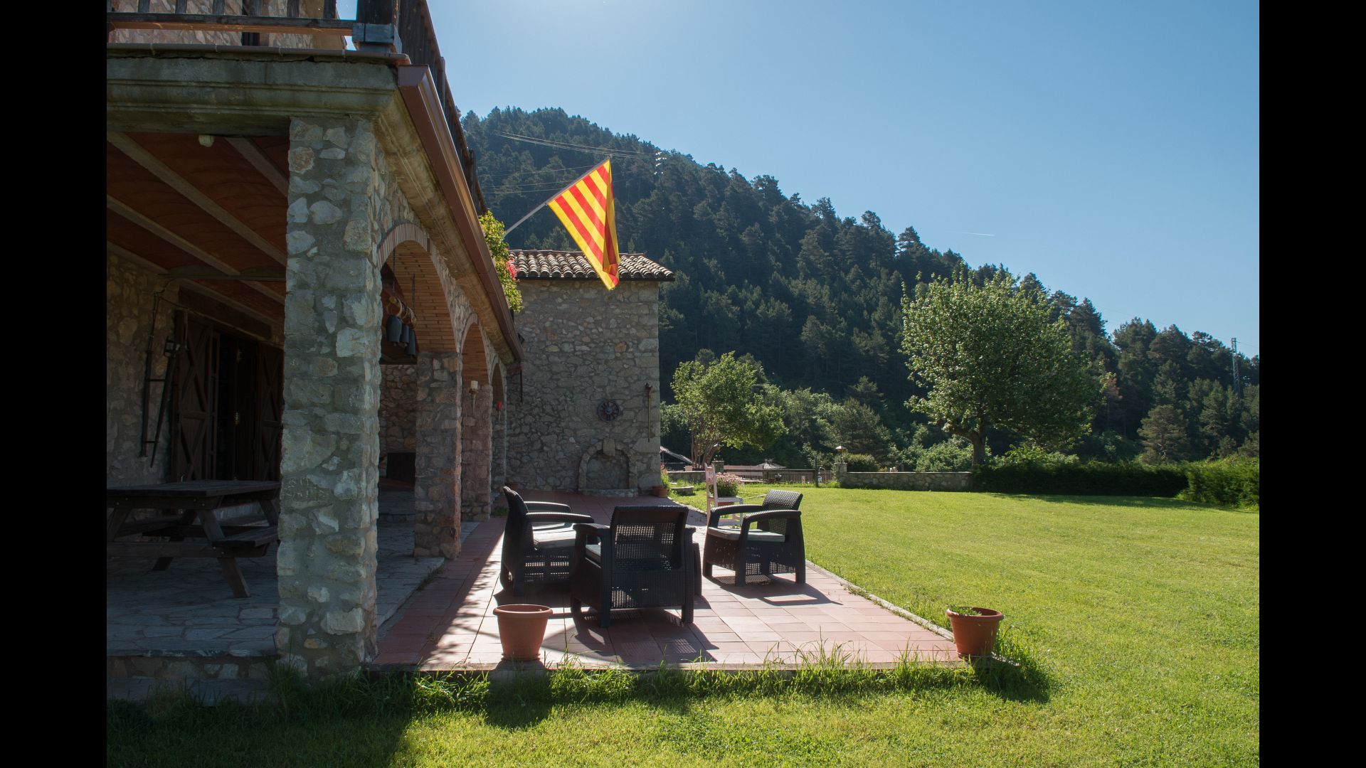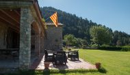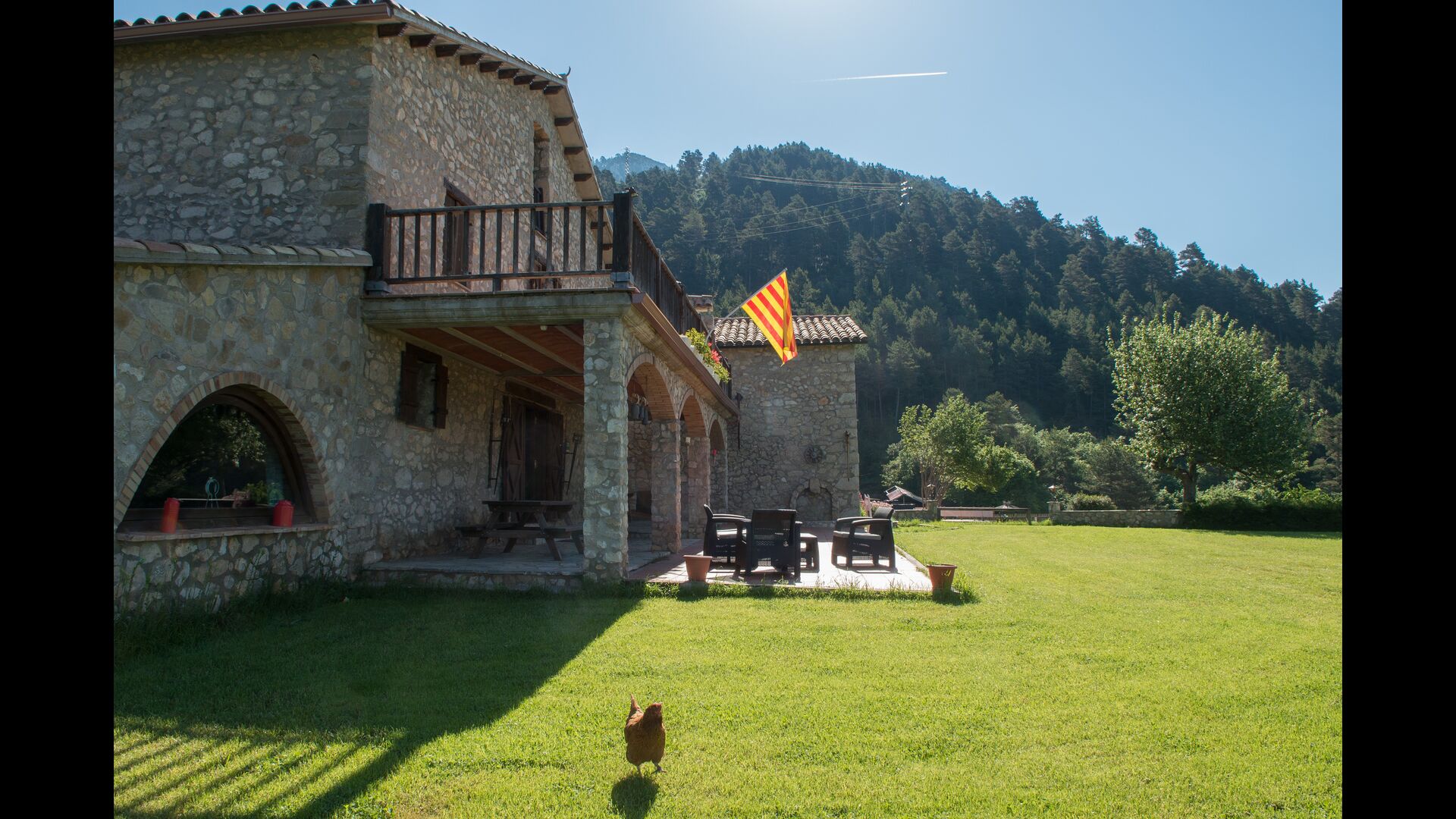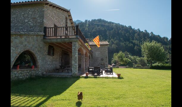 El gran apartamento "Casa Gran" en la casa principal y tiene una gran terraza con vistas a la propiedad y con los Pirineos levantándose de fondo. Este apartamento dispone de cuatro habitaciones dobles, tres de ellas con camas de matrimonio, además de una habitación cuádruple con cuatro camas individuales. La primera parte del apartamento se divide en una sala de estar con vista, un comedor muy auténtico y una cocina grande con, entre otras cosas, lavavajillas y lavadora.