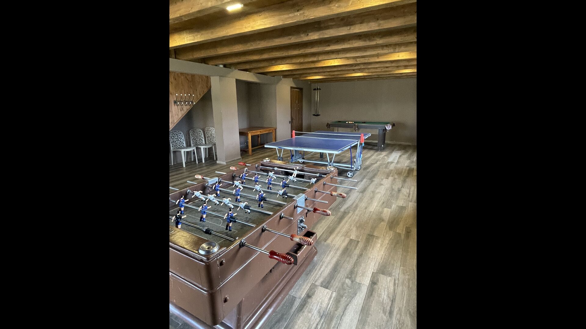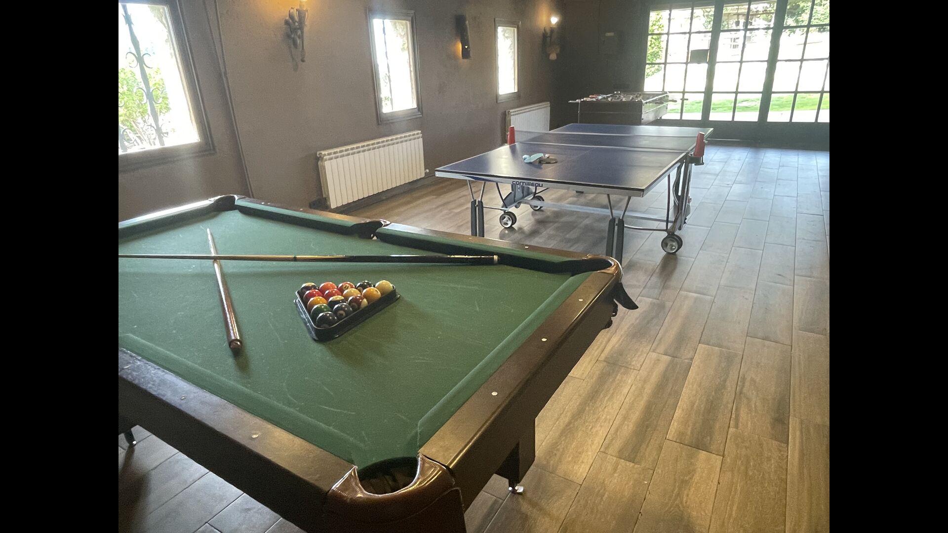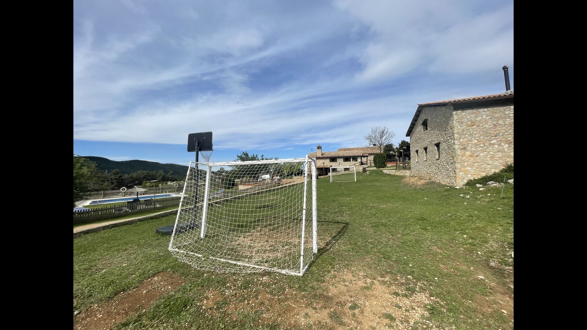 La propiedad es un paraíso para los niños. La casa dispone de piscina vallada, campo de fútbol vallado y un edificio con futbolín, billar y ping-pong. En la primera planta de este edificio también hay un proyector y DVD para que puedas ver películas.