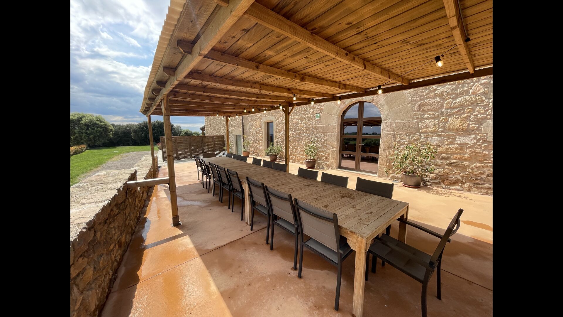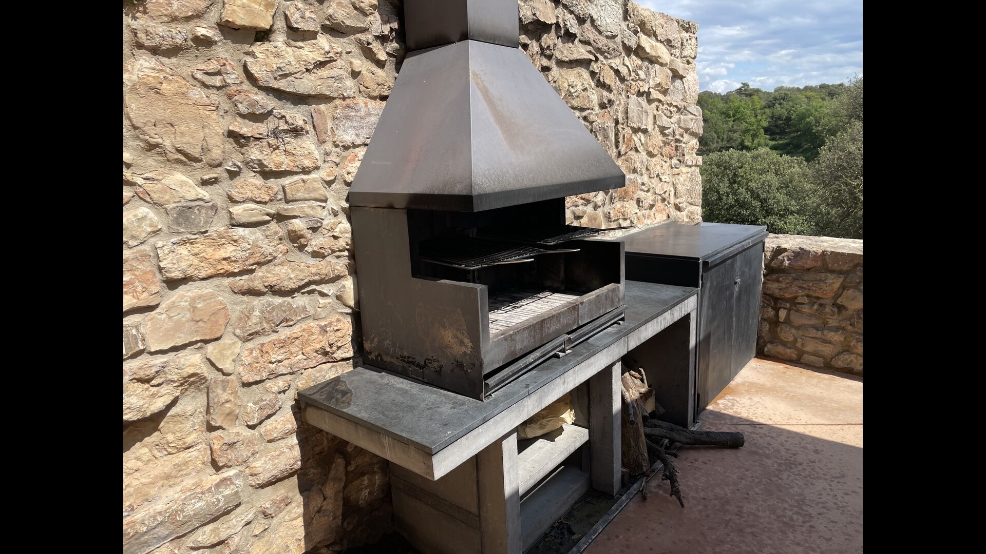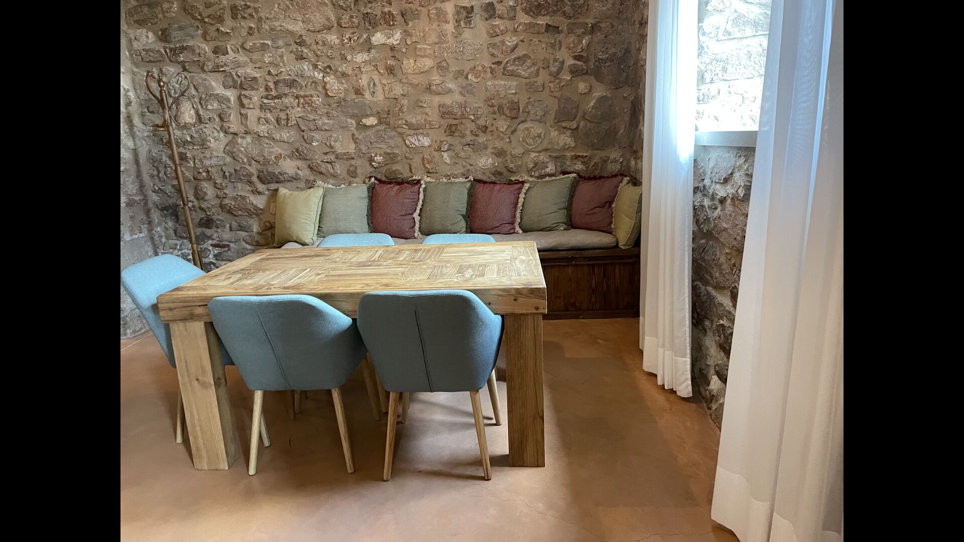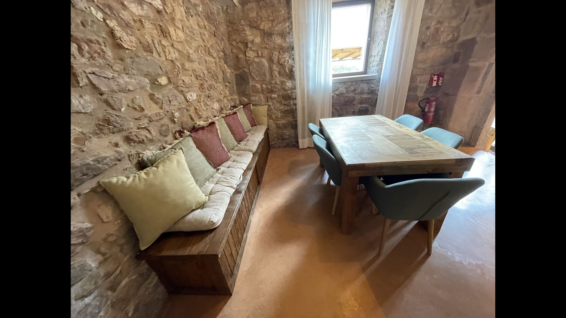 Desde la terraza exterior, con barbacoa, un espacio para comer y tumbonas para relajarse, entramos directamente a gran comedor del Mas. Este actúa como corazón de la casa, y conecta los dos pequeños salones de la planta baja con la gran cocina. Esta está perfectamente equipada con 2 placas de gas, 2 lavavajillas, 2 neveras con congelador, horno, microondas y cafetera, además de una pequeña mesa para desayunar.