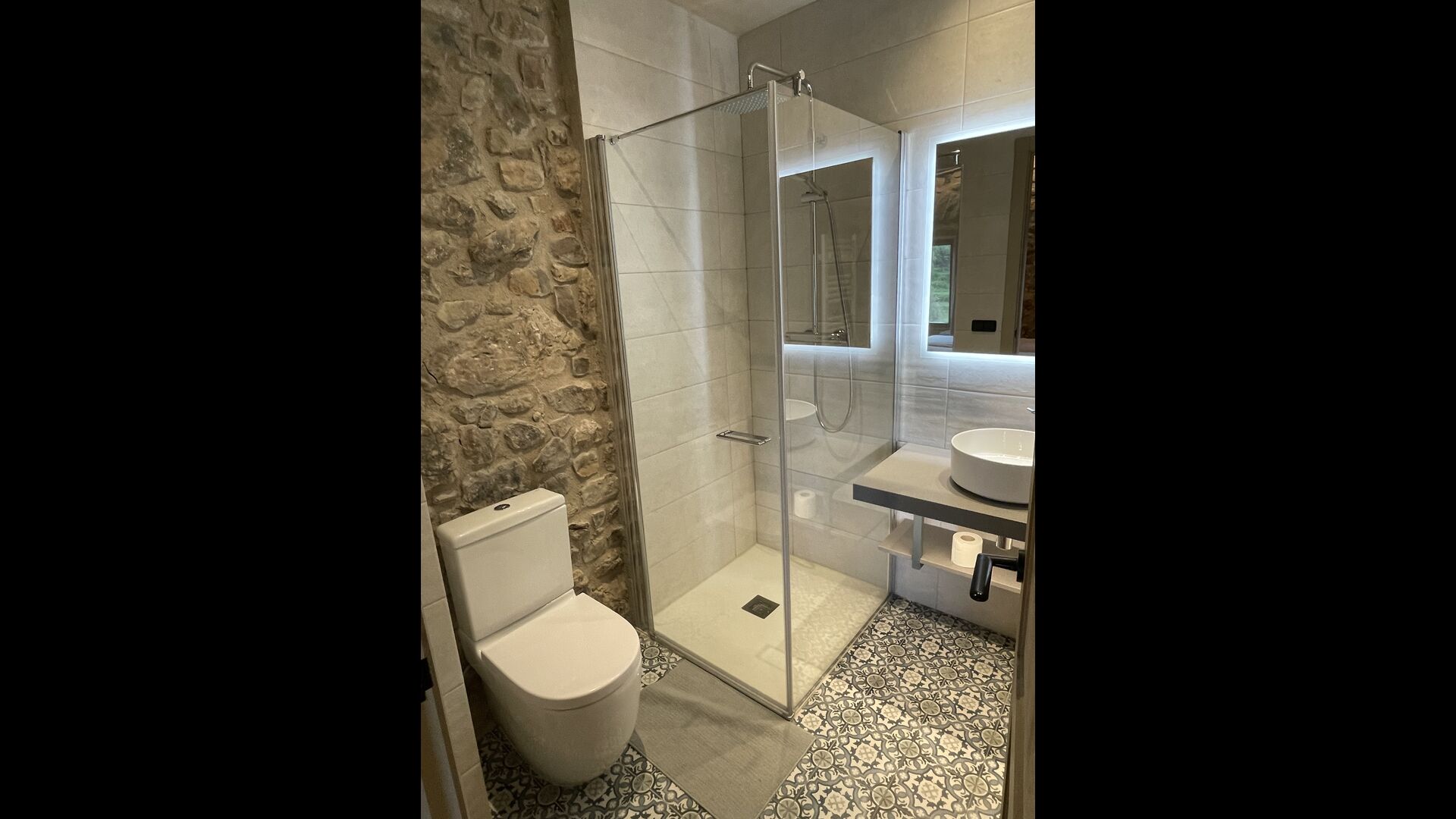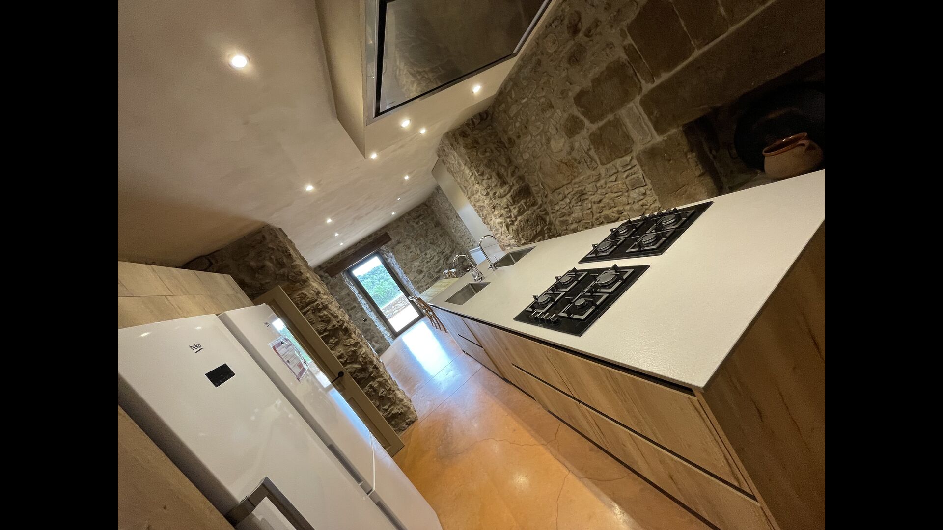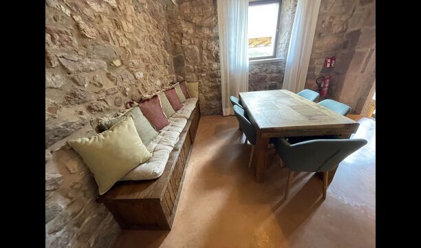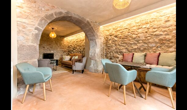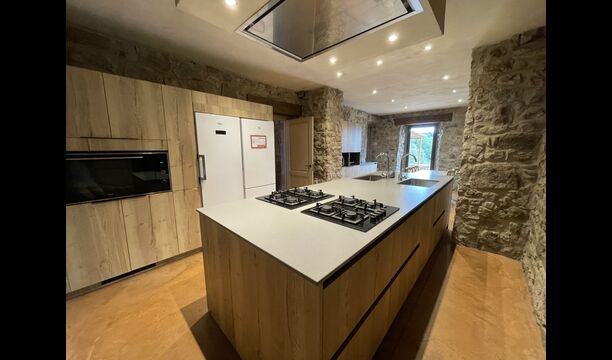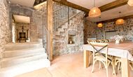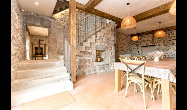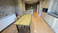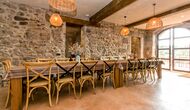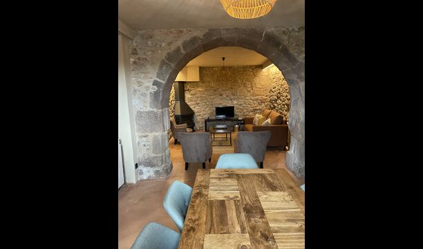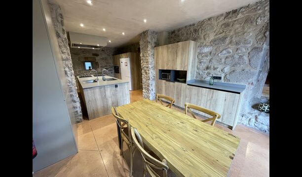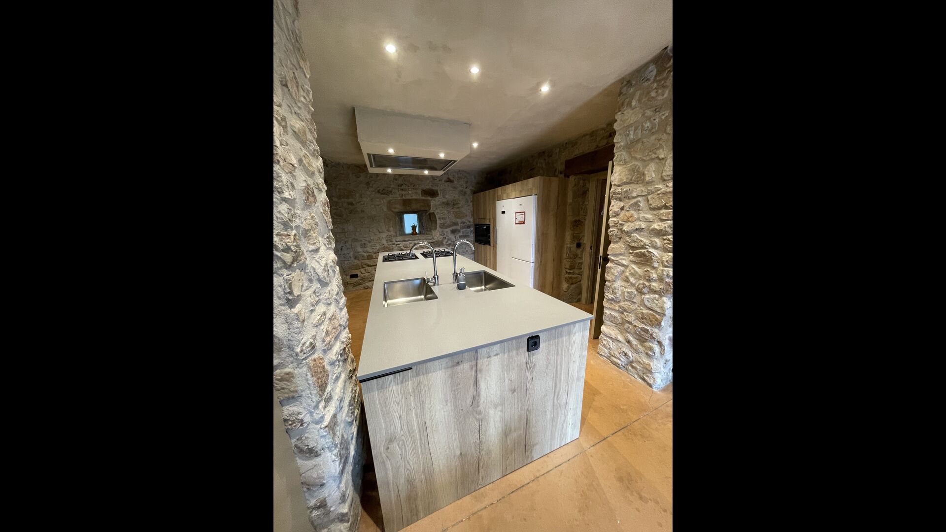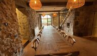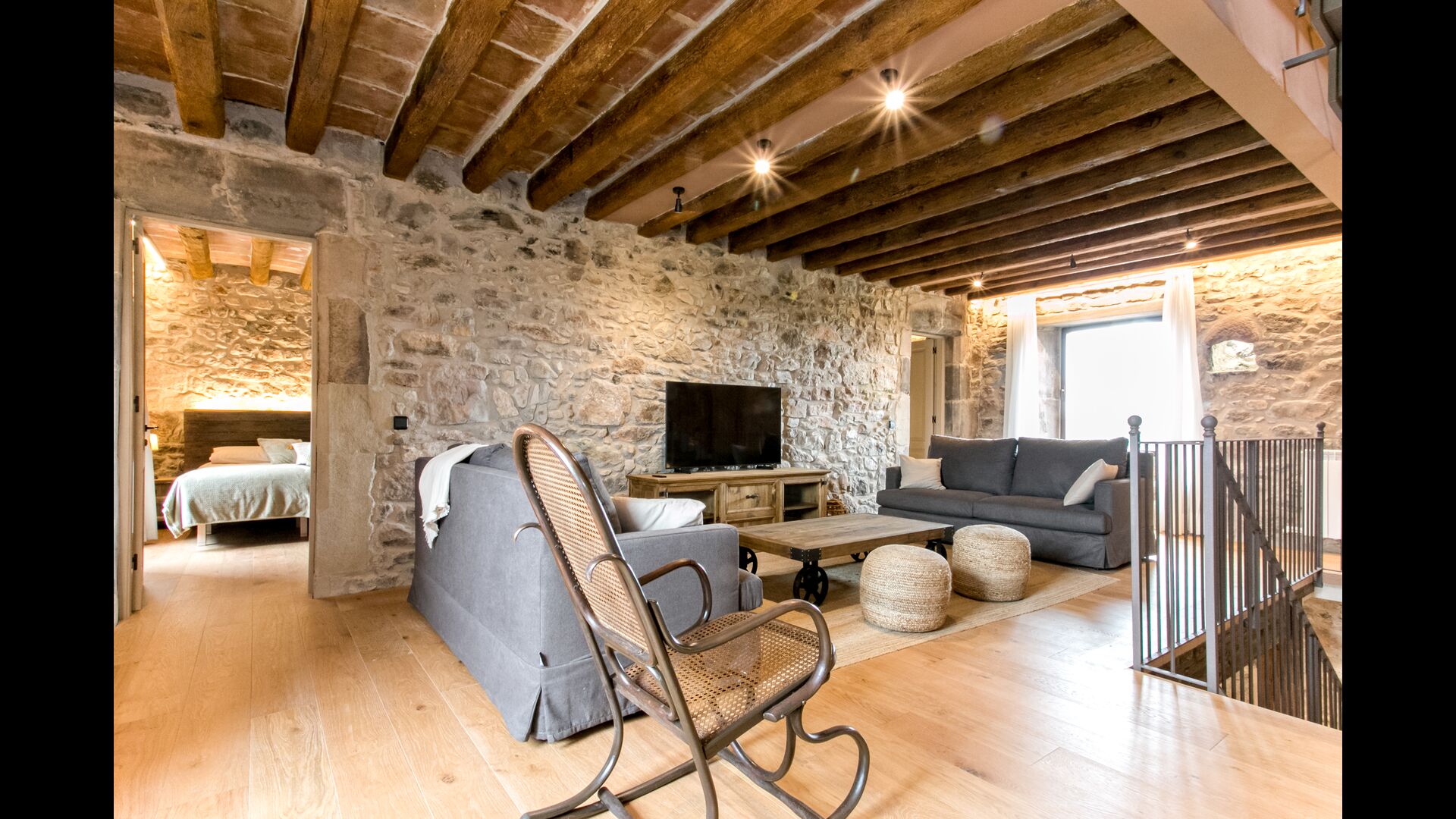 Desde la terraza exterior, con barbacoa, un espacio para comer y tumbonas para relajarse, entramos directamente a gran comedor del Mas. Este actúa como corazón de la casa, y conecta los dos pequeños salones de la planta baja con la gran cocina. Esta está perfectamente equipada con 2 placas de gas, 2 lavavajillas, 2 neveras con congelador, horno, microondas y cafetera, además de una pequeña mesa para desayunar.