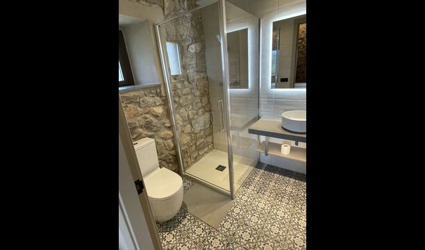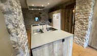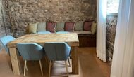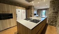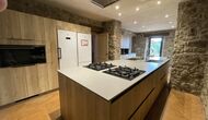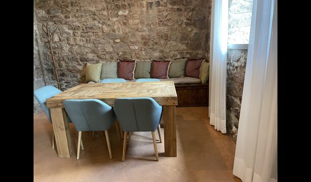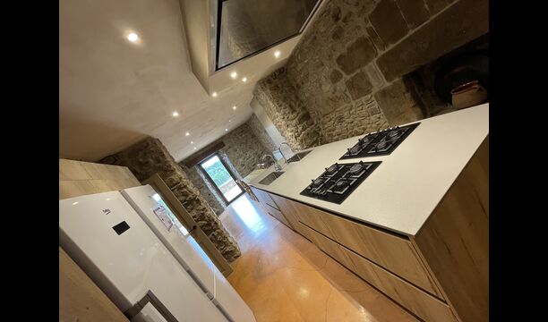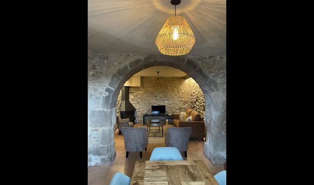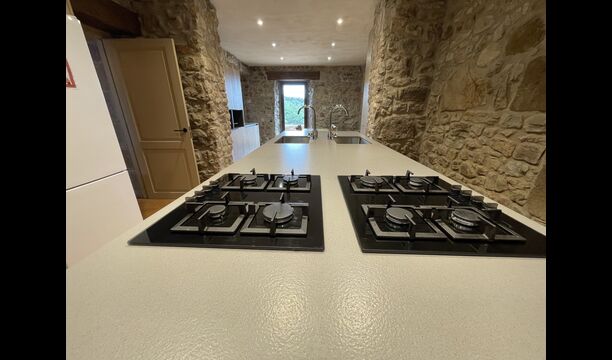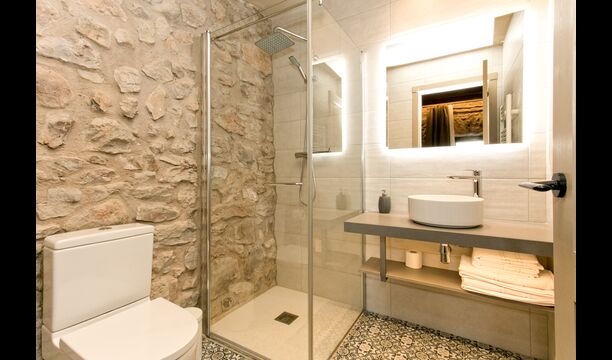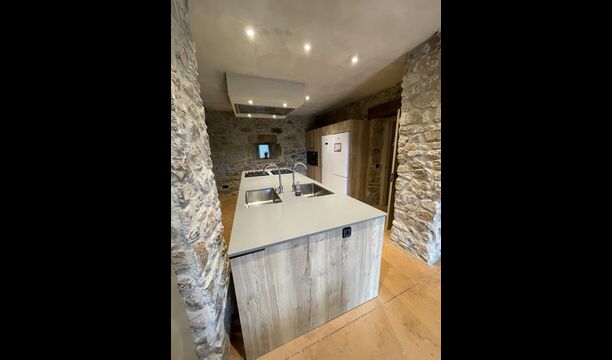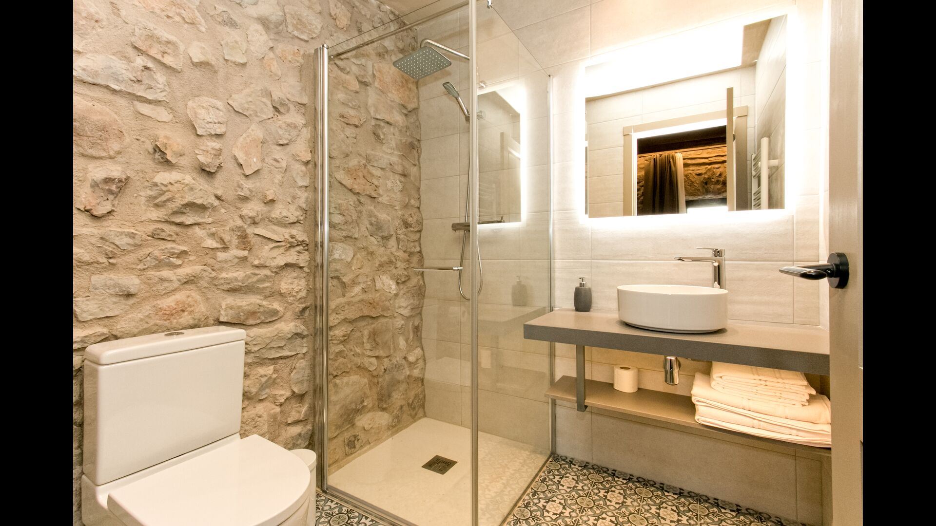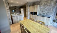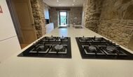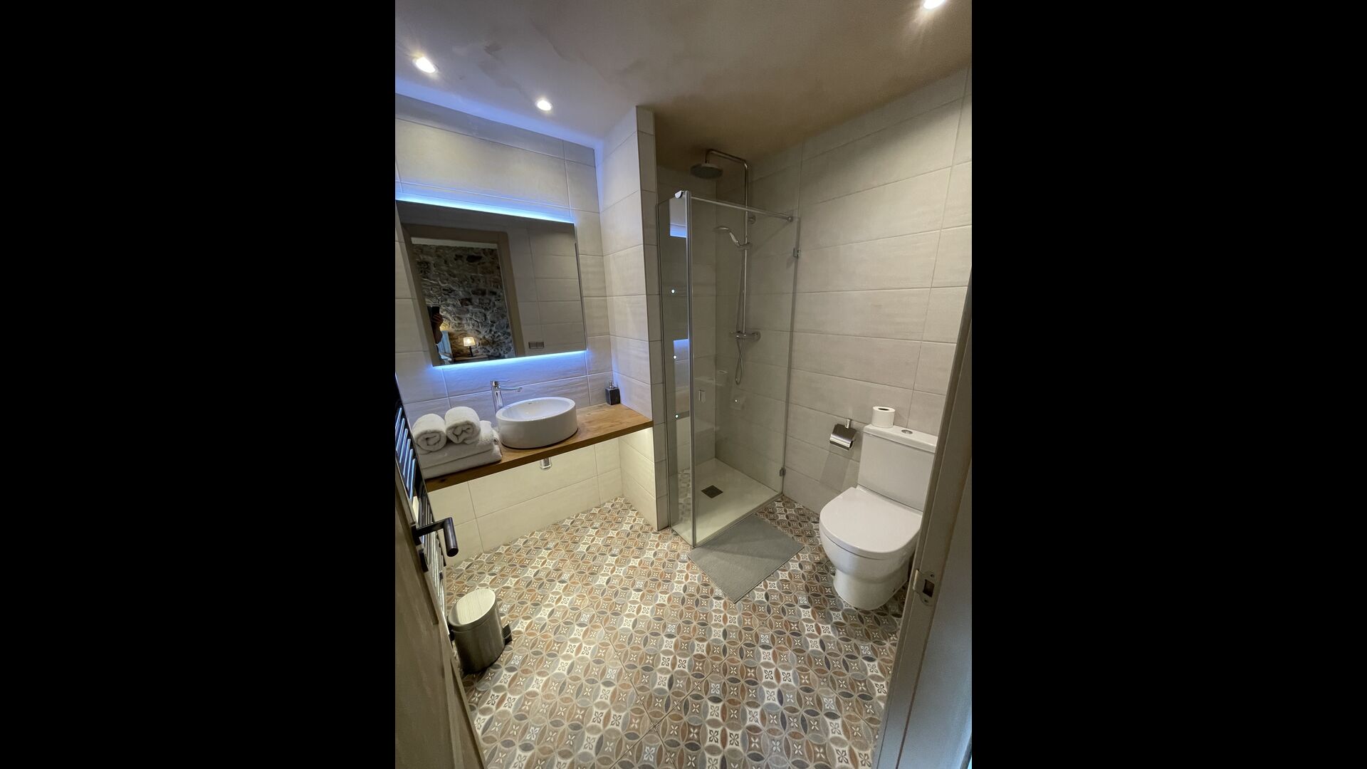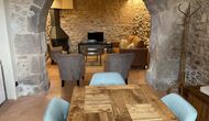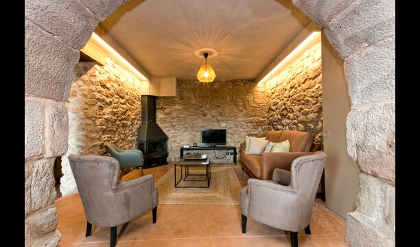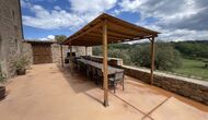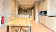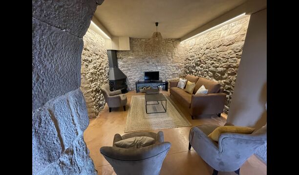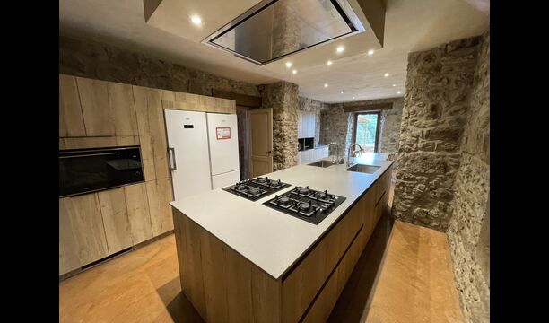 Desde la terraza exterior, con barbacoa, un espacio para comer y tumbonas para relajarse, entramos directamente a gran comedor del Mas. Este actúa como corazón de la casa, y conecta los dos pequeños salones de la planta baja con la gran cocina. Esta está perfectamente equipada con 2 placas de gas, 2 lavavajillas, 2 neveras con congelador, horno, microondas y cafetera, además de una pequeña mesa para desayunar.