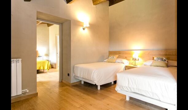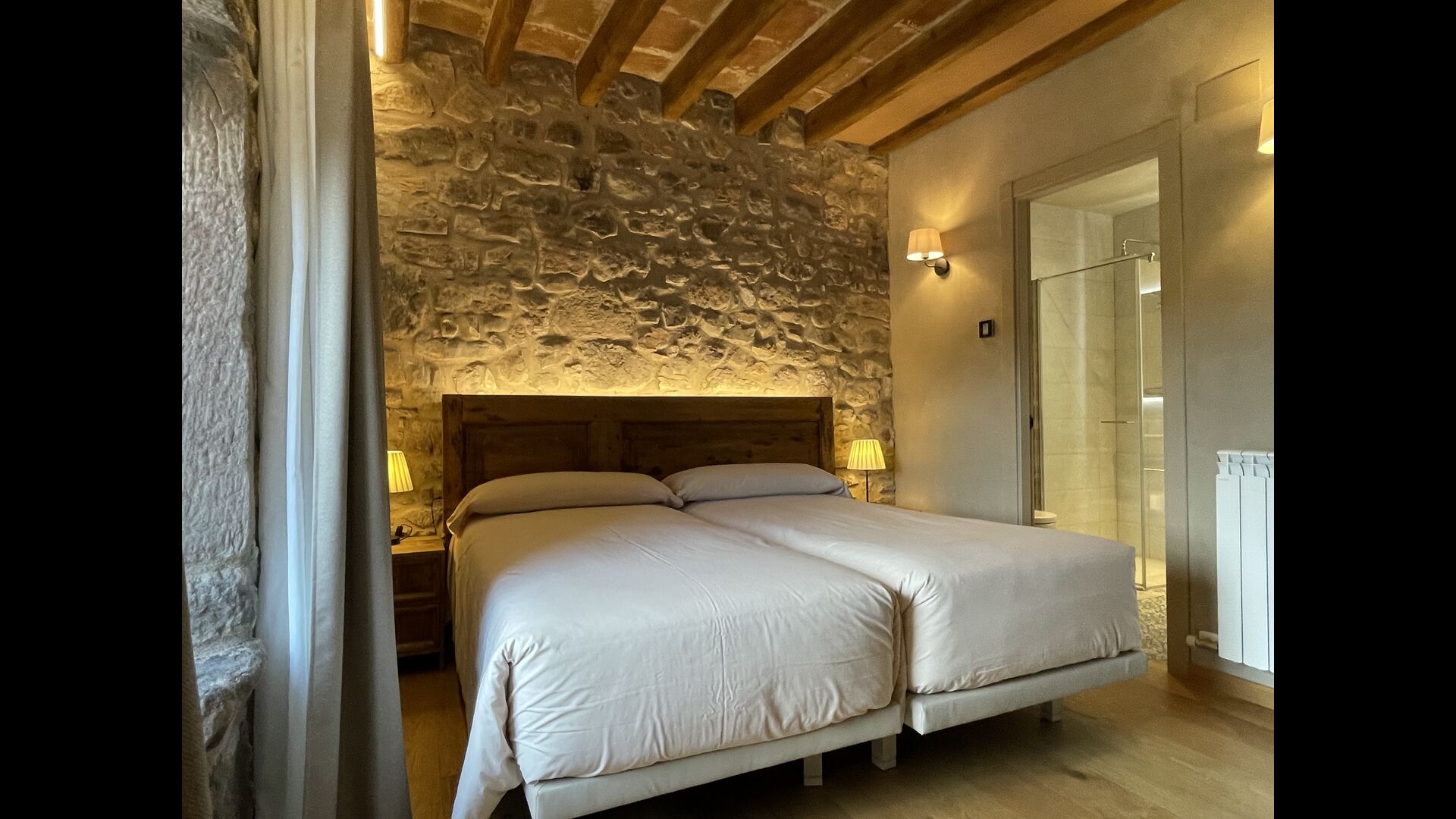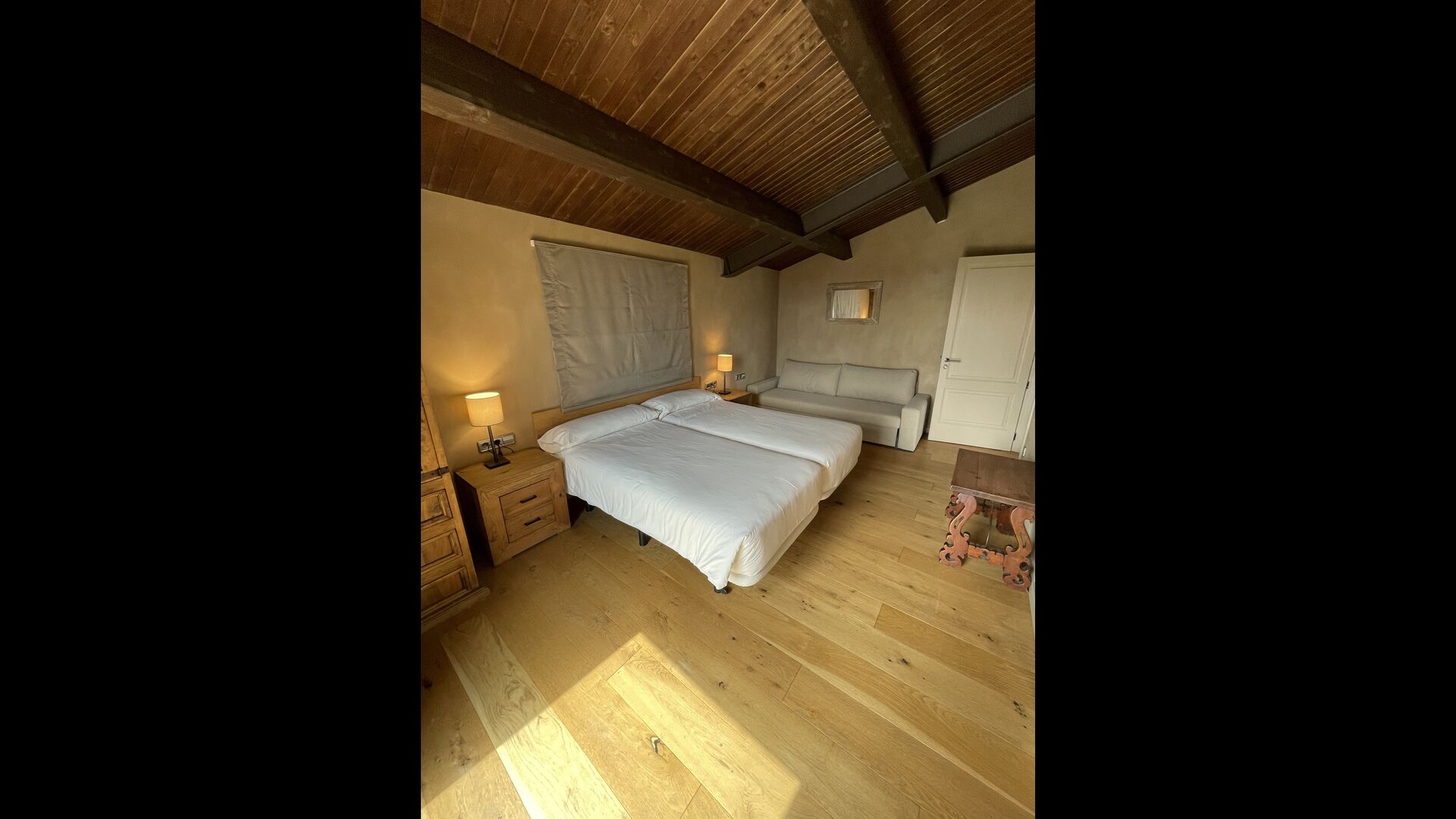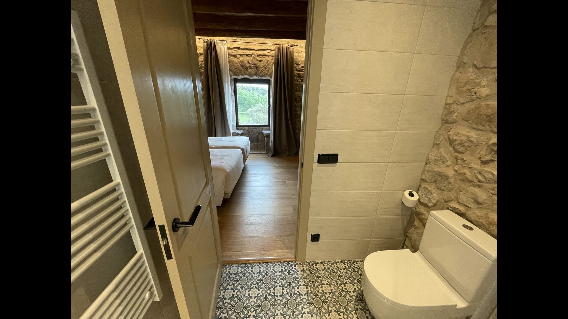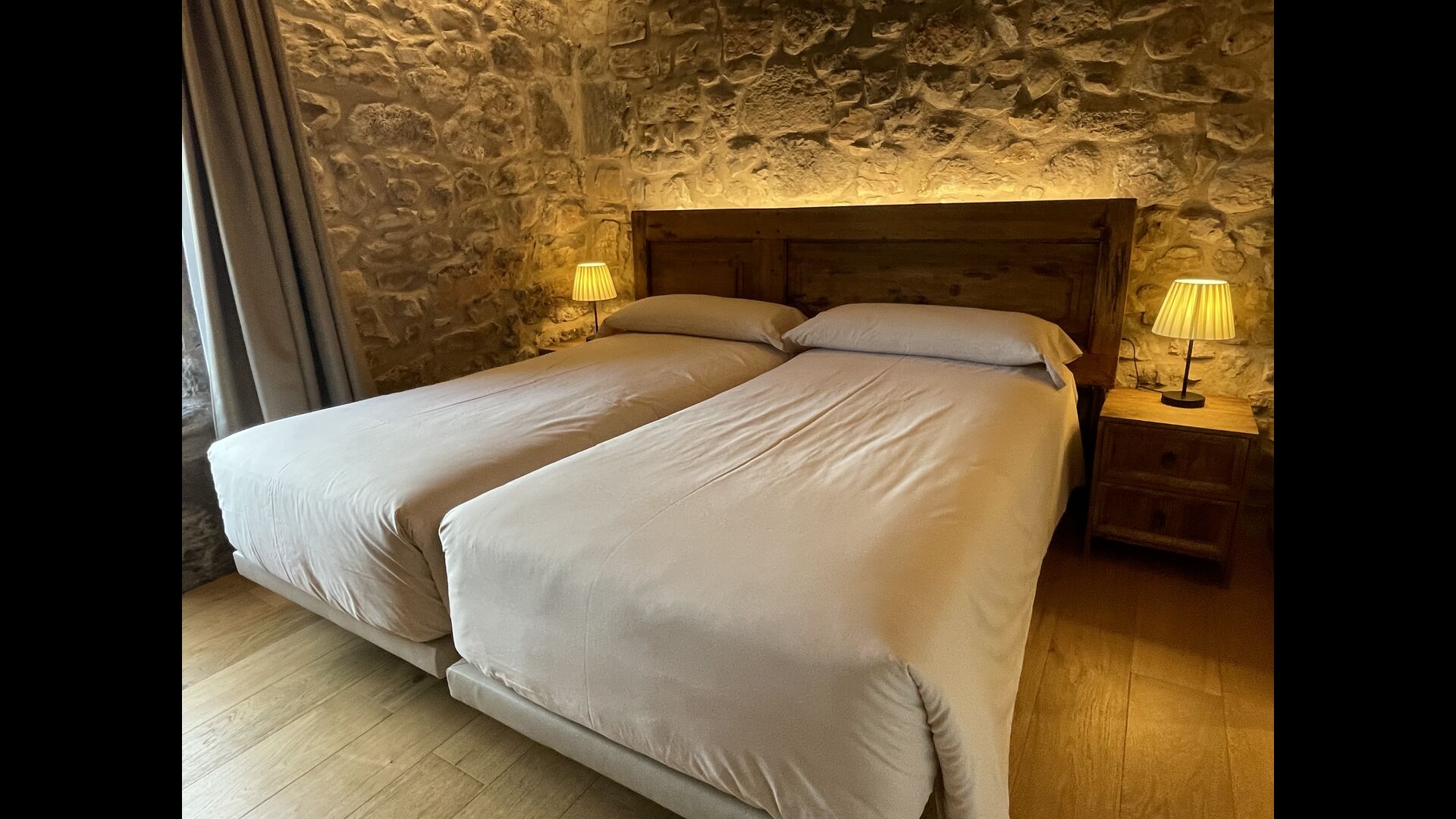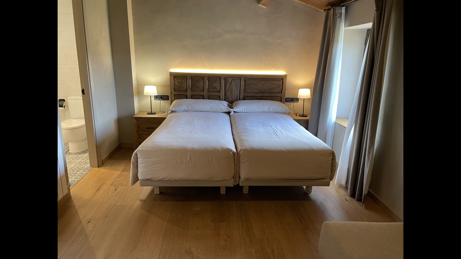 En la primera planta tenemos 6 habitaciones dobles, grandes y con vistas a la naturaleza, todas con baño privado. En la segunda planta encontramos 2 habitaciones dobles más, y 2 habitaciones cuádruples (con dos camas individuales y una cama de matrimonio, separadas por una puerta). Estas también tienen todas ventanas exteriores y baño completo privado.