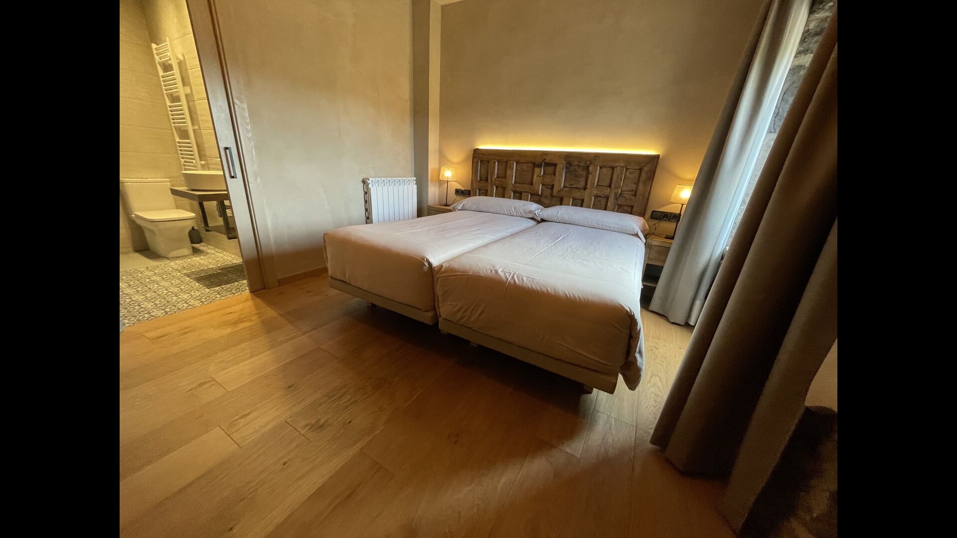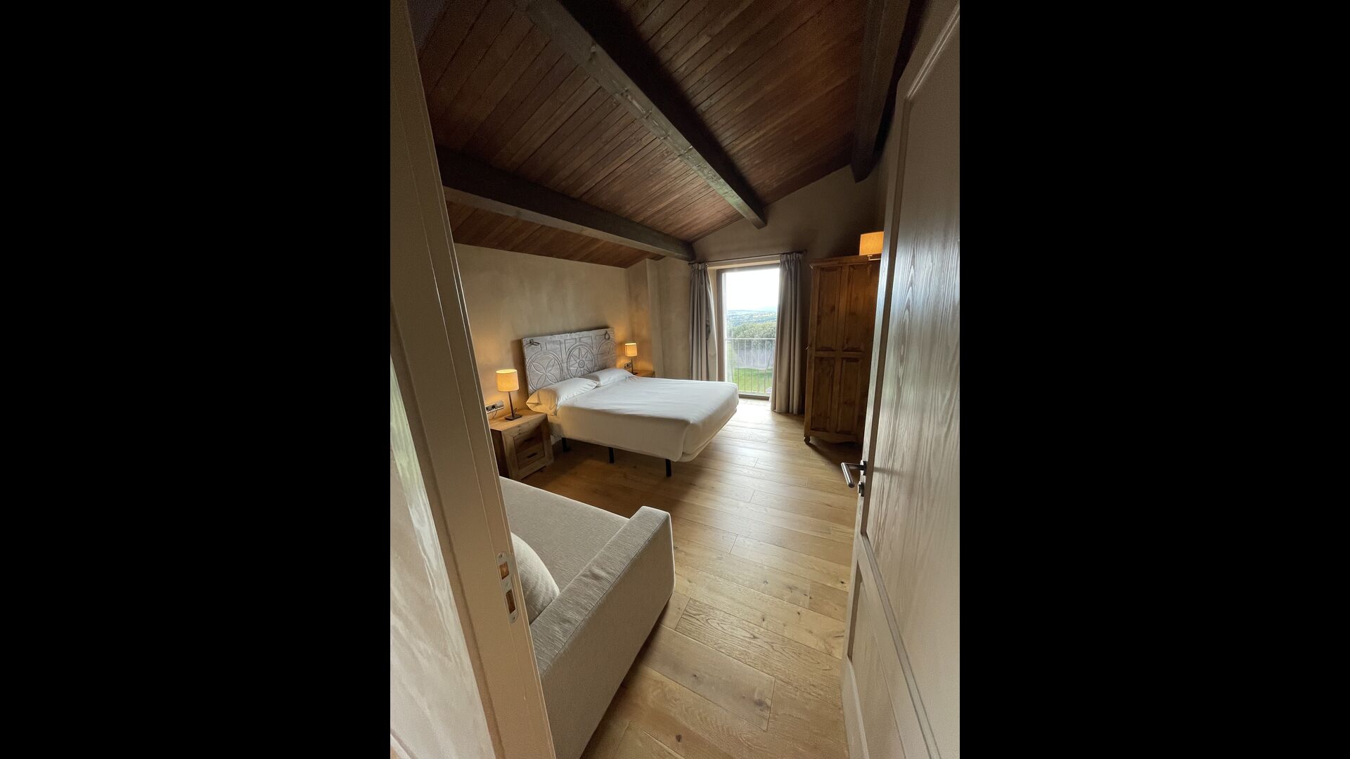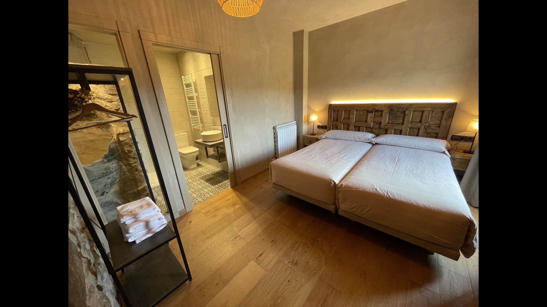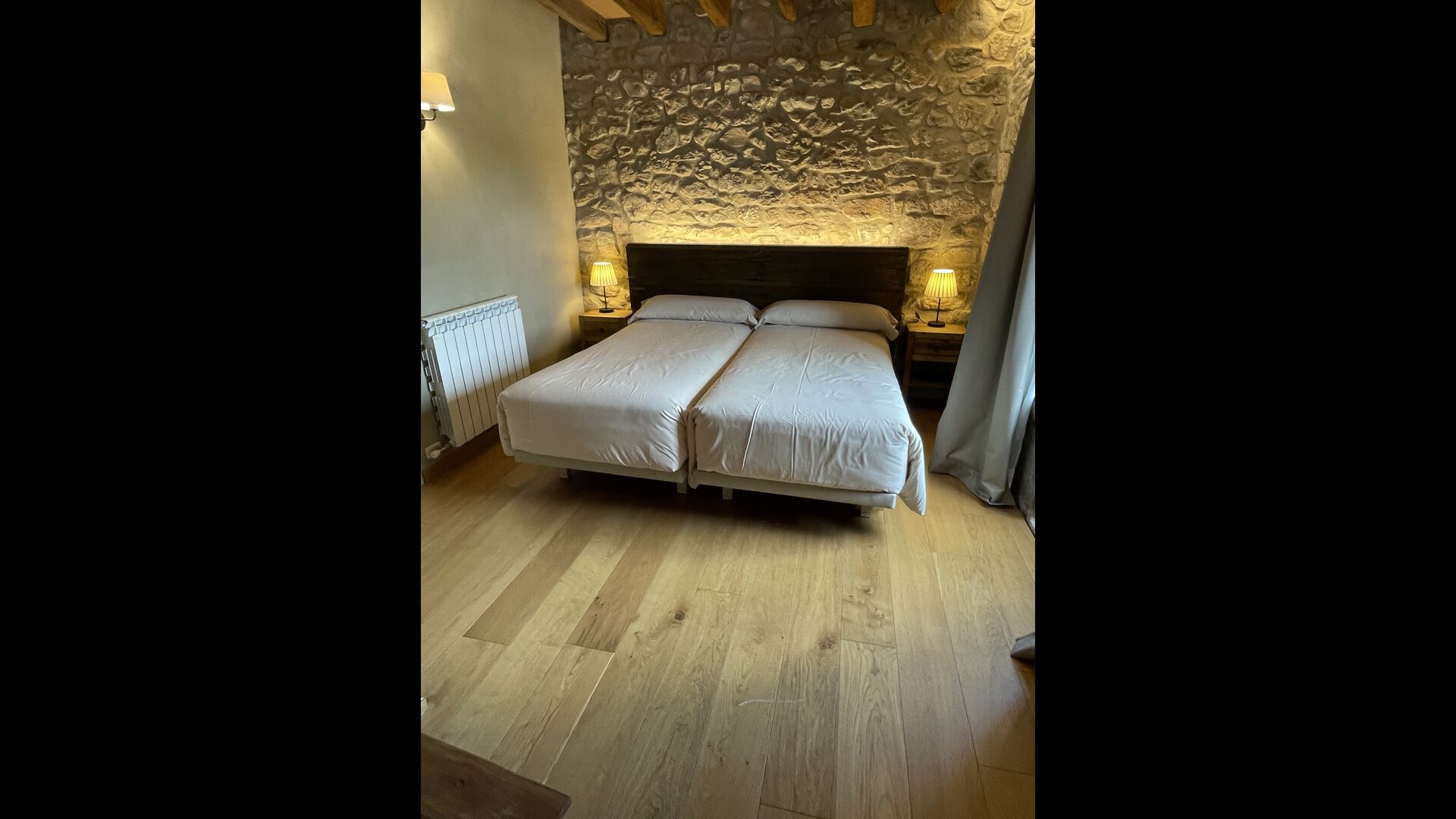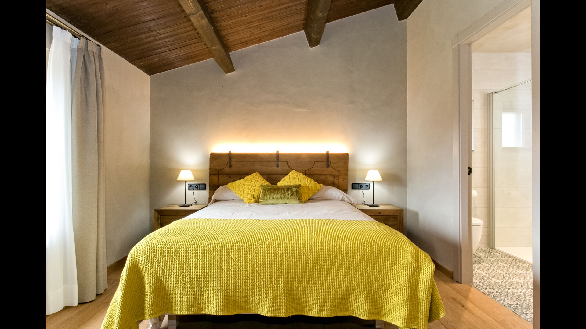 En la primera planta tenemos 6 habitaciones dobles, grandes y con vistas a la naturaleza, todas con baño privado. En la segunda planta encontramos 2 habitaciones dobles más, y 2 habitaciones cuádruples (con dos camas individuales y una cama de matrimonio, separadas por una puerta). Estas también tienen todas ventanas exteriores y baño completo privado.