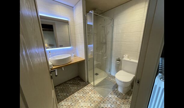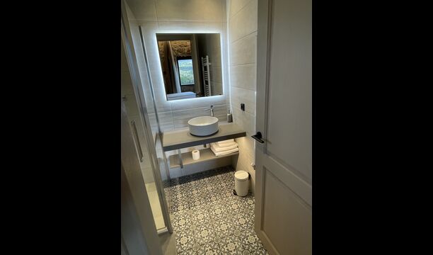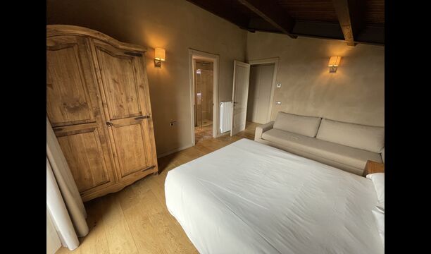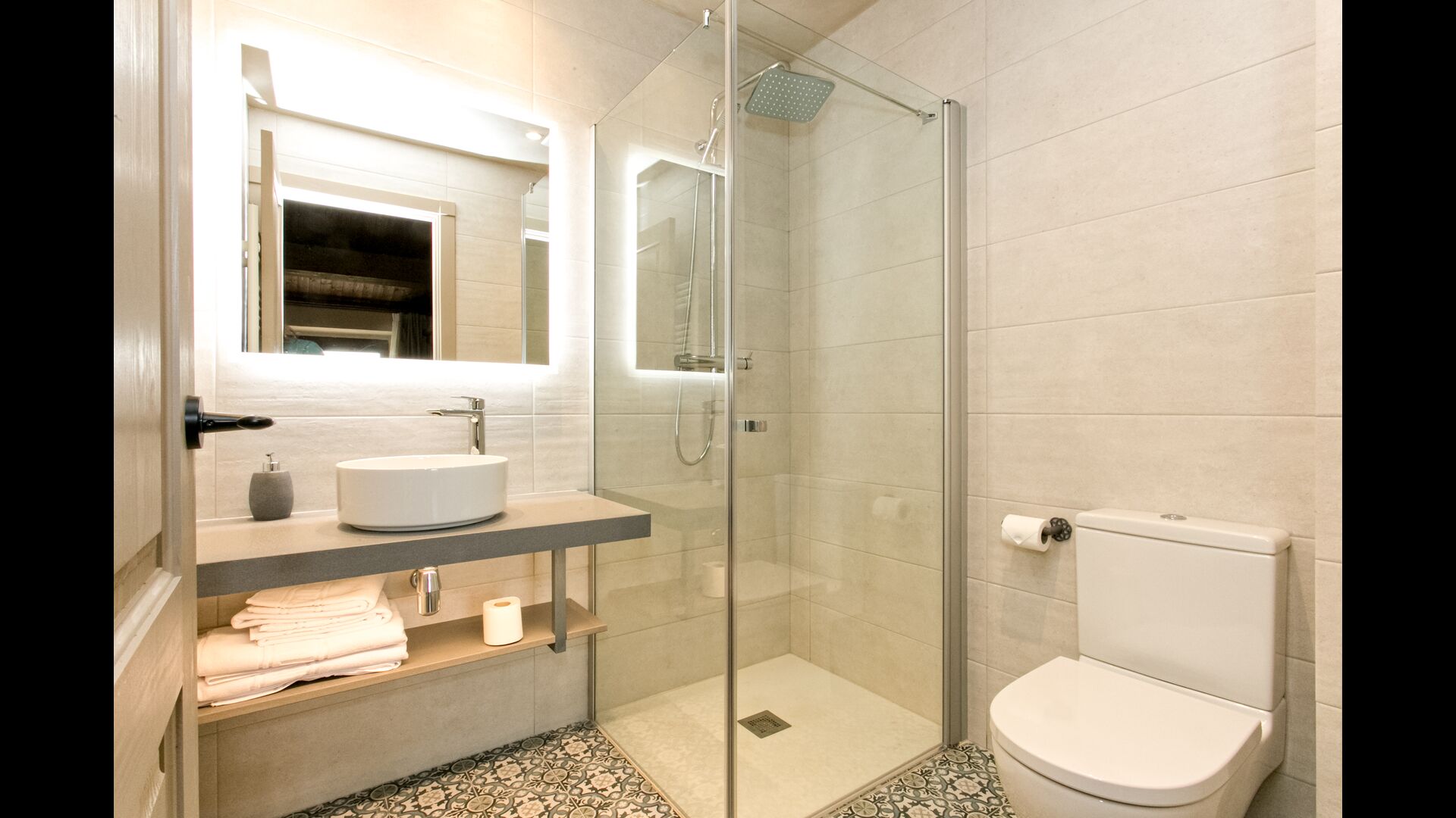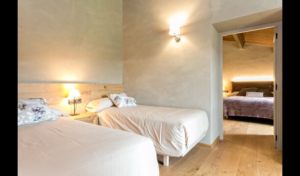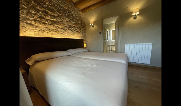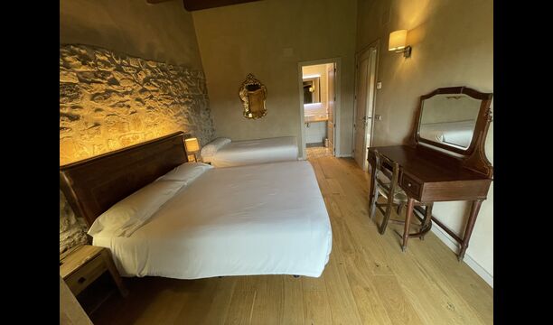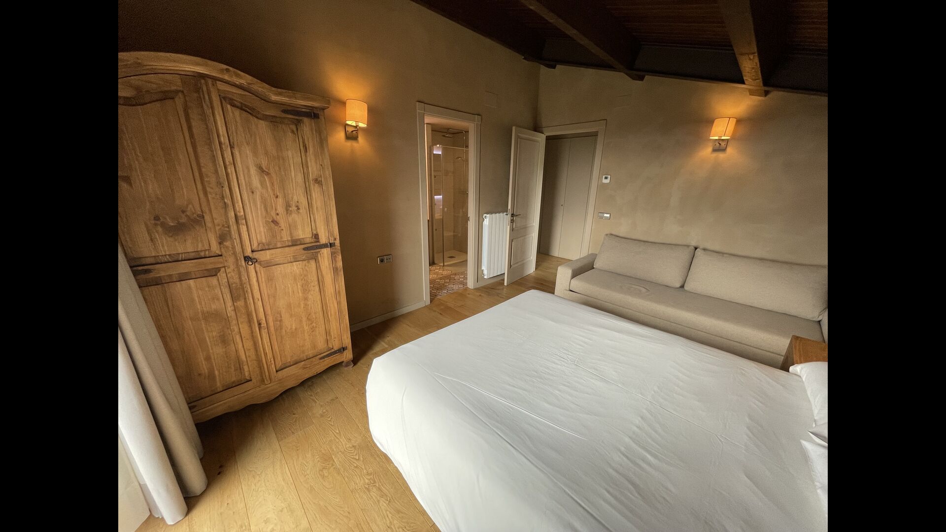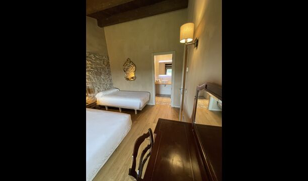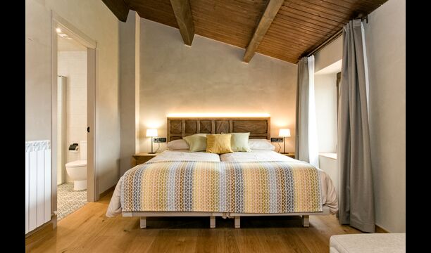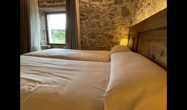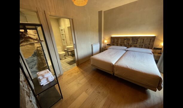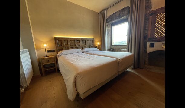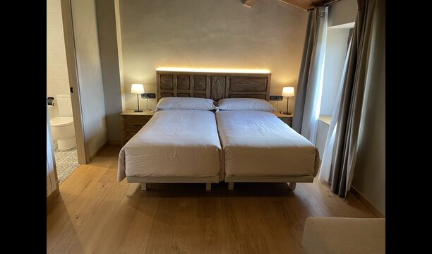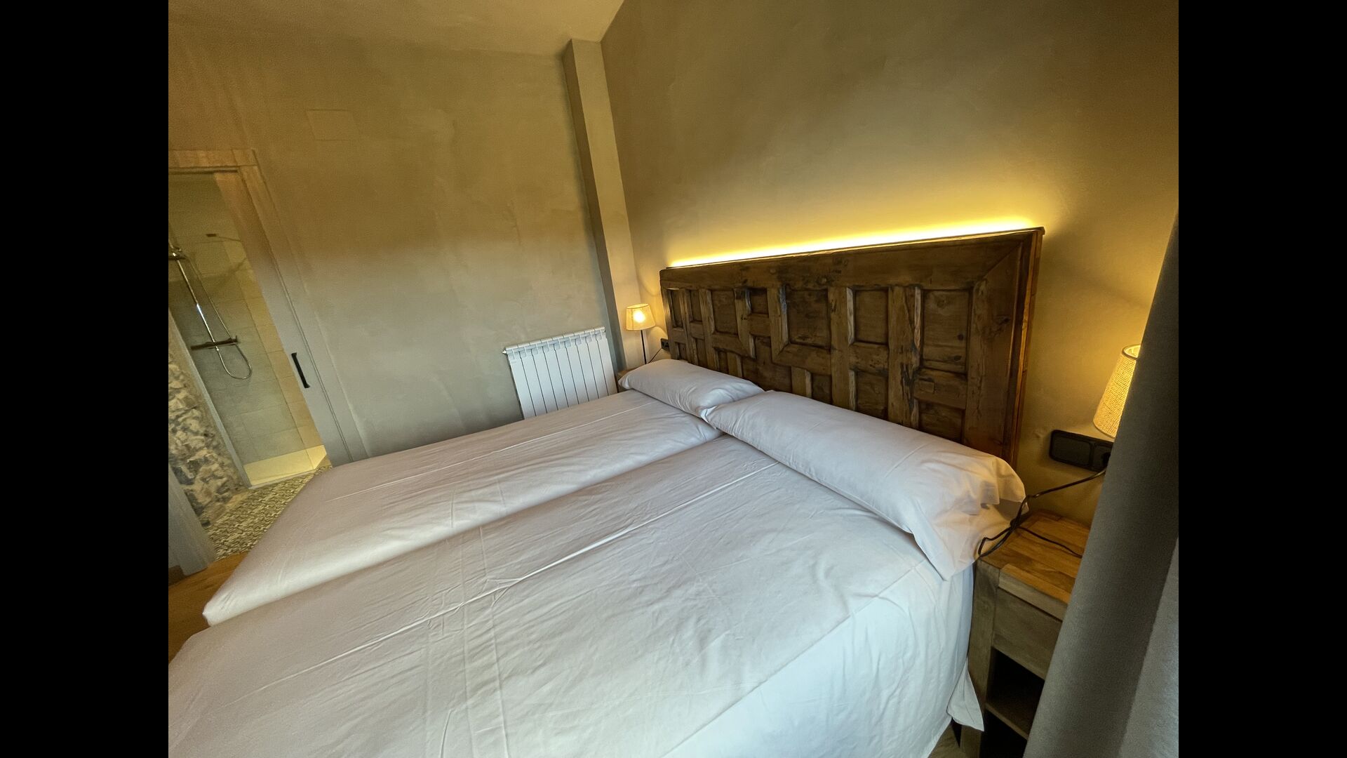 En la primera planta tenemos 6 habitaciones dobles, grandes y con vistas a la naturaleza, todas con baño privado. En la segunda planta encontramos 2 habitaciones dobles más, y 2 habitaciones cuádruples (con dos camas individuales y una cama de matrimonio, separadas por una puerta). Estas también tienen todas ventanas exteriores y baño completo privado.