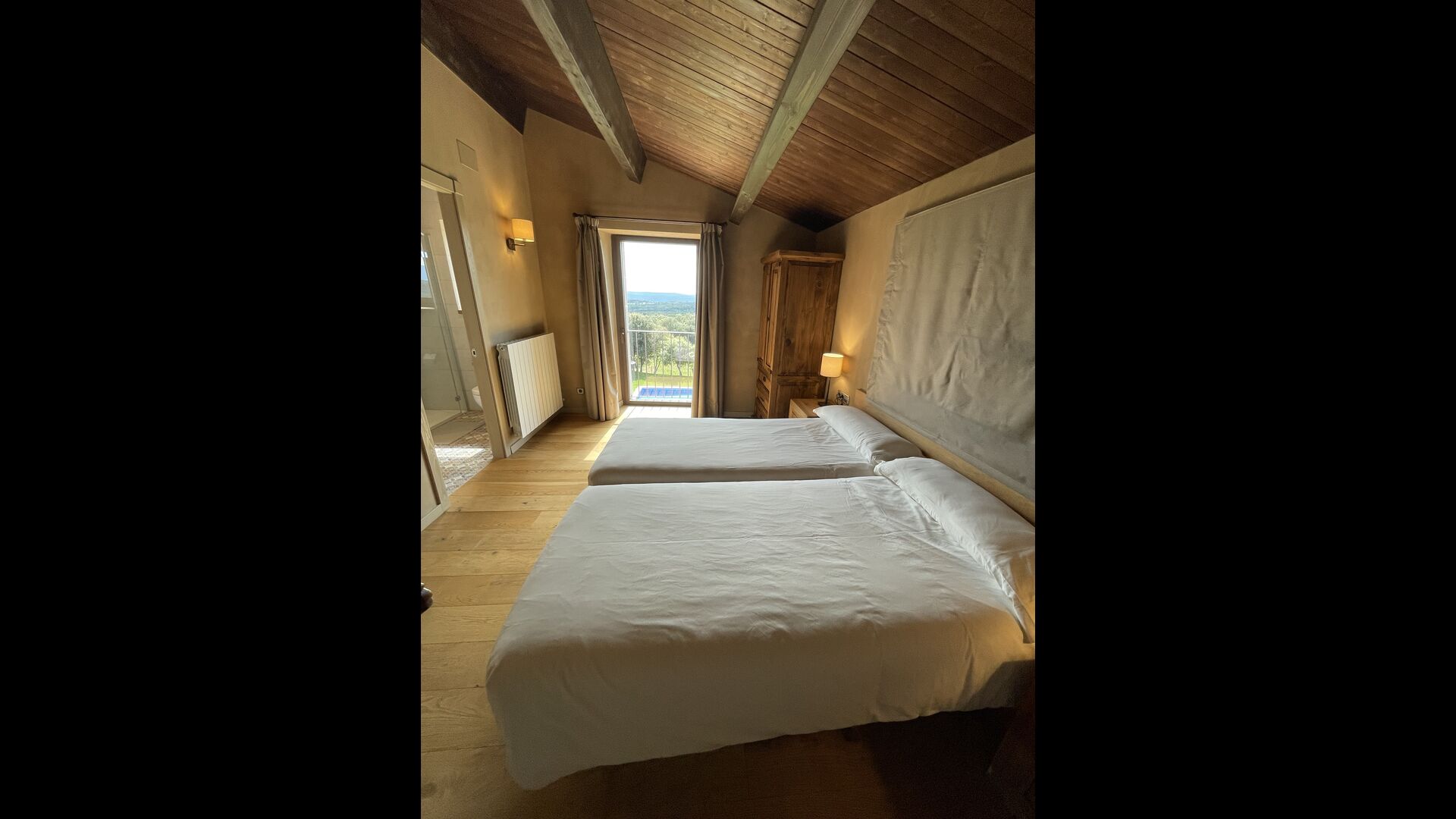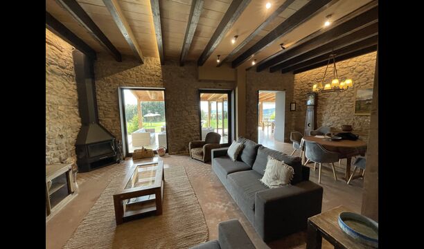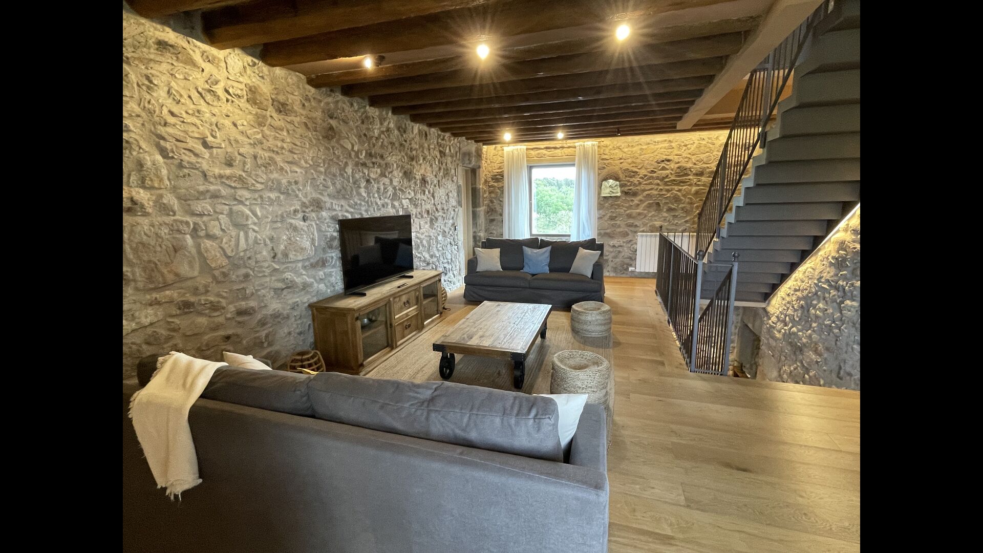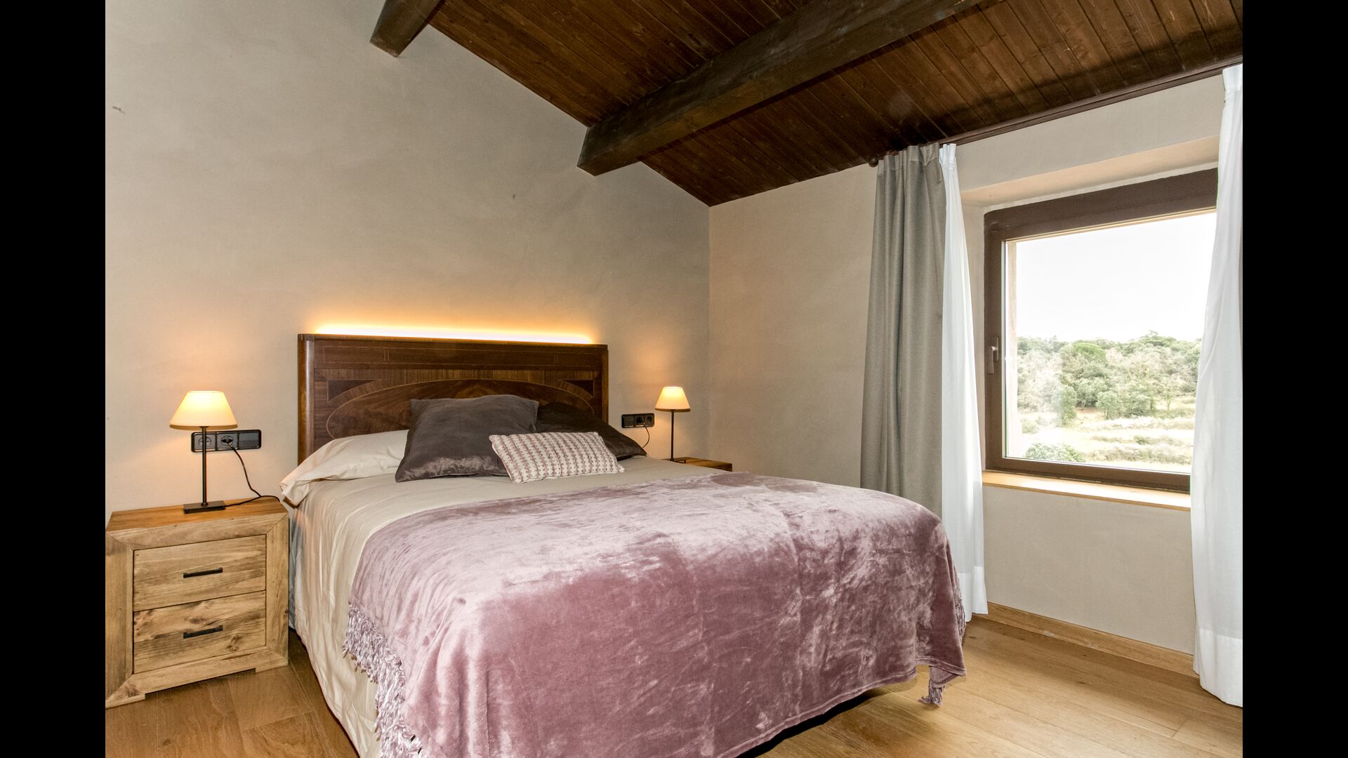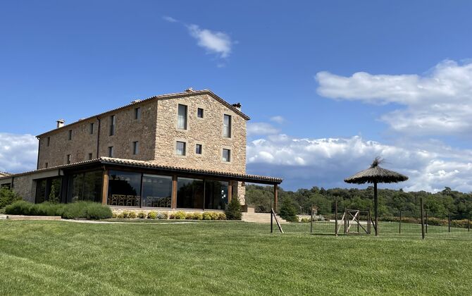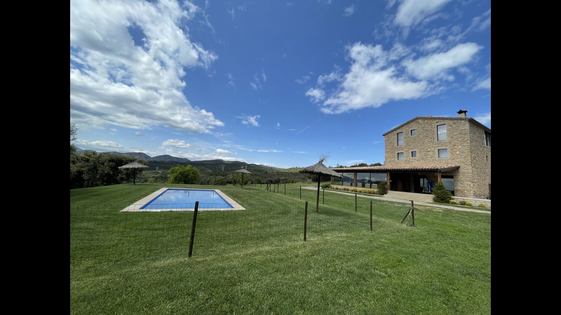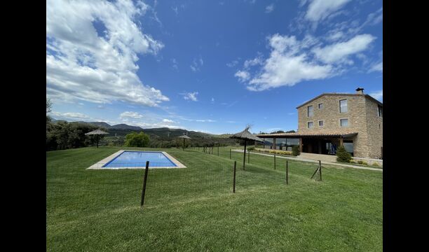 Una espectacular casa pensada para grupos grandes que quieren disfrutar de unas vacaciones lujosas, llena de detalles de la construcción original, enmarcados en muebles de madera y tejidos cálidos. Tiene unas estupendas vistas sobre las montañas del Pre pirineo. Está situada a 1 hora de Barcelona y a 1 hora de Girona. En la finca de 185 Ha, se alquilan 2 casas próximas, totalmente separadas e independientes. Cada una con su terraza y terreno adyacente. La piscina, campo de futbol y voleibol se comparten por las 3 casas.
