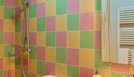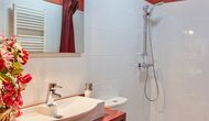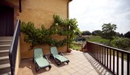 La parte más grande con 5 dormitorios está situada en el primer piso de la casa principal. Tiene capacidad para 12 personas, distribuidas en 3 habitaciones dobles (2 con camas dobles) y 2 habitaciones triples. Cuatro de las habitaciones tienen baño privado y la quinta habitación también tiene un baño, pero no baño privado. También hay cocina y sala común con TV y DVD.