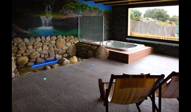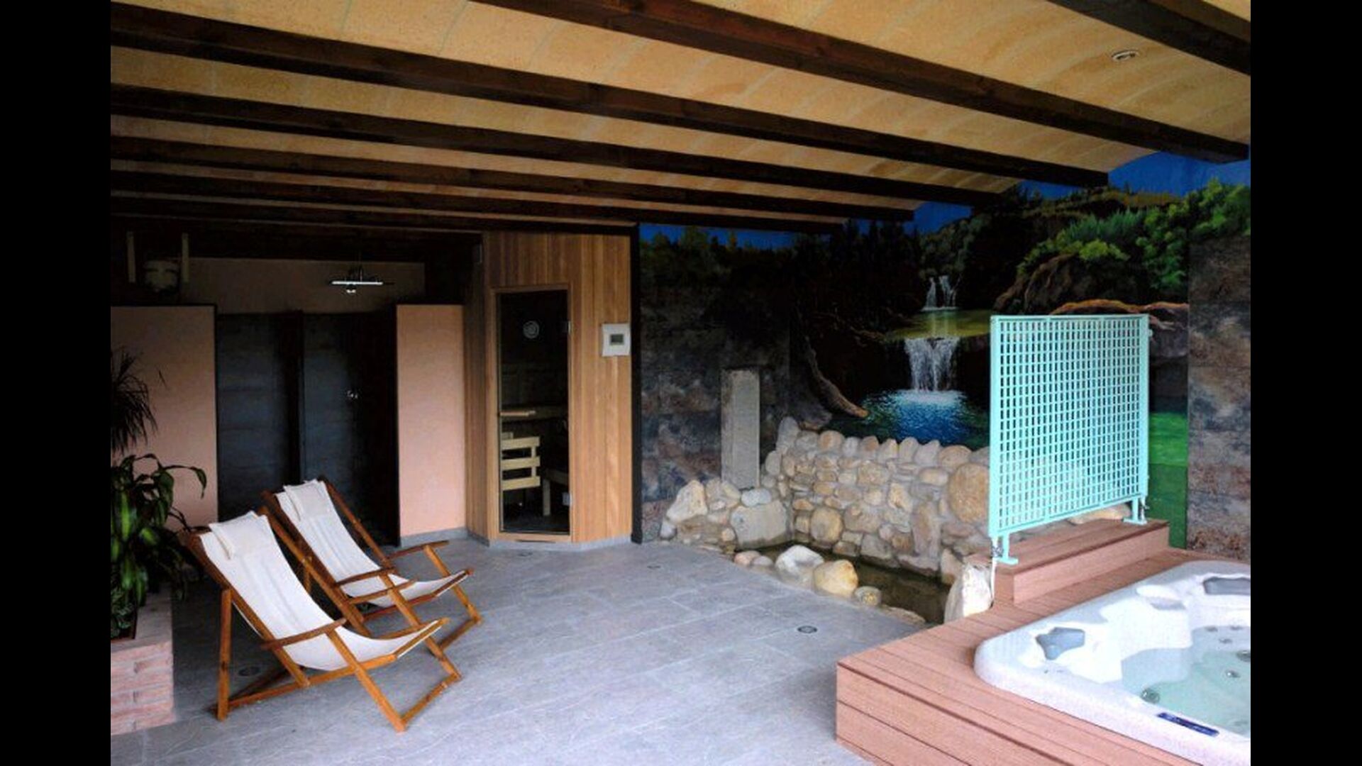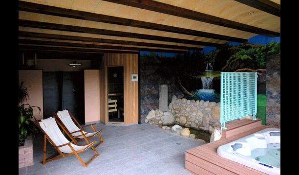 Con suplemento pero se puede disfrutar de la zona de bienestar con spa y sauna, con vistas sobre el paisaje a través de la ventana panorámica. Donde hay un "camino de sensaciones con piedras". Es un río de agua fría, donde las piedras redondas del fondo masajean tus pies mientras caminas. En el otro extremo de la habitación, hay una ducha de agua tibia efecto lluvia y como ducha de agua fría antes de entrar a la sauna un cubo de agua fría. (2019-precio: 3 horas de acceso: 100 euros).
