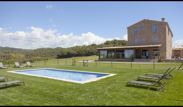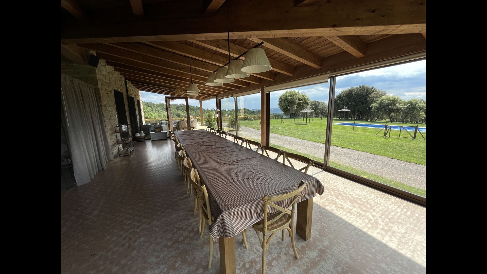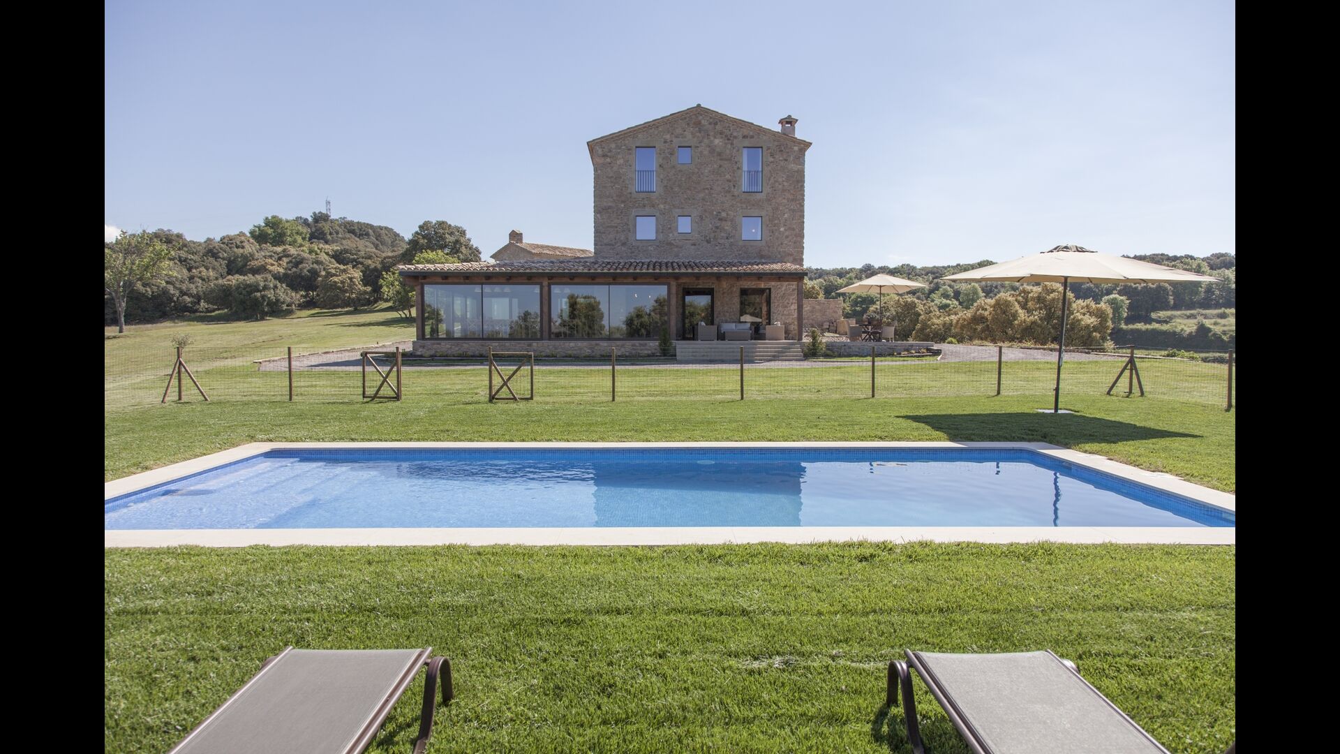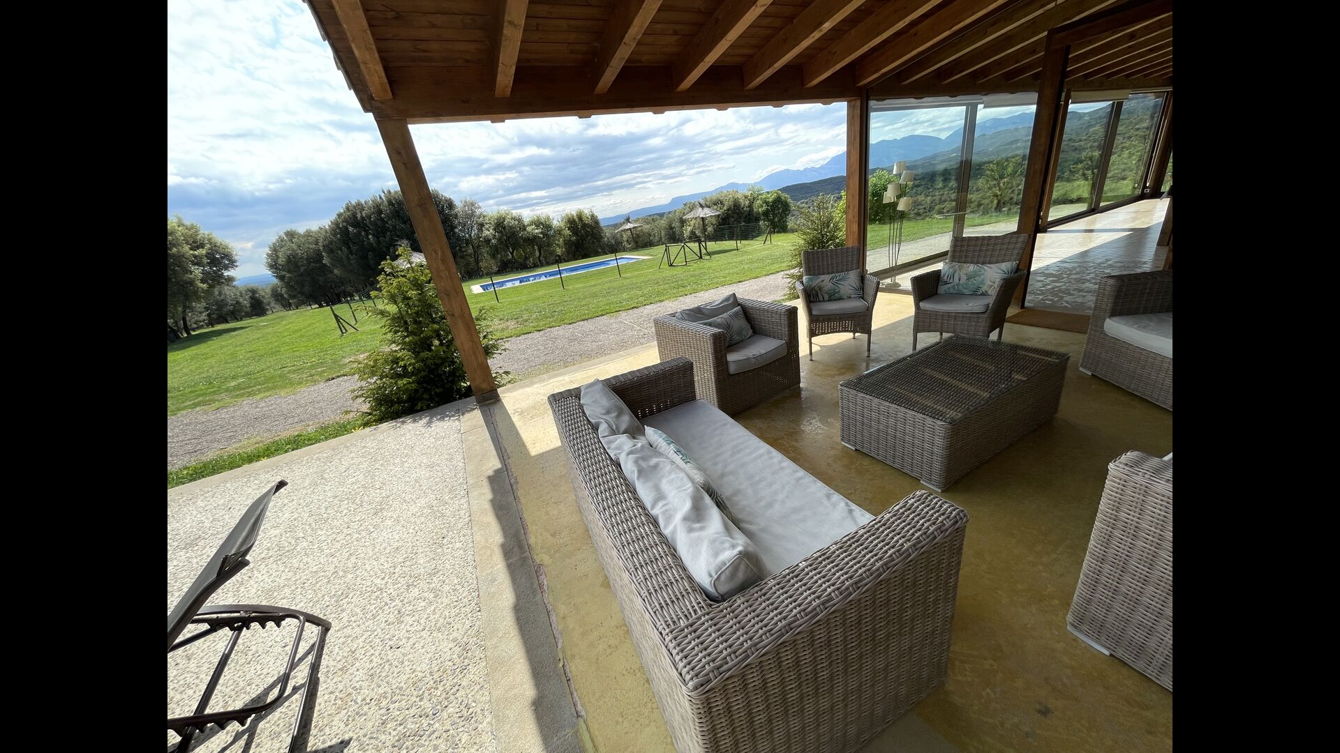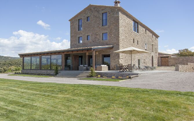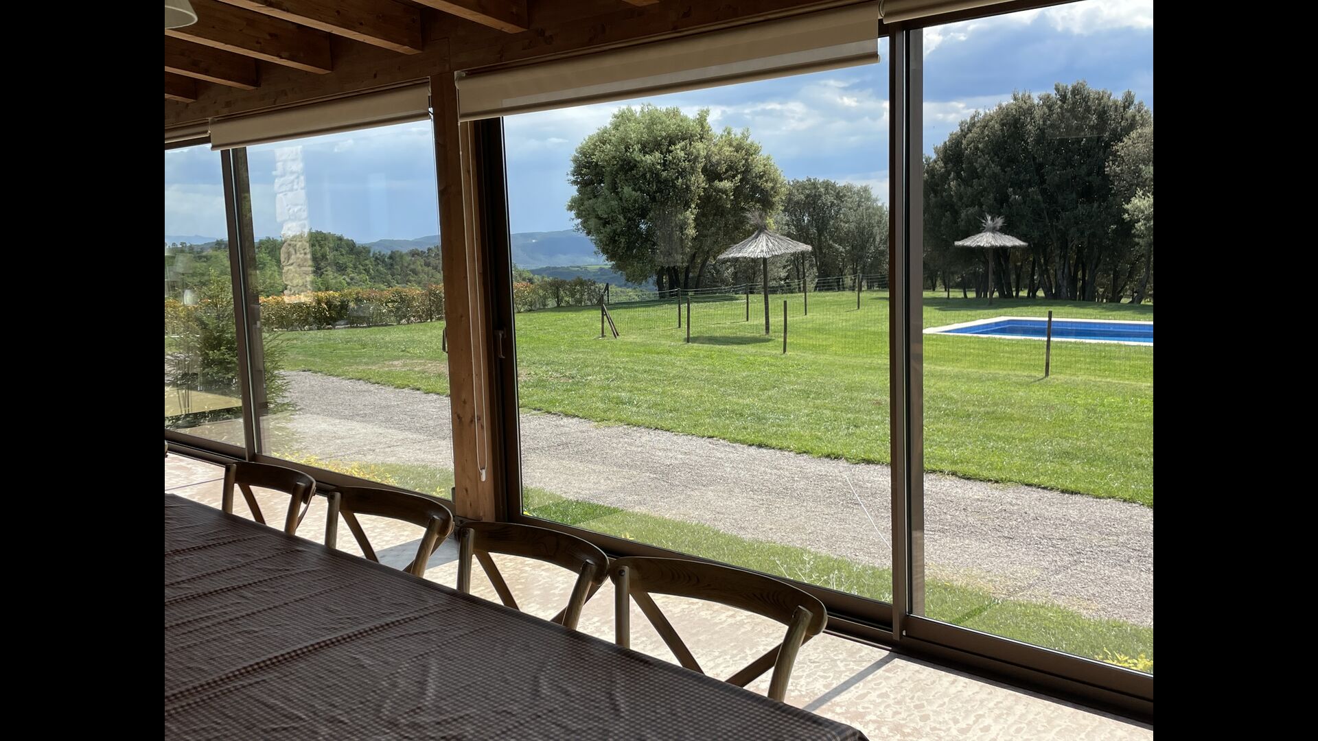 Fantástica casa acabada de restaurar con materiales naturales y de primera calidad. Tiene unas estupendas vistas sobre las montañas del Pre pirineo. Está situada a 1 hora de Barcelona y a 1 hora de Girona. En la finca de 185 Ha, se alquilan 2 casas próximas , totalmente separadas e independientes. Cada una con su terraza y terreno adyacente. La piscina , campo de futbol y voleibol se comparten por las 2 casas.