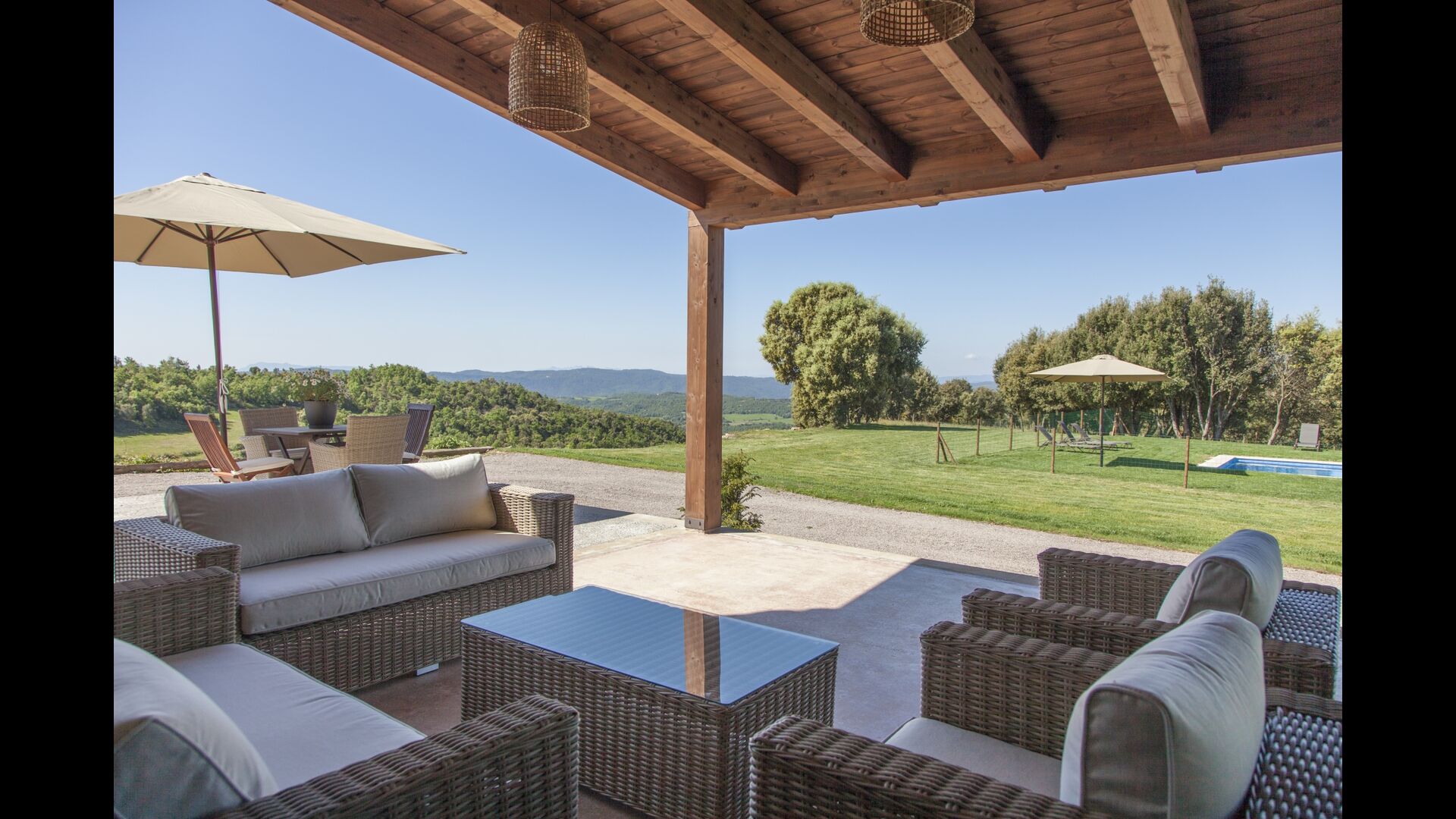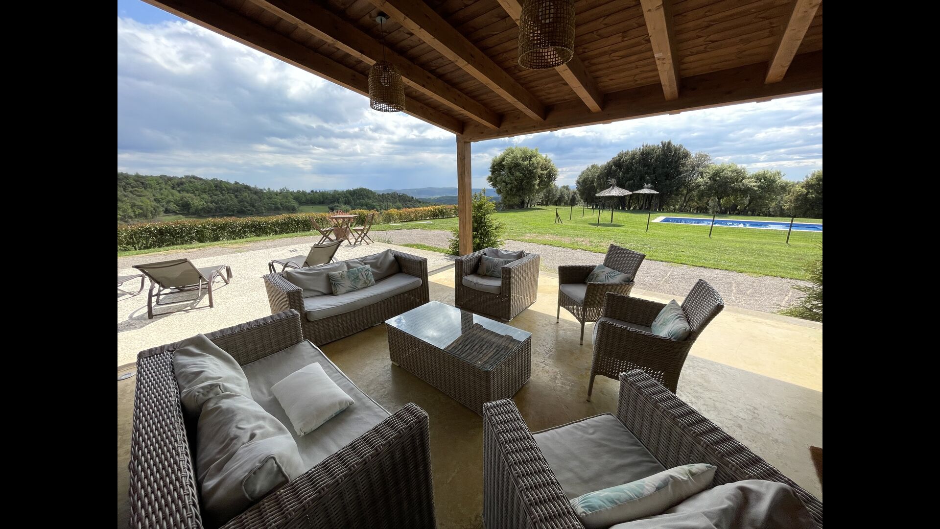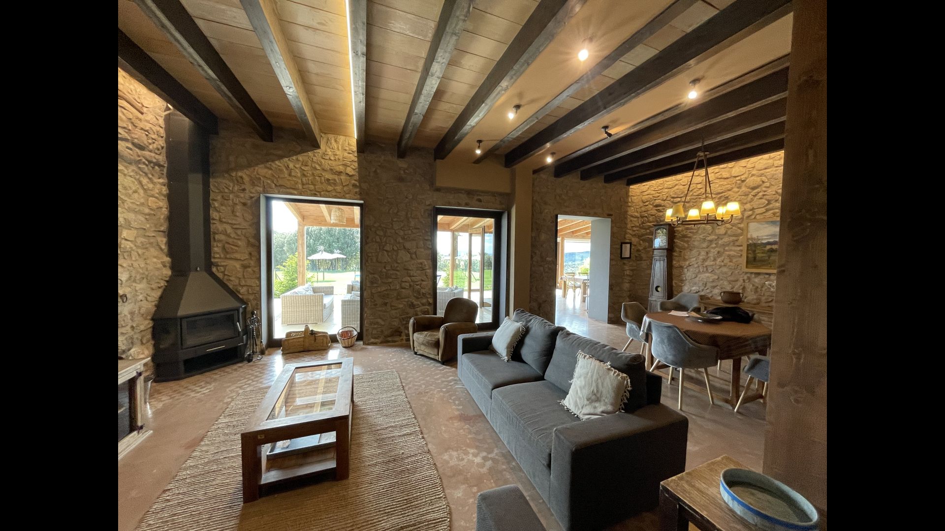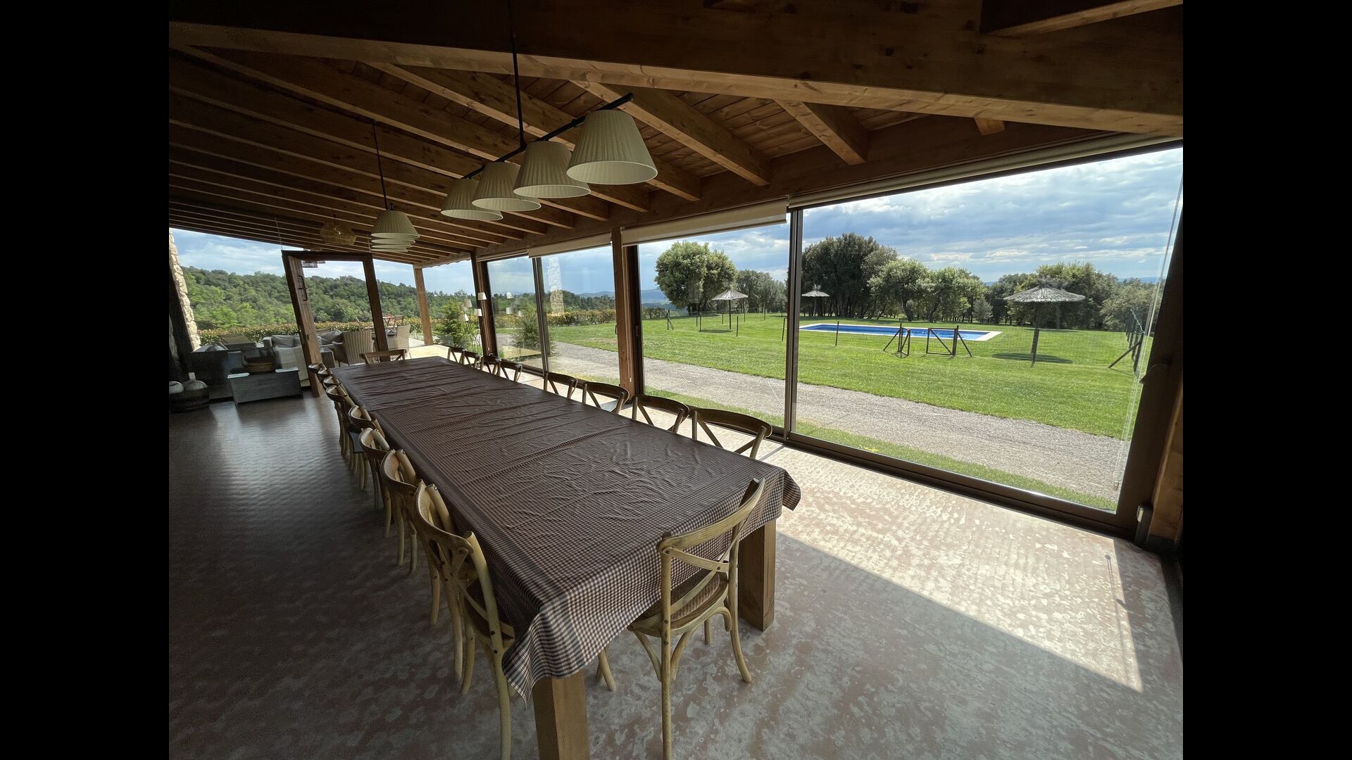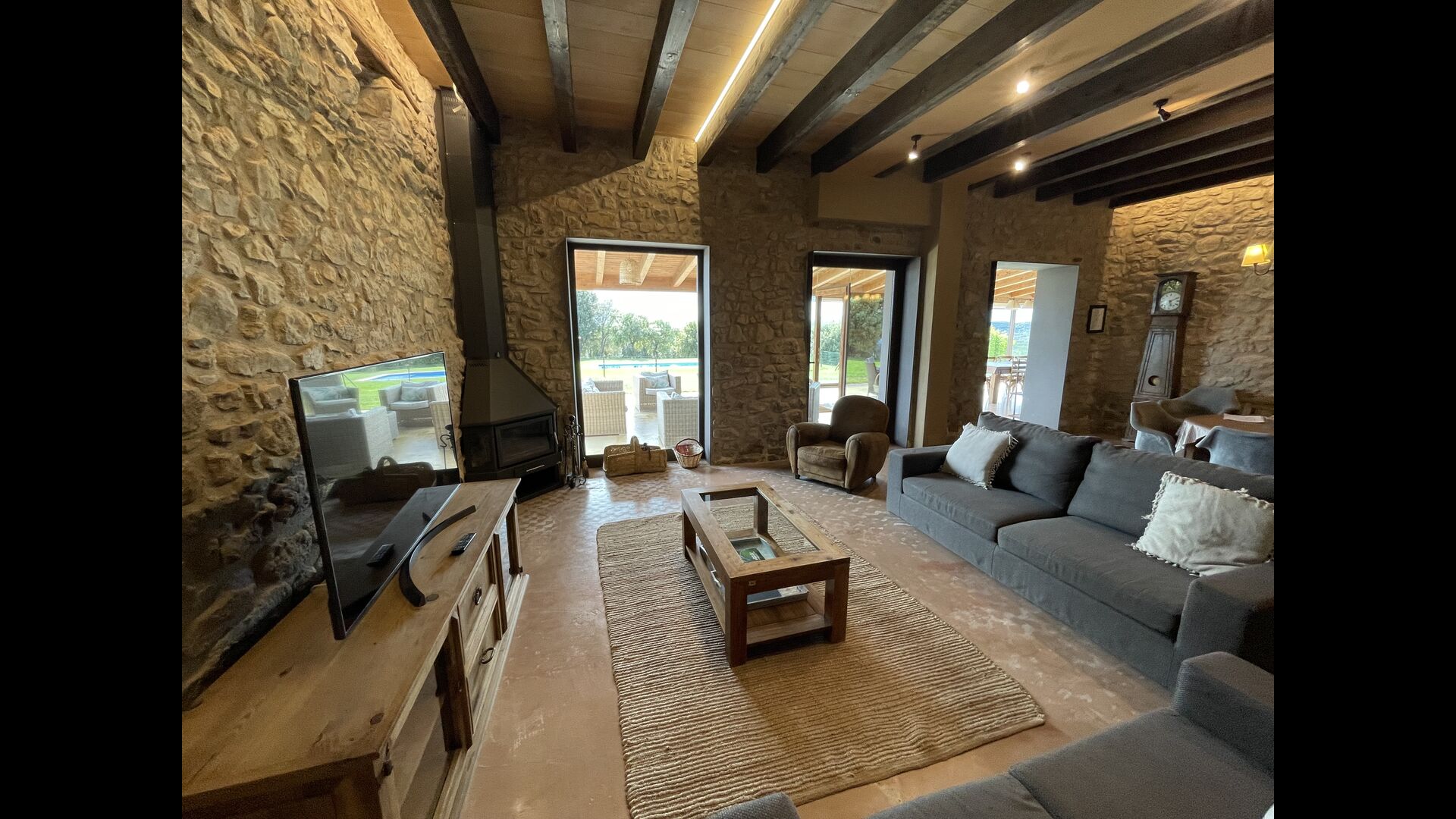 Fantástica casa acabada de restaurar con materiales naturales y de primera calidad. Tiene unas estupendas vistas sobre las montañas del Pre pirineo. Está situada a 1 hora de Barcelona y a 1 hora de Girona. En la finca de 185 Ha, se alquilan 2 casas próximas , totalmente separadas e independientes. Cada una con su terraza y terreno adyacente. La piscina , campo de futbol y voleibol se comparten por las 2 casas.