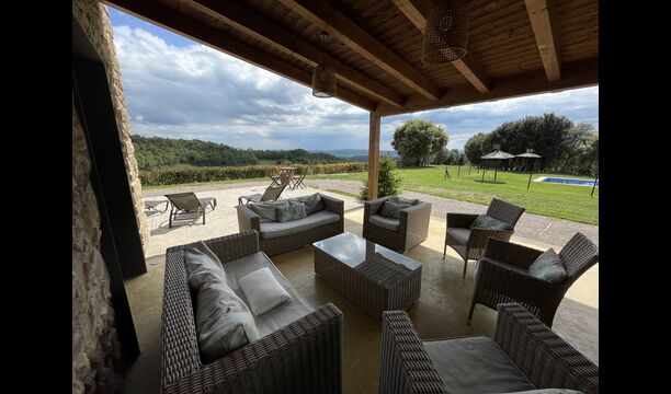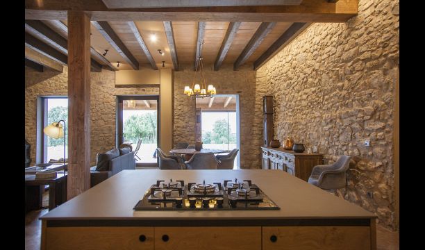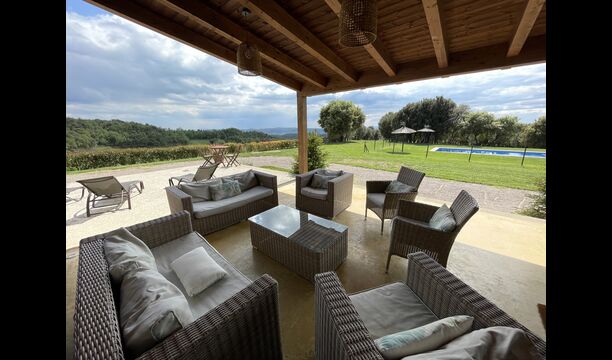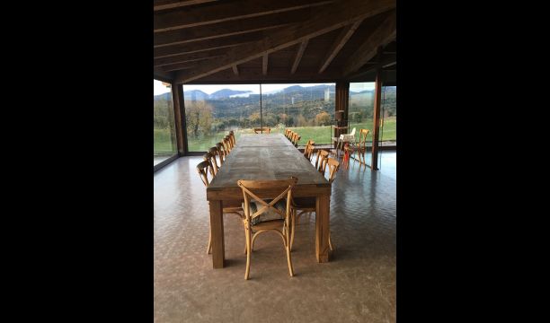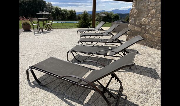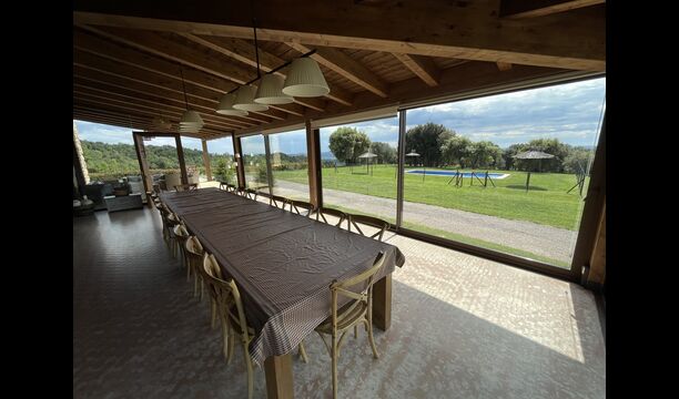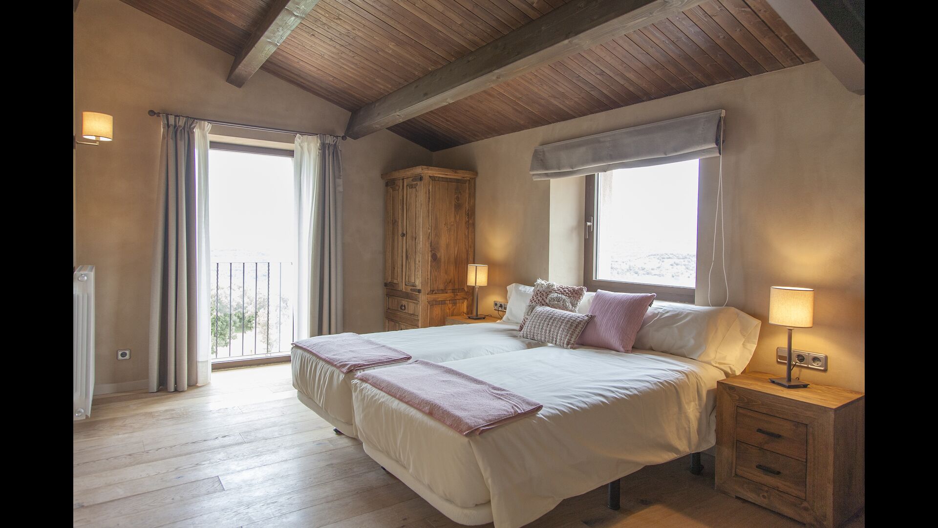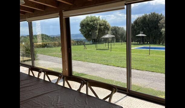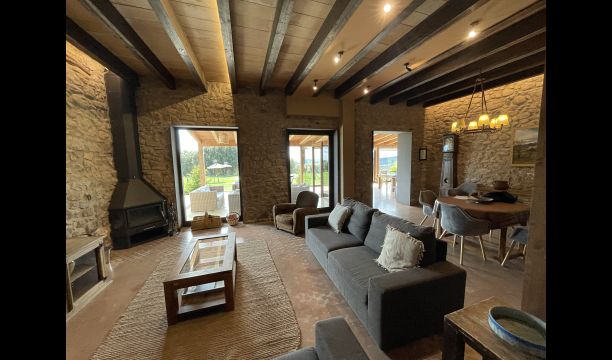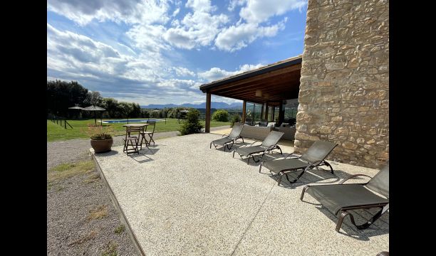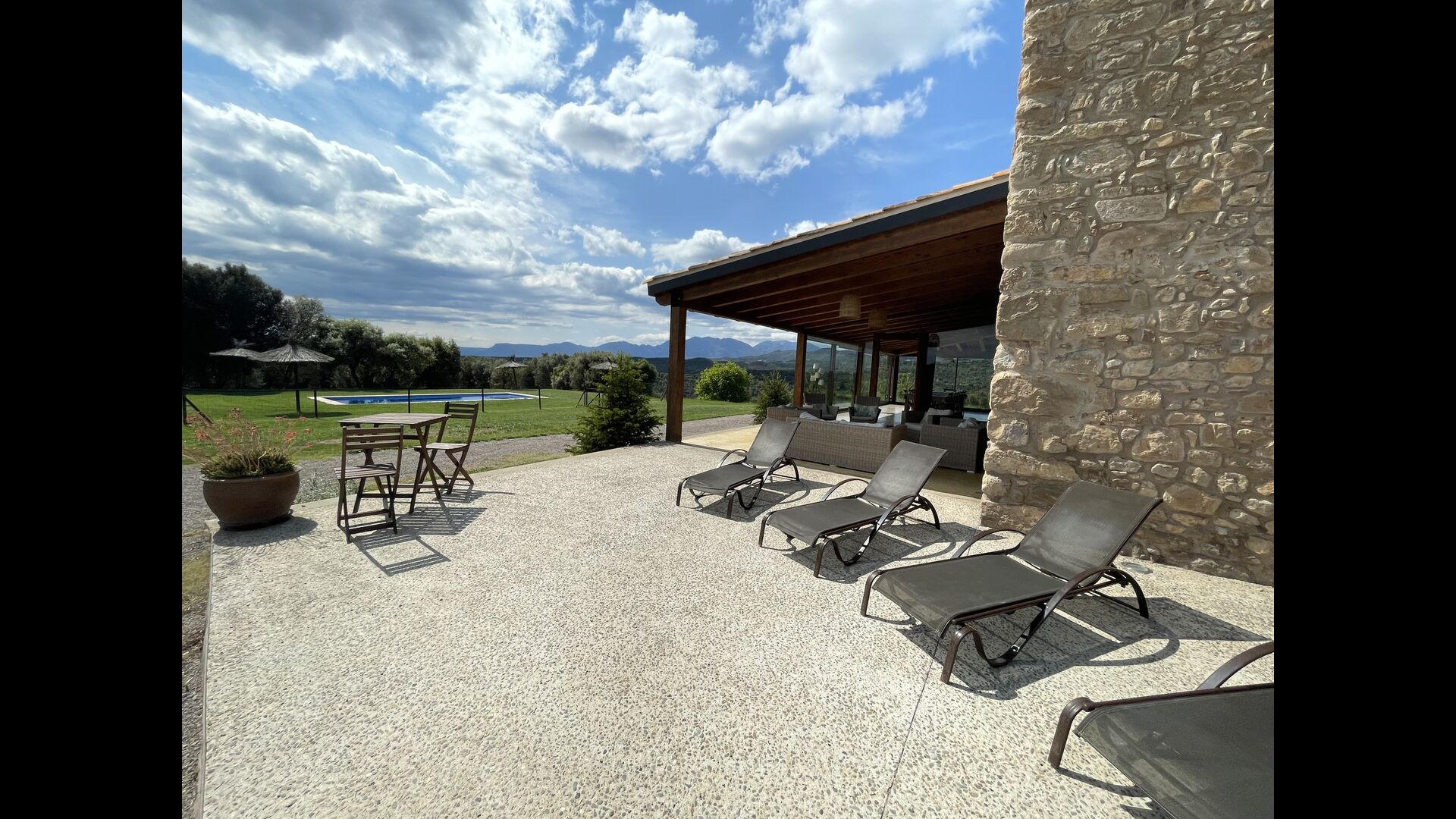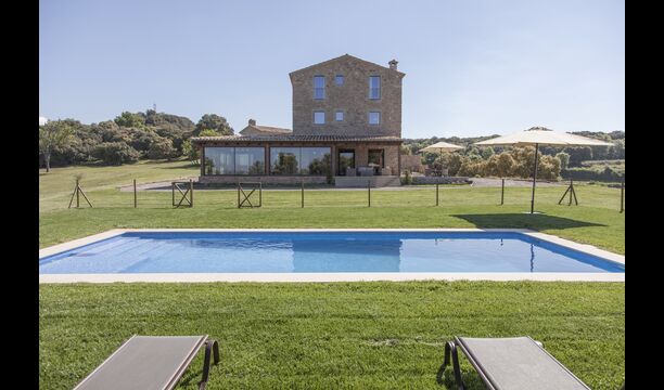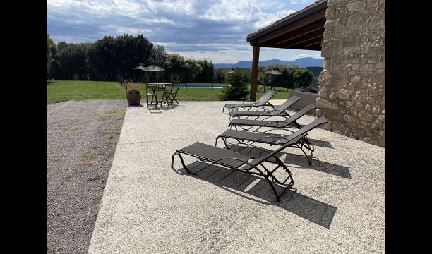 Fantástica casa acabada de restaurar con materiales naturales y de primera calidad. Tiene unas estupendas vistas sobre las montañas del Pre pirineo. Está situada a 1 hora de Barcelona y a 1 hora de Girona. En la finca de 185 Ha, se alquilan 2 casas próximas , totalmente separadas e independientes. Cada una con su terraza y terreno adyacente. La piscina , campo de futbol y voleibol se comparten por las 2 casas.