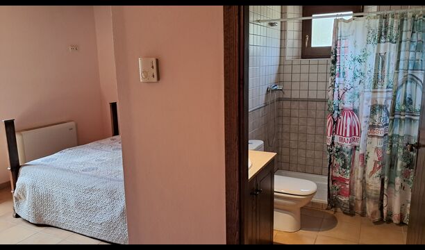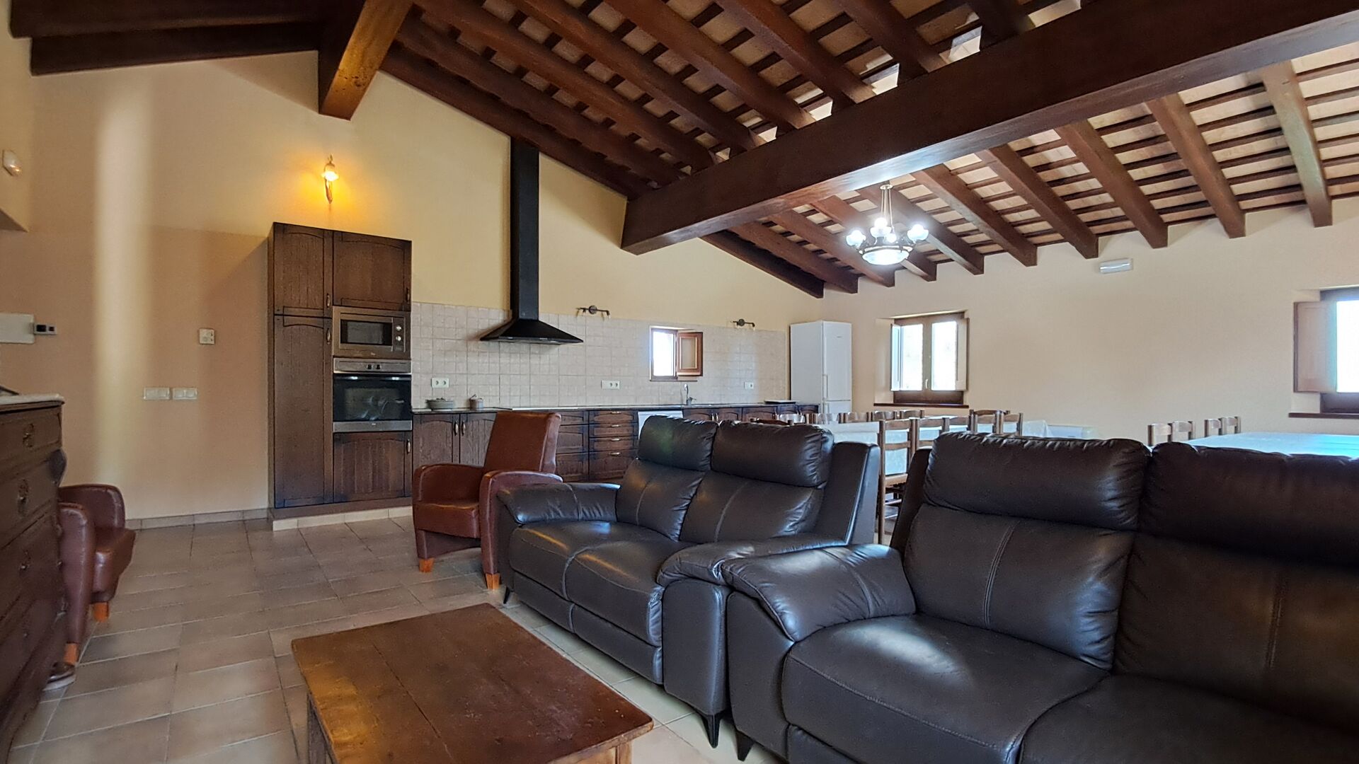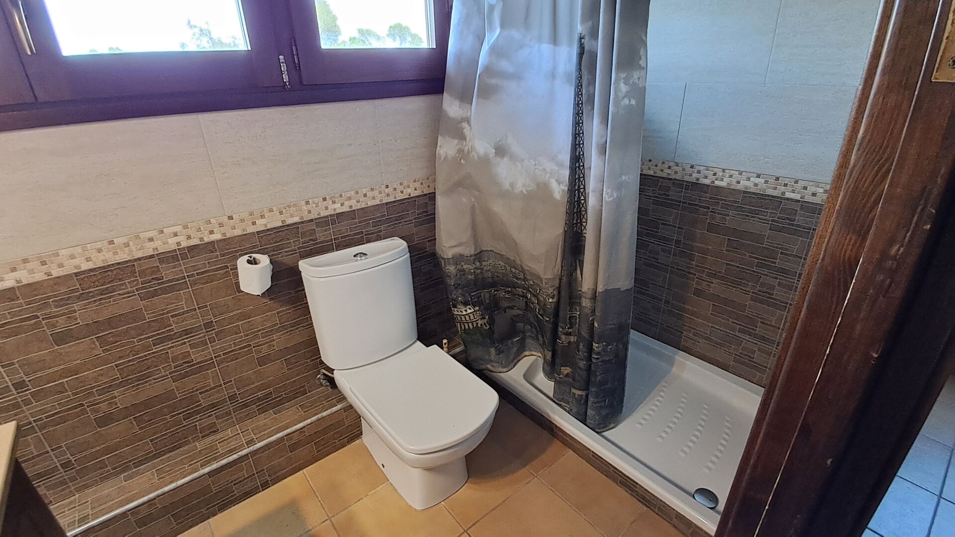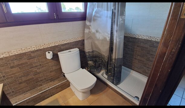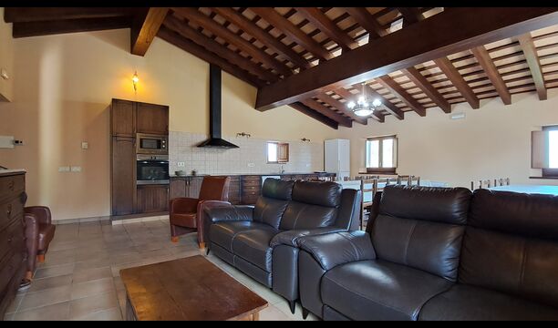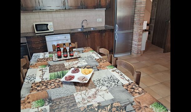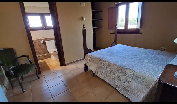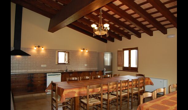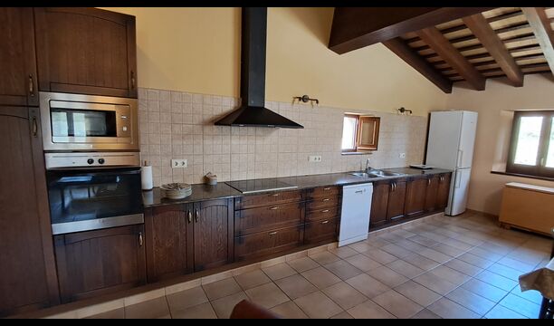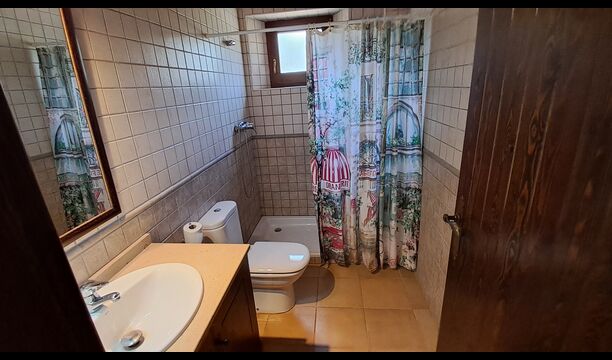 La mitad del primer piso funciona como una gran sala común con una cocina abierta y mucho espacio, lo que permite que todo el grupo cene juntos. También hay un acogedor rincón de sofás con televisión y reproductor de DVD. La casa también dispone de WI-FI. Desde esta zona, una escalera exterior da acceso directo a la terraza cubierta con la zona de barbacoa. En la otra parte de la primera planta, encontrarás 4 amplios dormitorios, 2 de ellos dobles y 2 de ellos triples. Hay 4 baños en total en este piso.