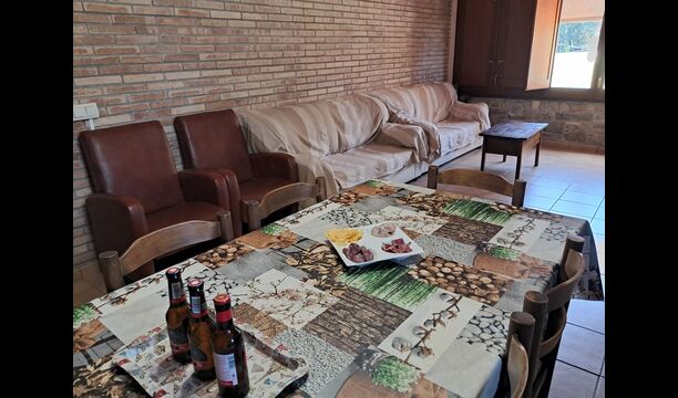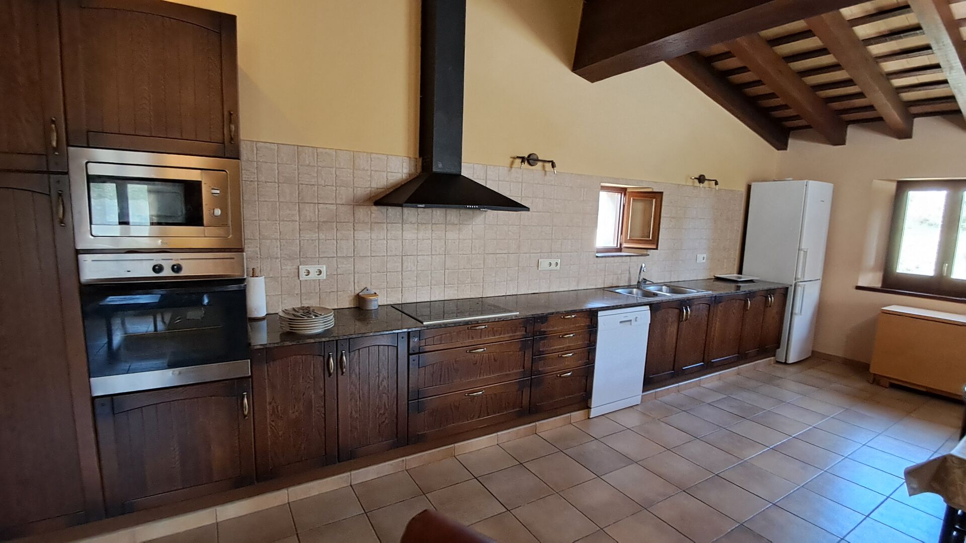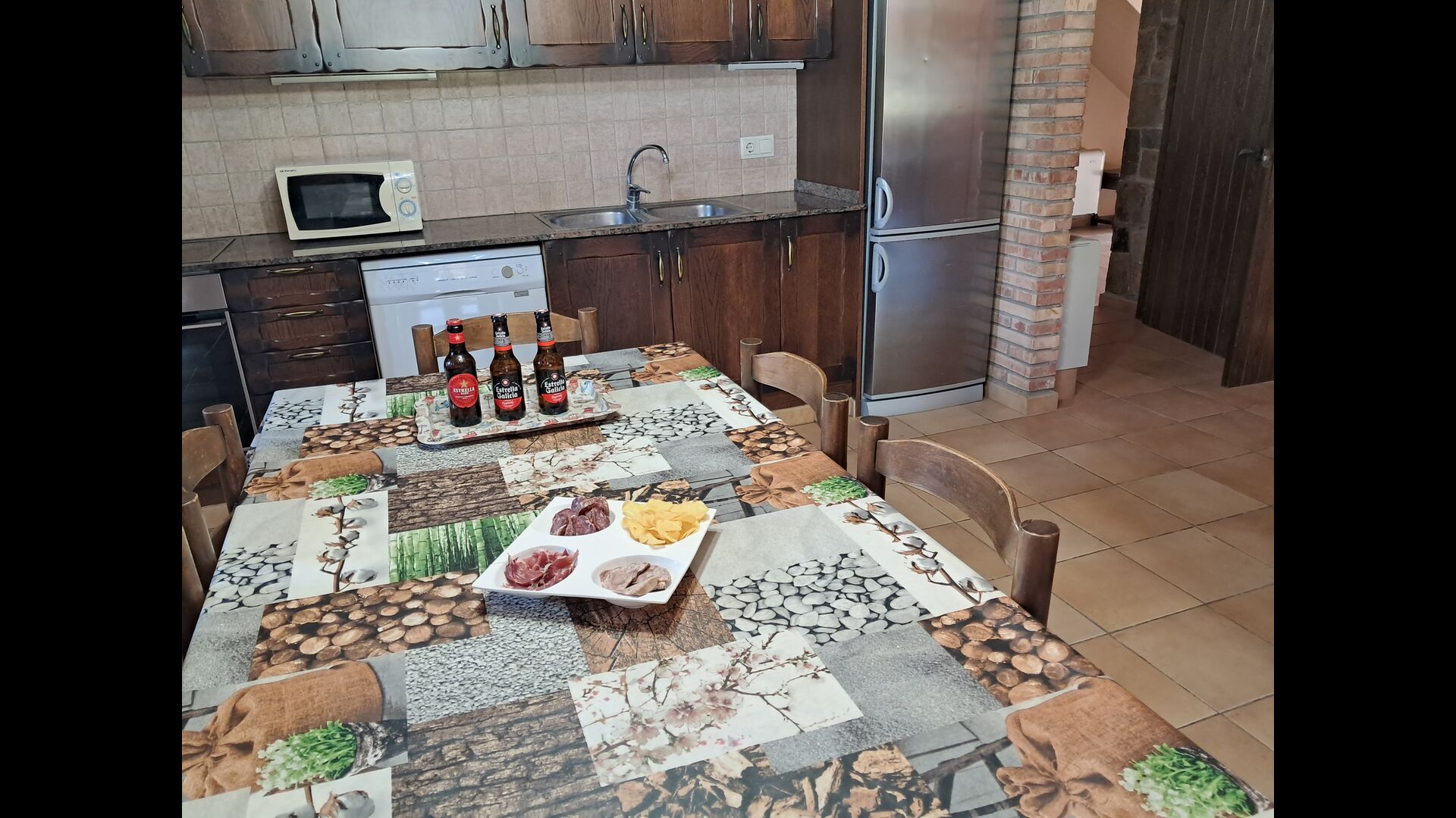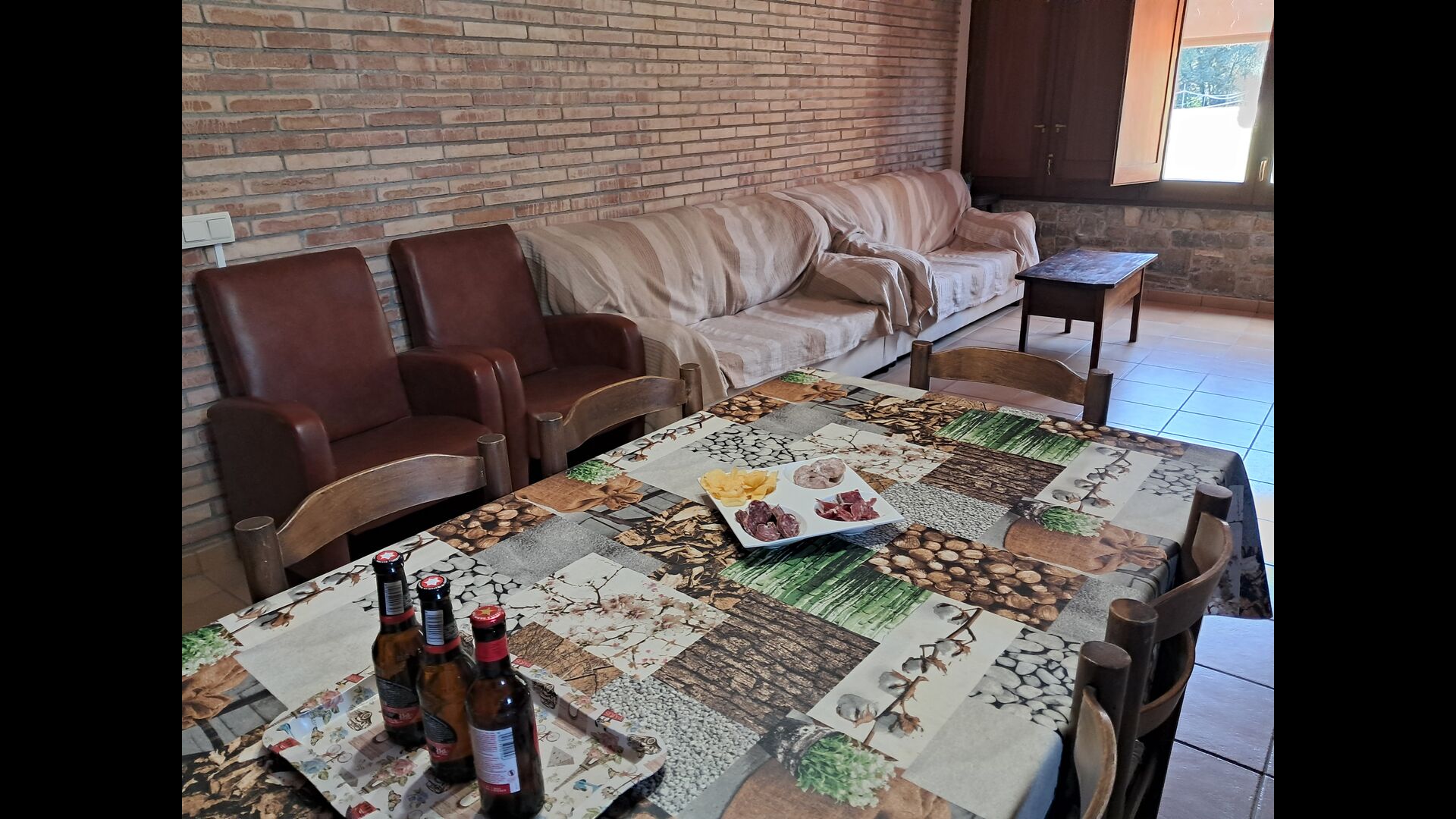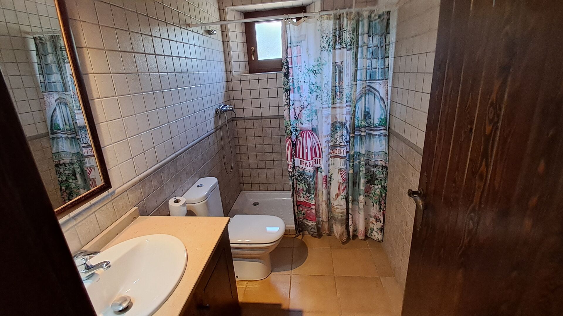 La mitad del primer piso funciona como una gran sala común con una cocina abierta y mucho espacio, lo que permite que todo el grupo cene juntos. También hay un acogedor rincón de sofás con televisión y reproductor de DVD. La casa también dispone de WI-FI. Desde esta zona, una escalera exterior da acceso directo a la terraza cubierta con la zona de barbacoa. En la otra parte de la primera planta, encontrarás 4 amplios dormitorios, 2 de ellos dobles y 2 de ellos triples. Hay 4 baños en total en este piso.