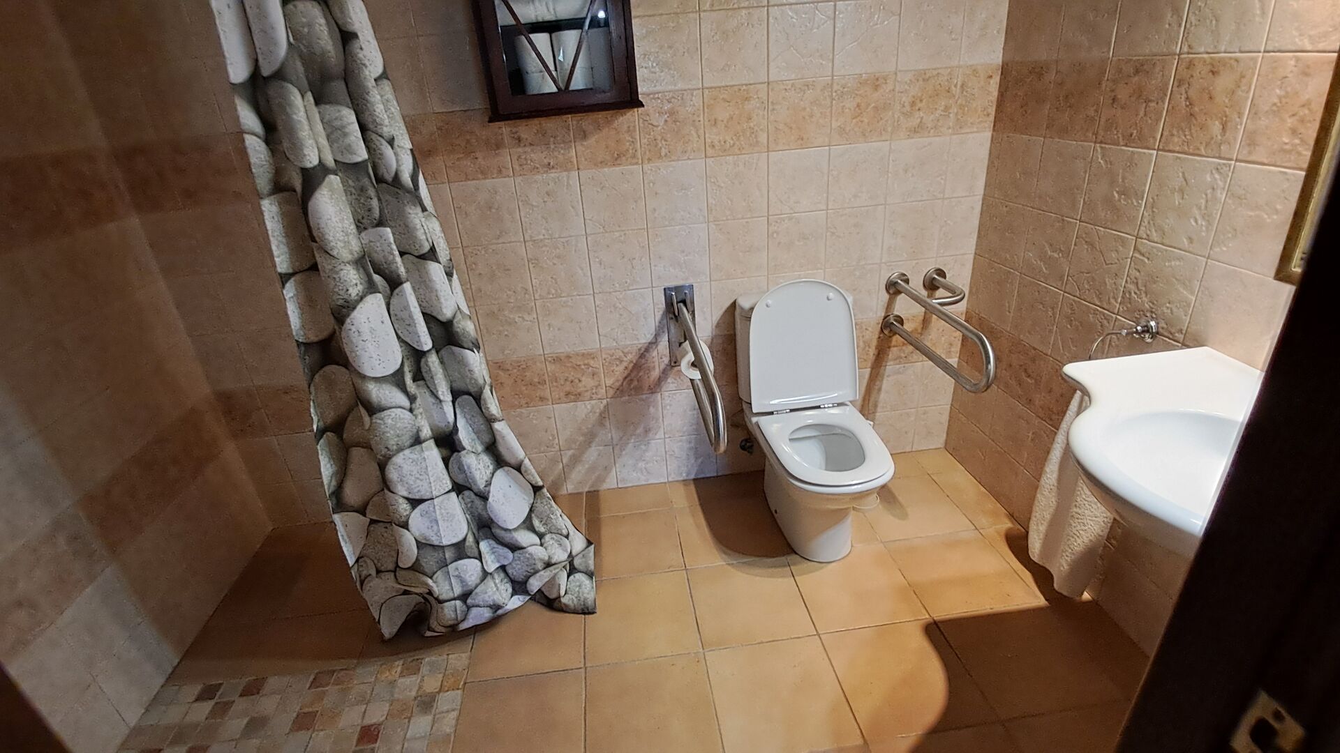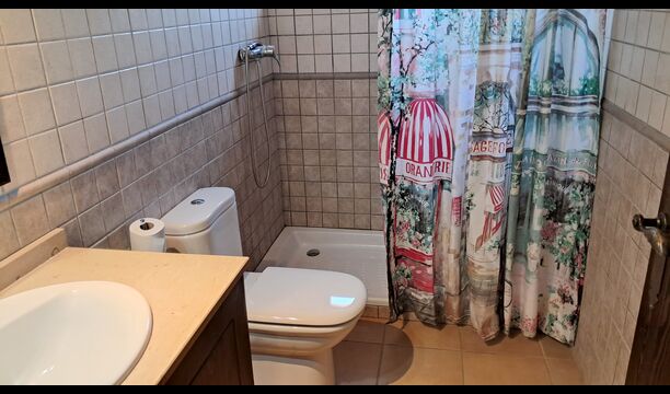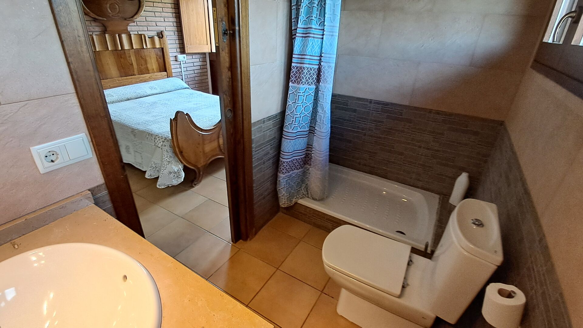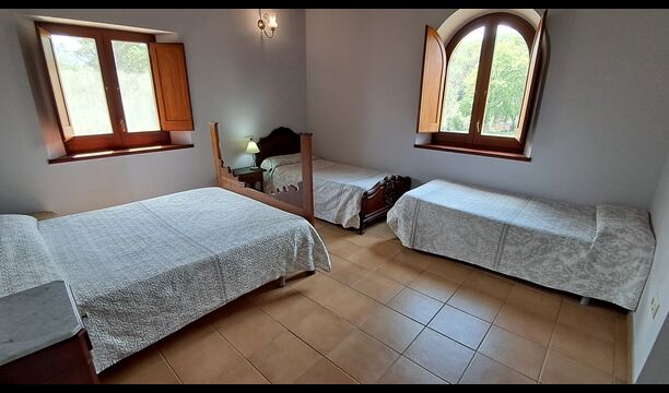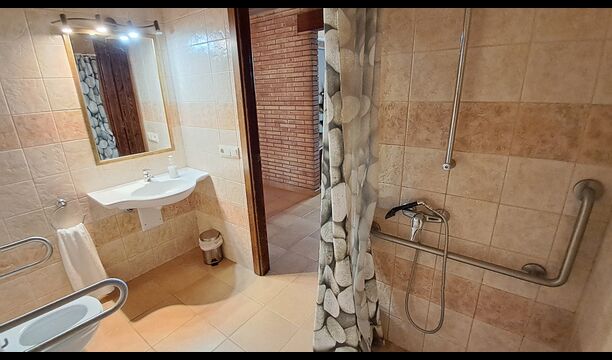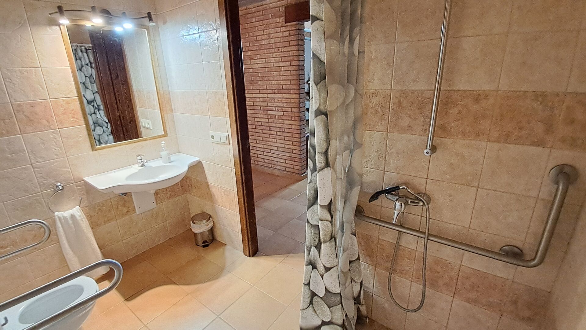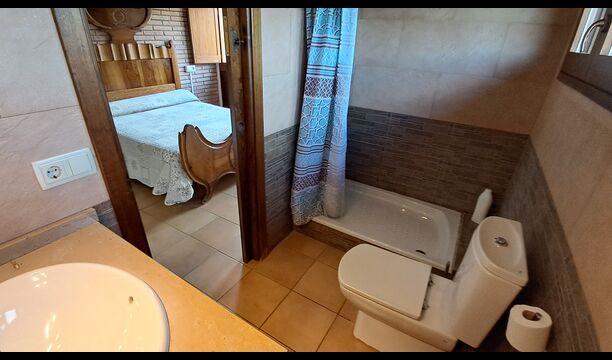 La mitad del primer piso funciona como una gran sala común con una cocina abierta y mucho espacio, lo que permite que todo el grupo cene juntos. También hay un acogedor rincón de sofás con televisión y reproductor de DVD. La casa también dispone de WI-FI. Desde esta zona, una escalera exterior da acceso directo a la terraza cubierta con la zona de barbacoa. En la otra parte de la primera planta, encontrarás 4 amplios dormitorios, 2 de ellos dobles y 2 de ellos triples. Hay 4 baños en total en este piso.