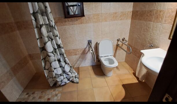 La casa tiene 9 habitaciones y 7 baños. La casa está dividida en 3 partes, lo que brinda a su grupo mucho espacio para la privacidad. Las dos secciones más pequeñas están situadas en la planta baja y tienen acceso directo al jardín. Una sección tiene 2 habitaciones dobles y una sala común con cocina totalmente equipada y 1 baño. La otra sección tiene 3 habitaciones dobles y una sala común con cocina totalmente equipada y dos baños.