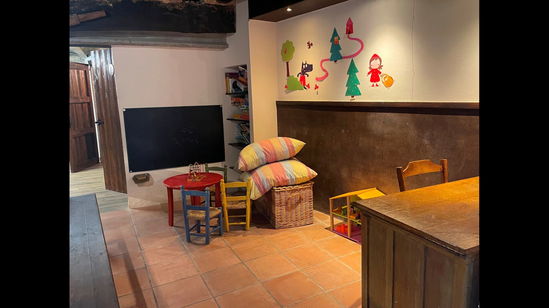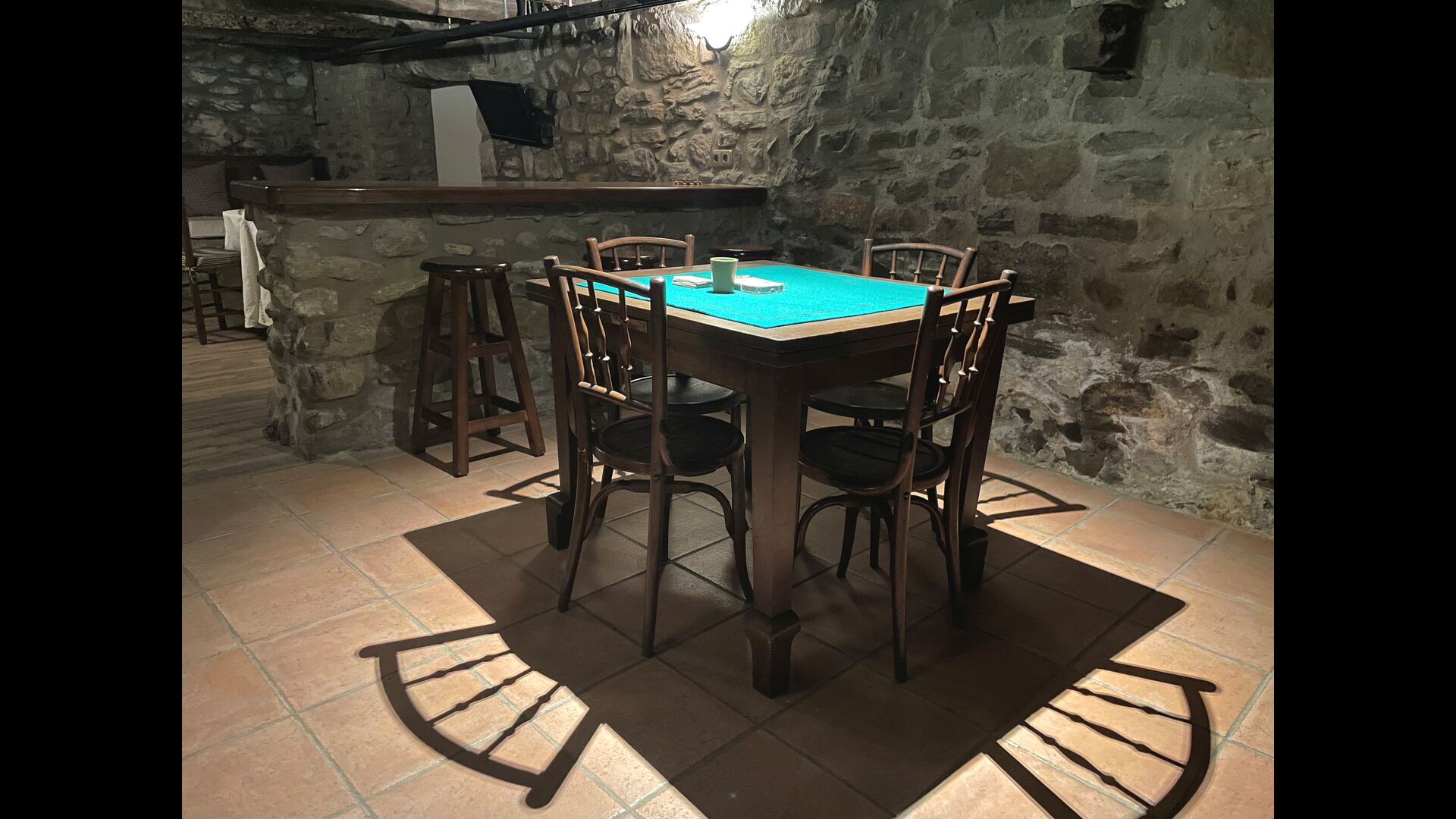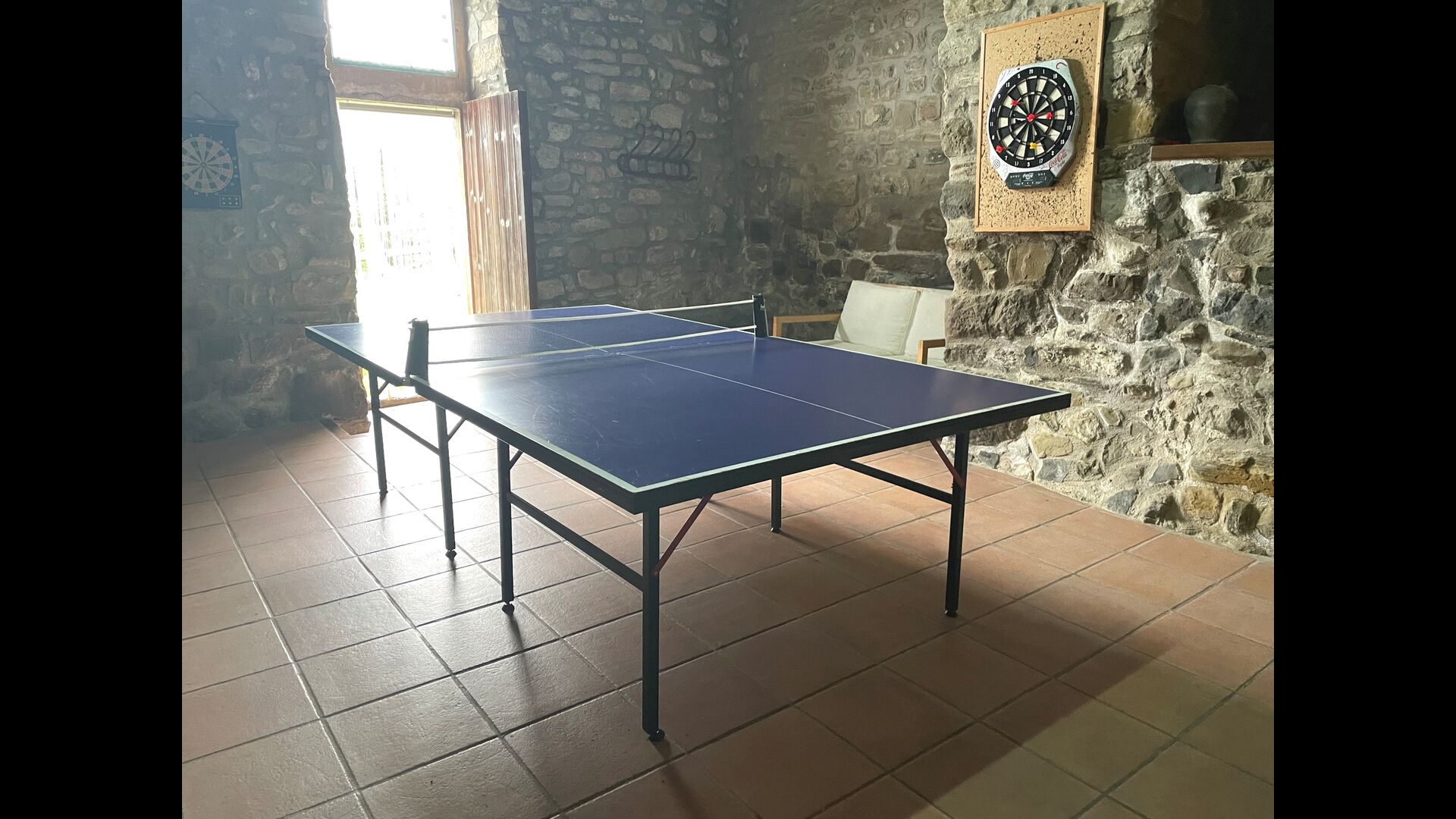 El edificio junto a la piscina está formado por los dos apartamentos Soler I y Soler II,, también comunicados interiormente. En el piso más bajo, encontrará la gran área de actividades, que es genial. Hay rincón con juguetes para los más pequeños, billar, ping-pong, futbolín y hasta una original mesa de juego de cartas sacada de una película de mafiosos de Nueva York. Aquí también encontrará dos baños adicionales.