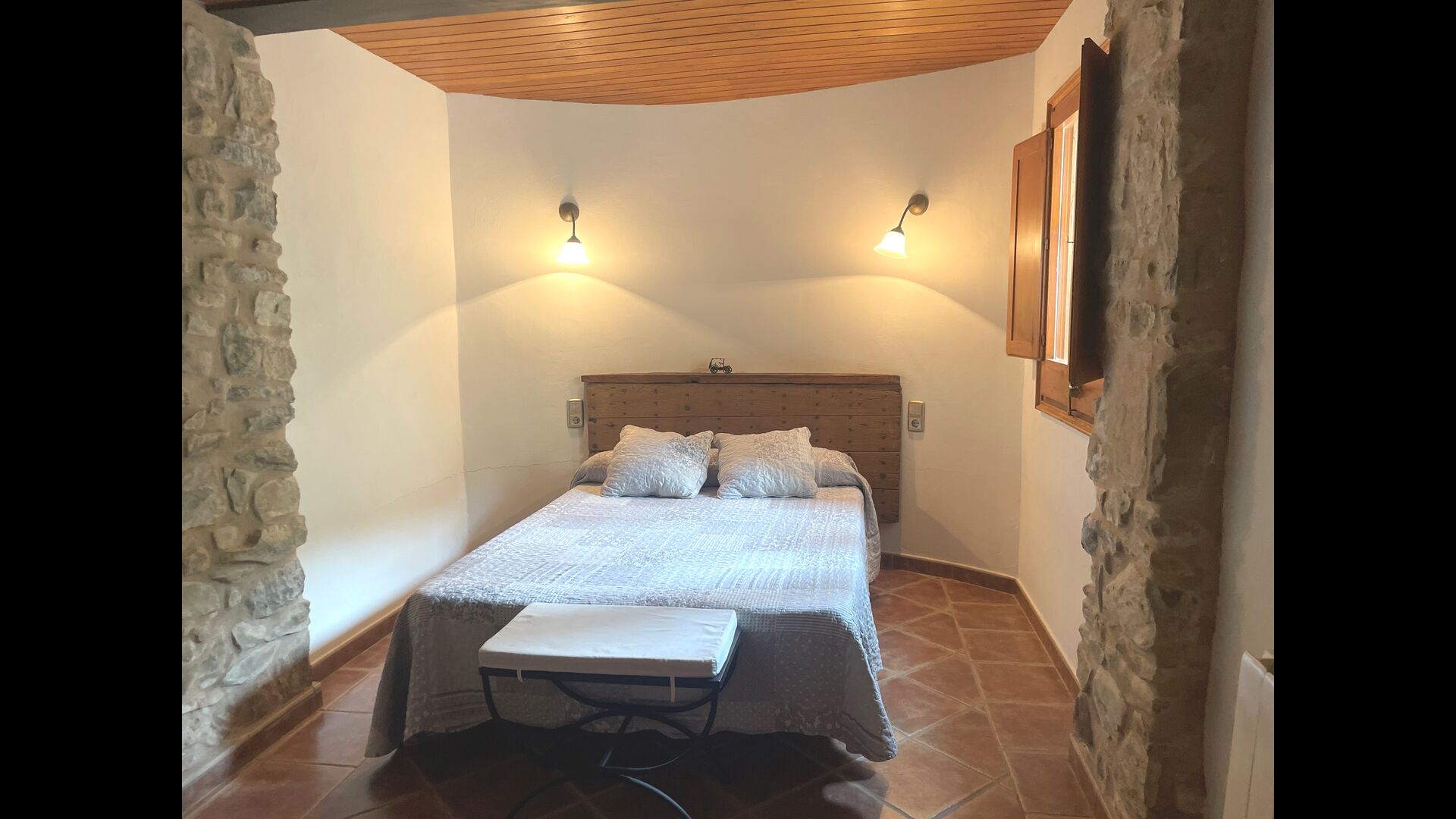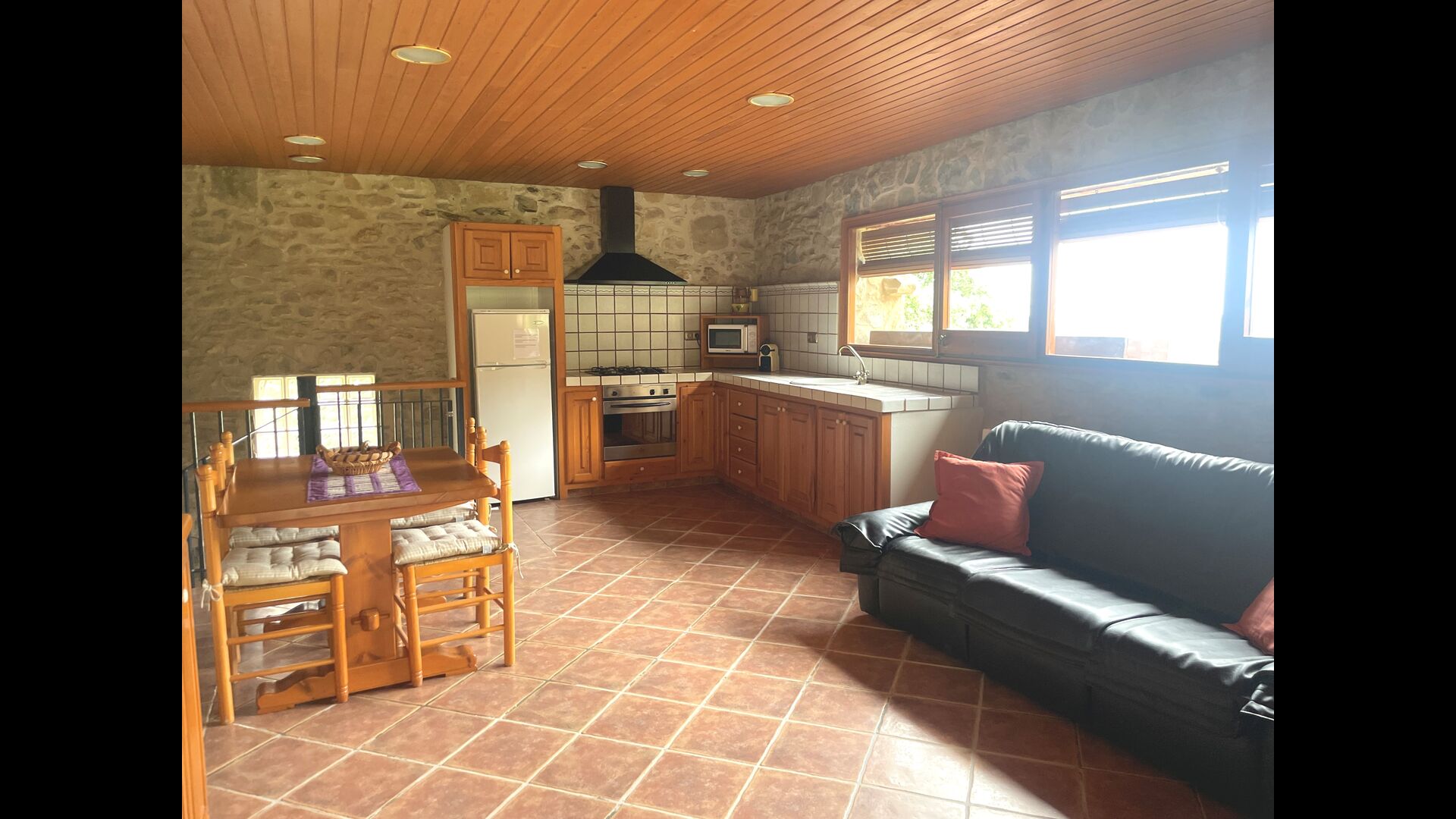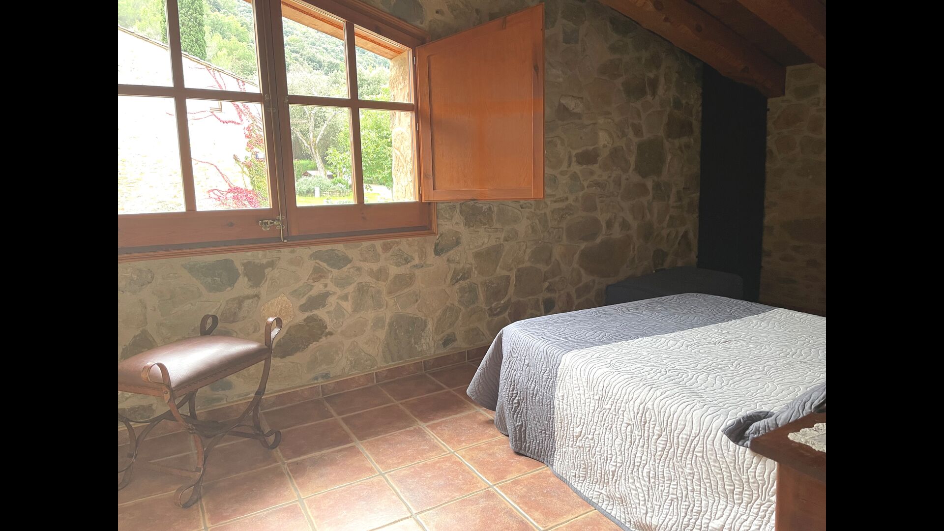 ¿Estás buscando un lugar completamente aislado pero no demasiado lejos de una bonita ciudad con restaurantes, Masia Sol de Marlant podría ser el lugar. Estar en una montaña por supuesto requiere llegar por un camino de montaña, pero el camino está bien y solo la última parte está sin asfaltar, por lo que puedes llegar sin problemas. ¡La recompensa es impresionante! Qué lugar natural rodeado de naturaleza y con vistas al valle de abajo. La fuente de energía son las células solares, que se suman a la sensación natural y sostenible.