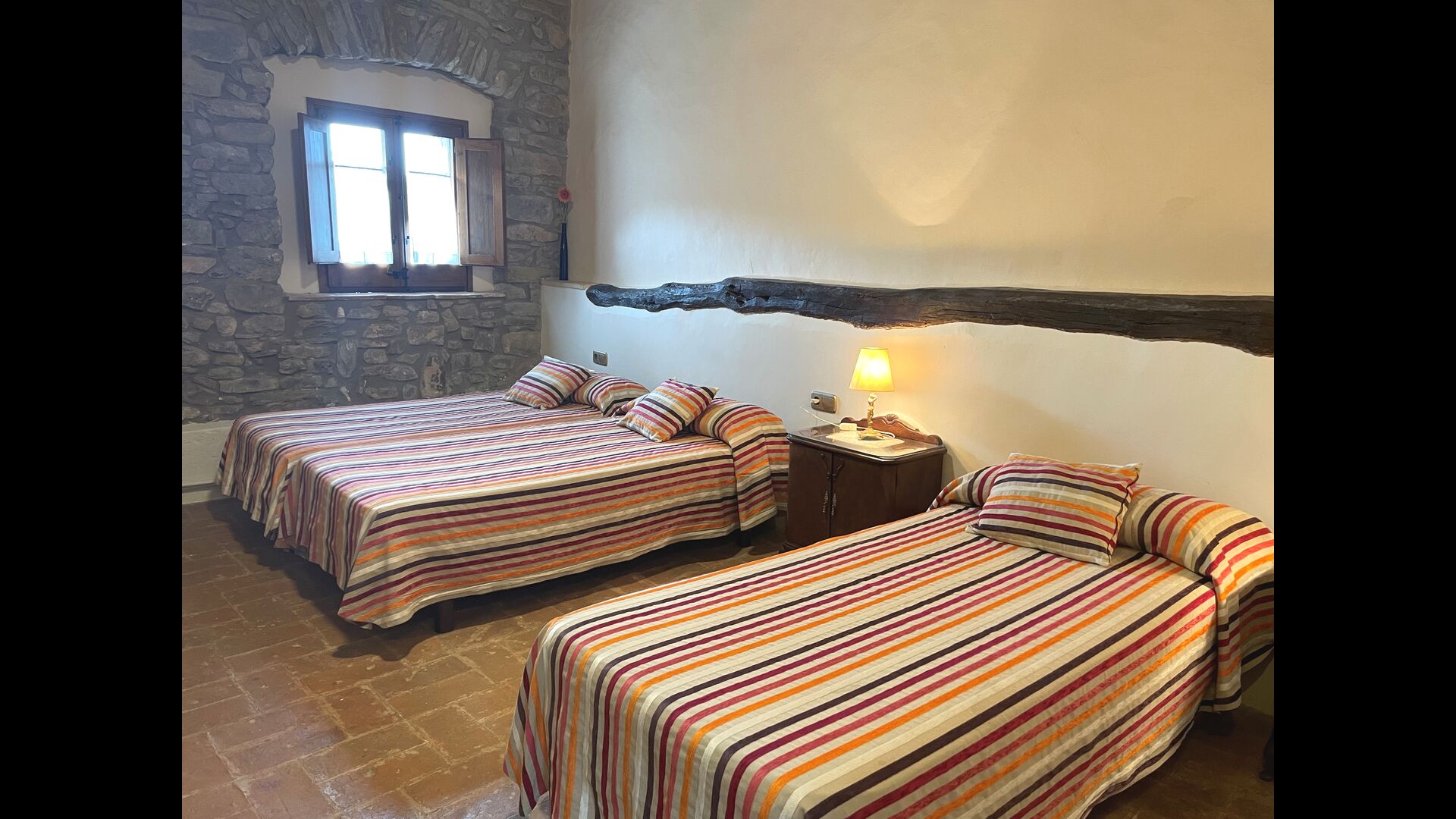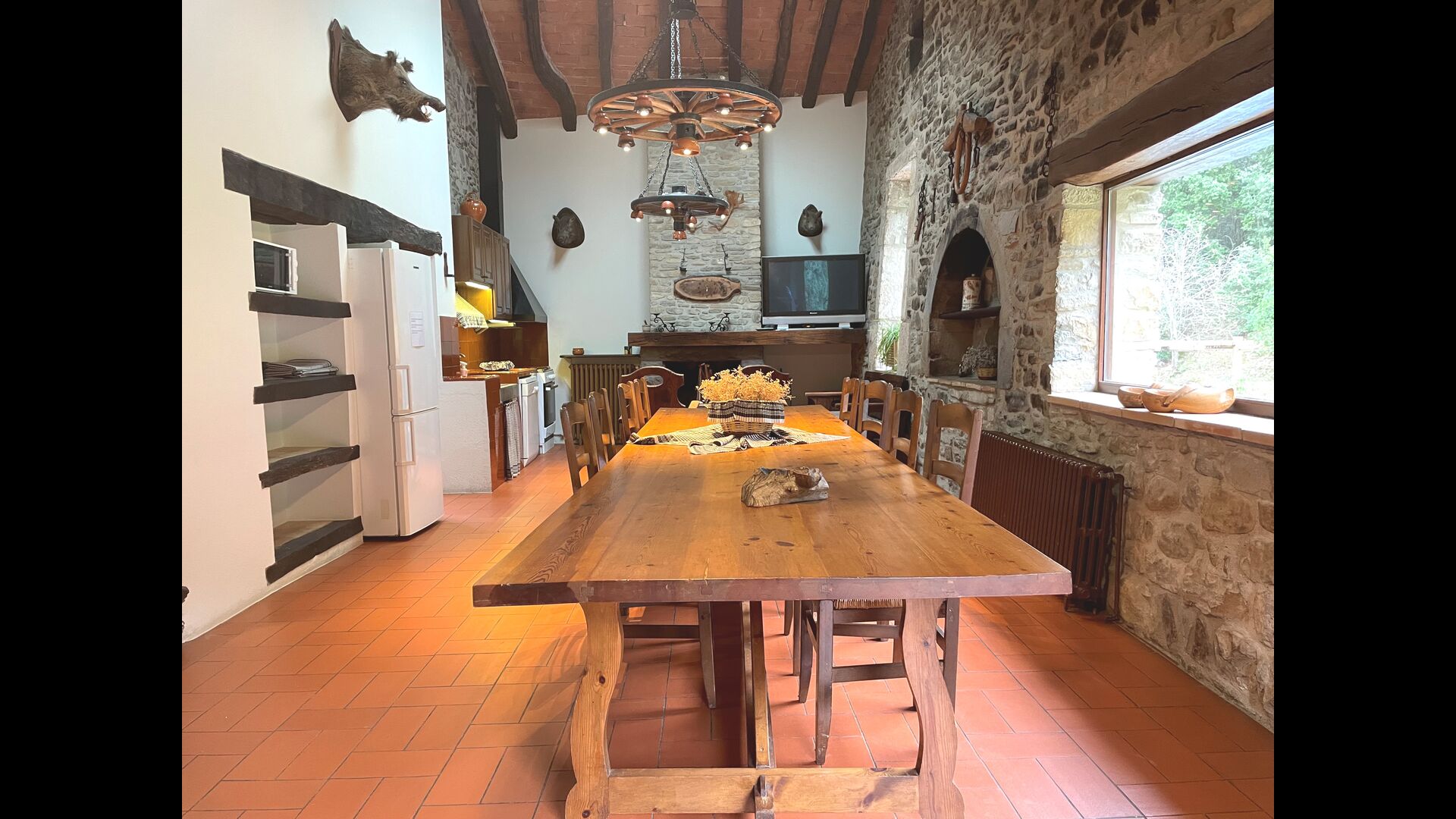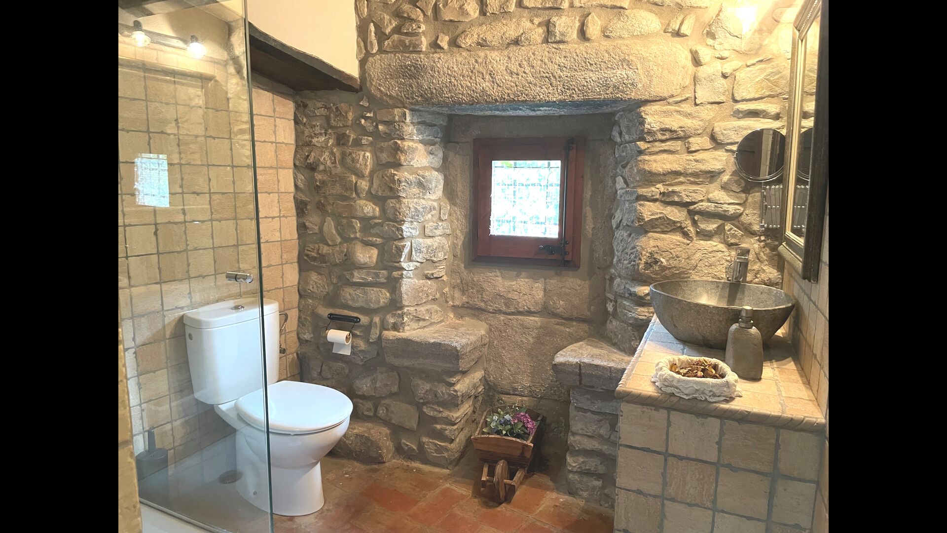 ¿Estás buscando un lugar completamente aislado pero no demasiado lejos de una bonita ciudad con restaurantes, Masia Sol de Marlant podría ser el lugar. Estar en una montaña por supuesto requiere llegar por un camino de montaña, pero el camino está bien y solo la última parte está sin asfaltar, por lo que puedes llegar sin problemas. ¡La recompensa es impresionante! Qué lugar natural rodeado de naturaleza y con vistas al valle de abajo. La fuente de energía son las células solares, que se suman a la sensación natural y sostenible.